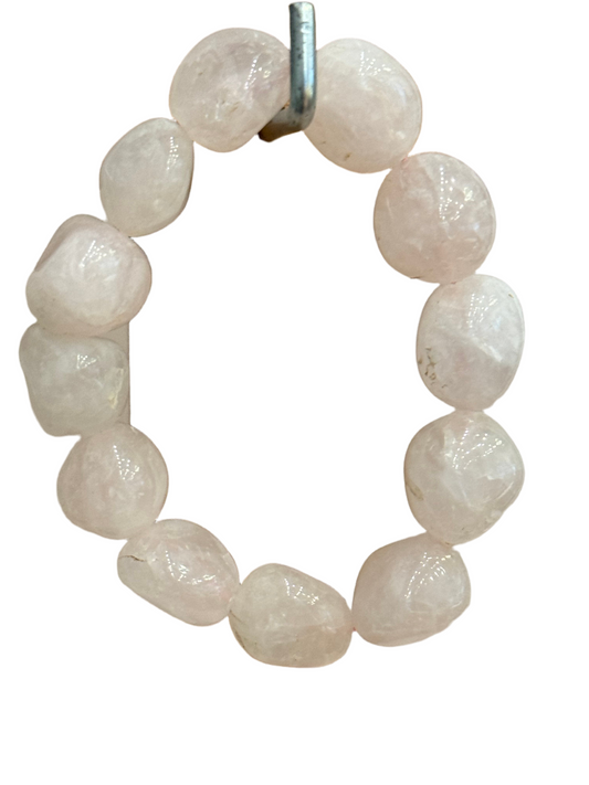 Rose Quartz Tumbled Nugget Beaded Gemstone Bracelet Made in India
