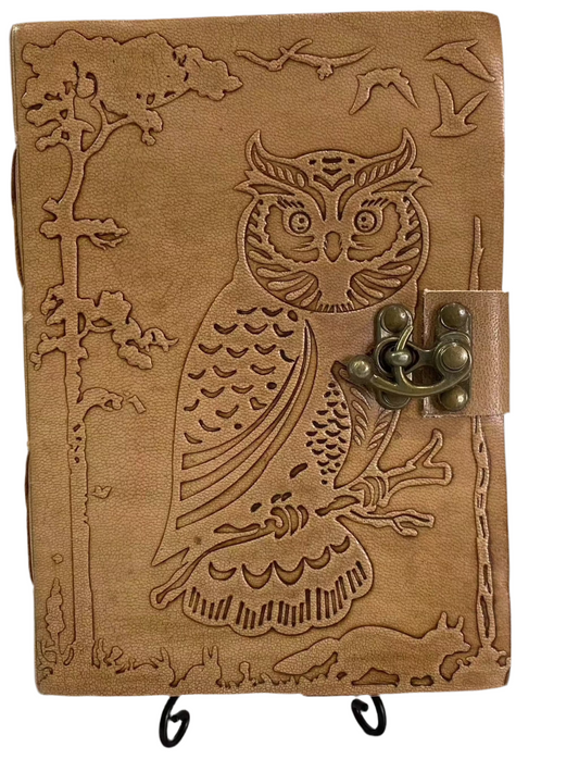 Owl in Jungle Leather Latch Paper Journal Book