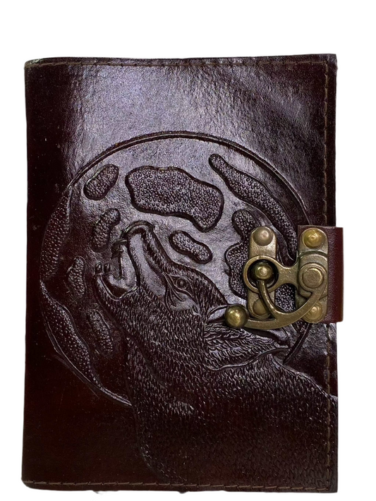 Howling Wolf Moon Under Tree Leather Journal Book