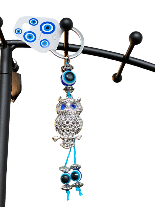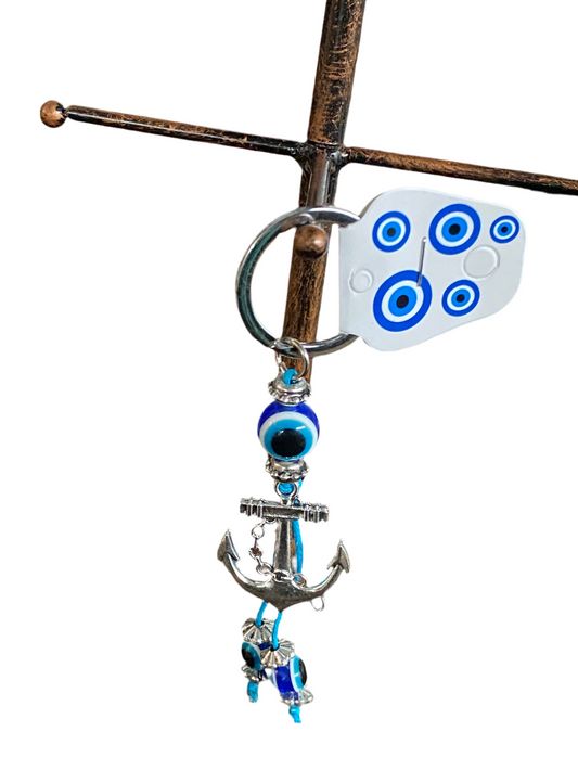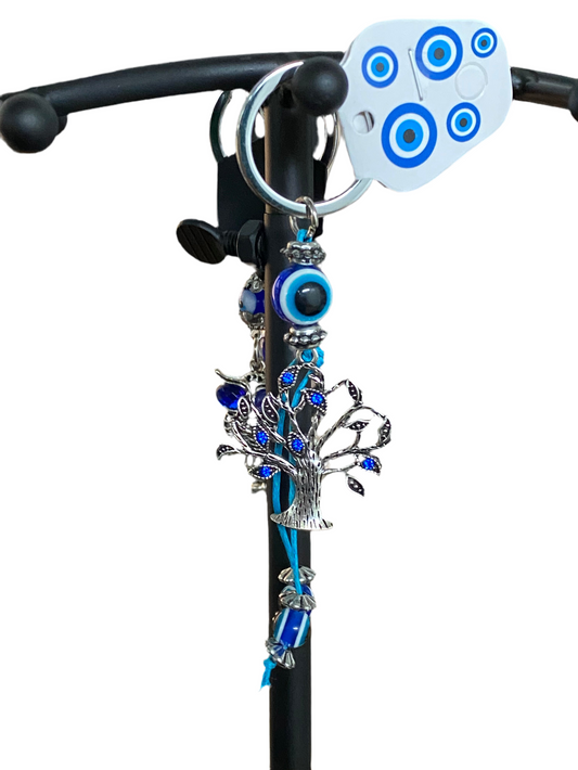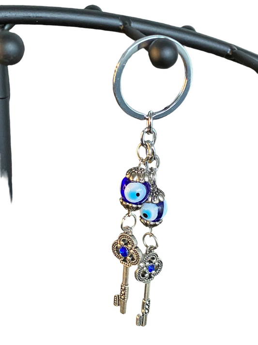 Ancient Key Blue Crystal Stones Evil Eye Keychain