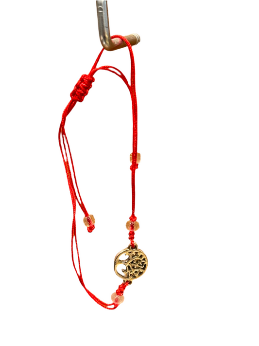 Red String Pull Tie Bracelet Silver Tree Of Life Charm and Beads