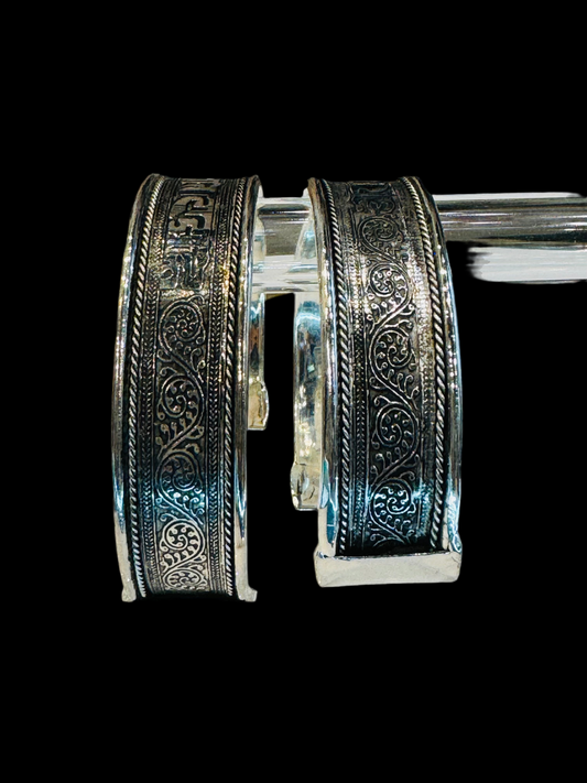Silver Tibetan (Om Mani Padme) Bracelet 1/2"W (2 Pack)