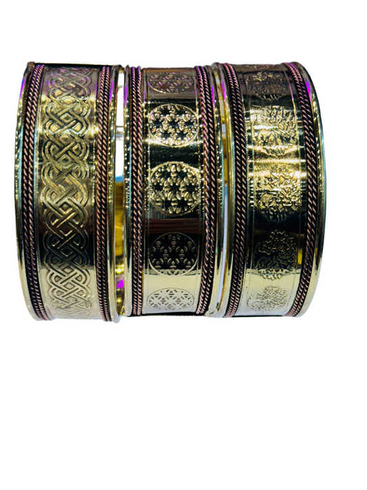 Gold Painted Copper and Brass Cuffs Set Of 3 Celtic Sailor’s Knot, Dara Knot and Tree of Life