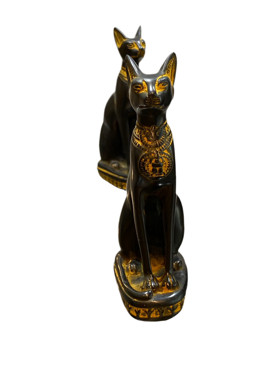 Fine Bastet Cat watches over families, offering spiritual protection and nurturing warmth. Antique Gold - 6" Each