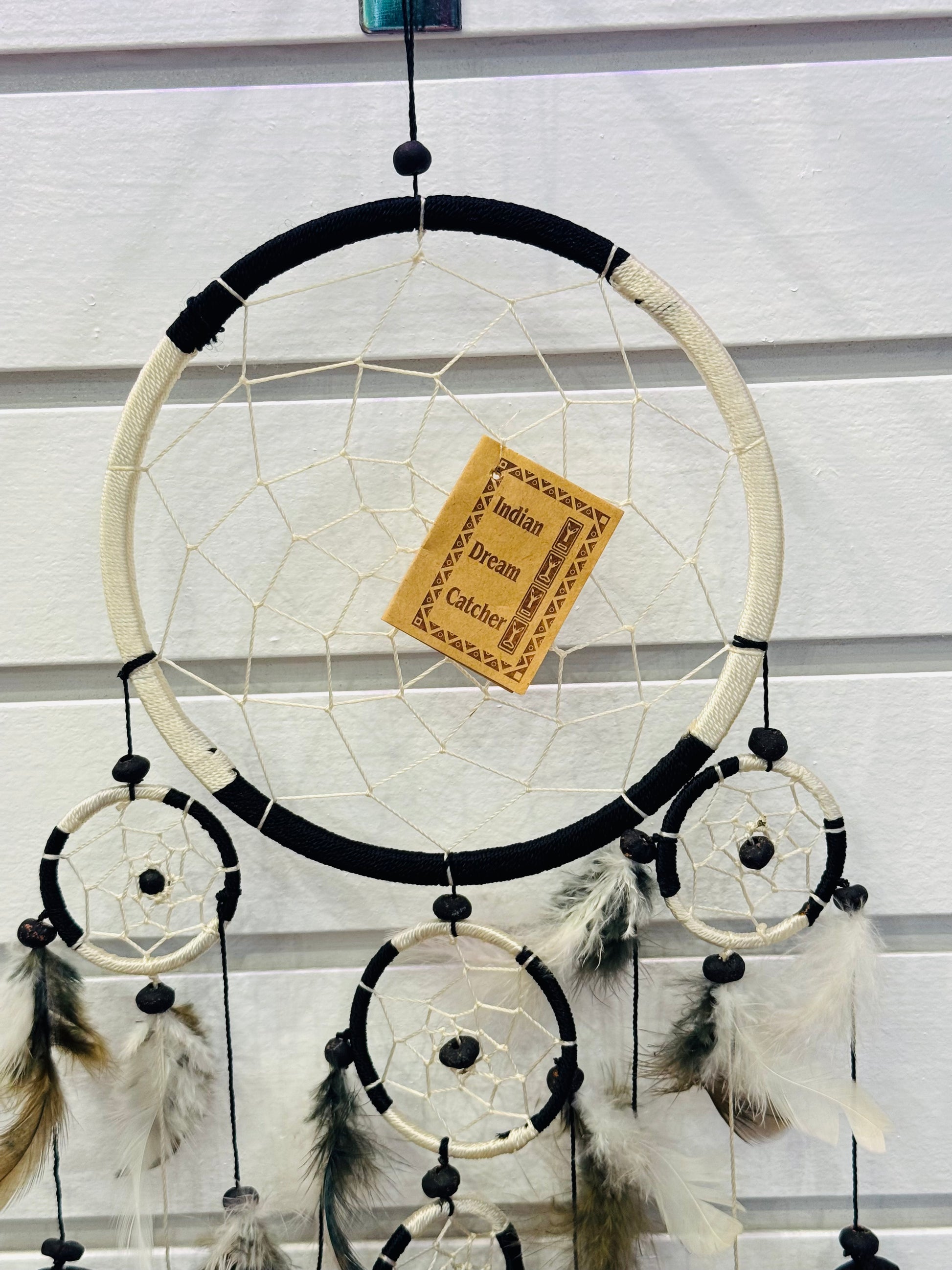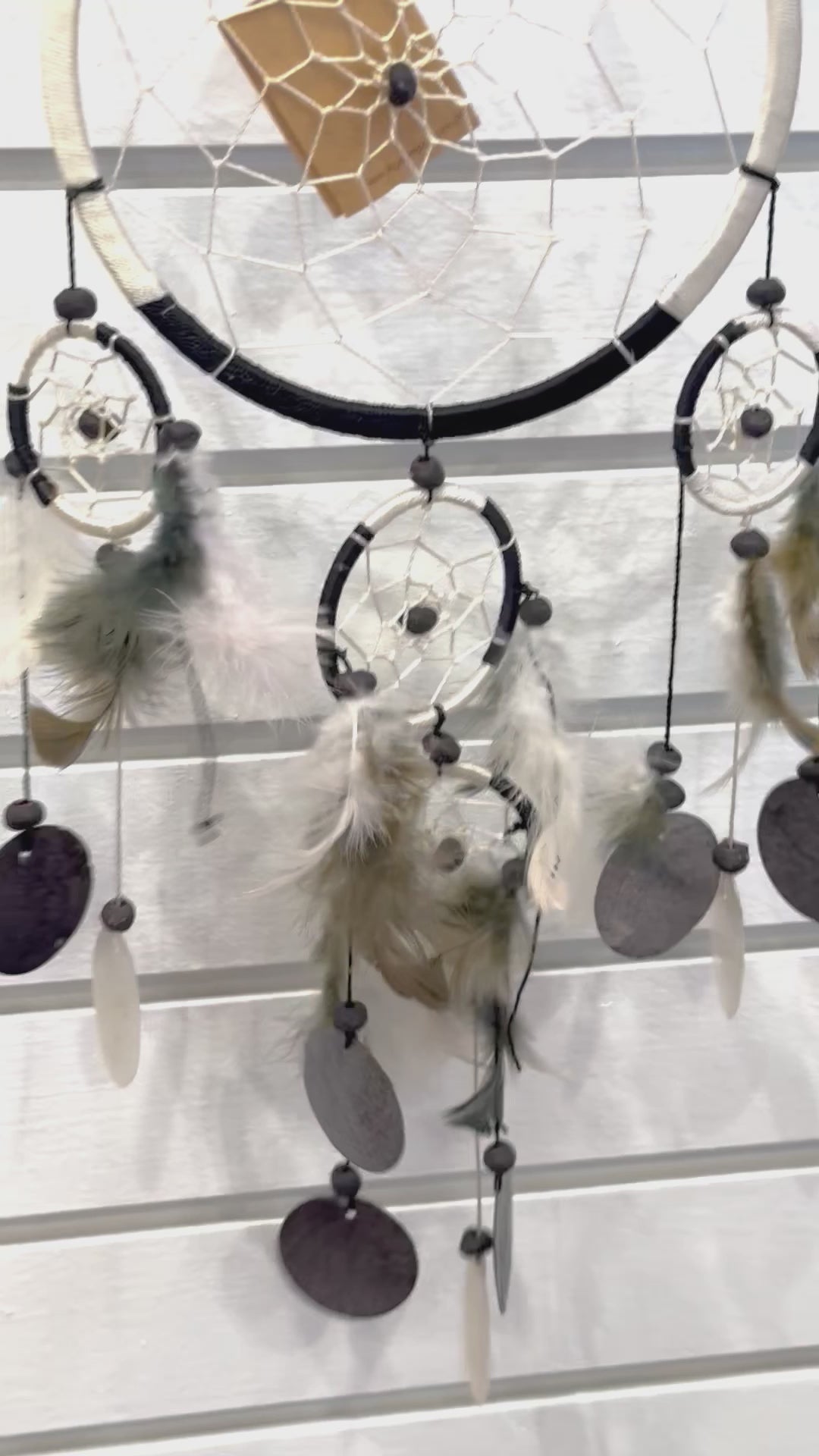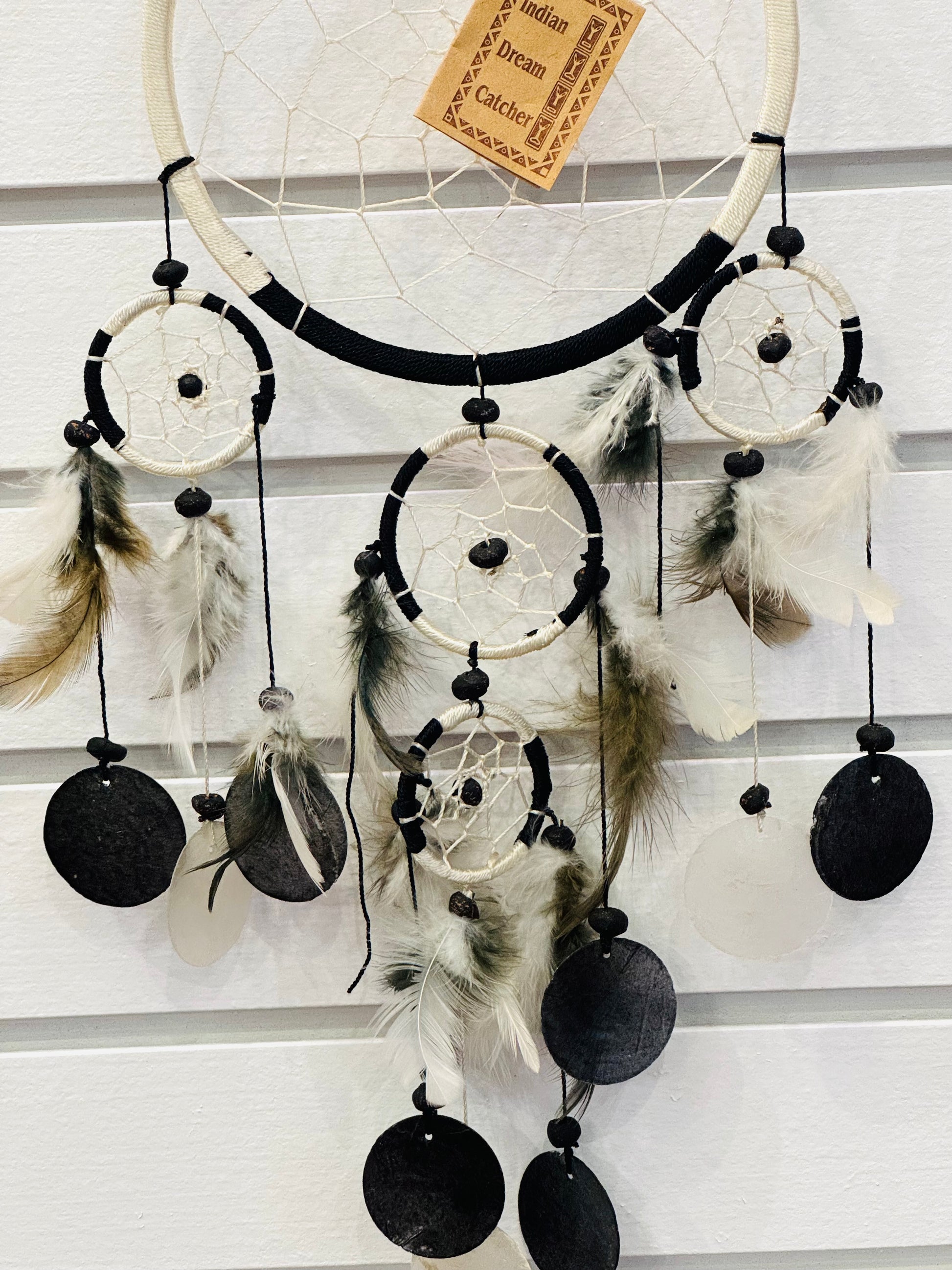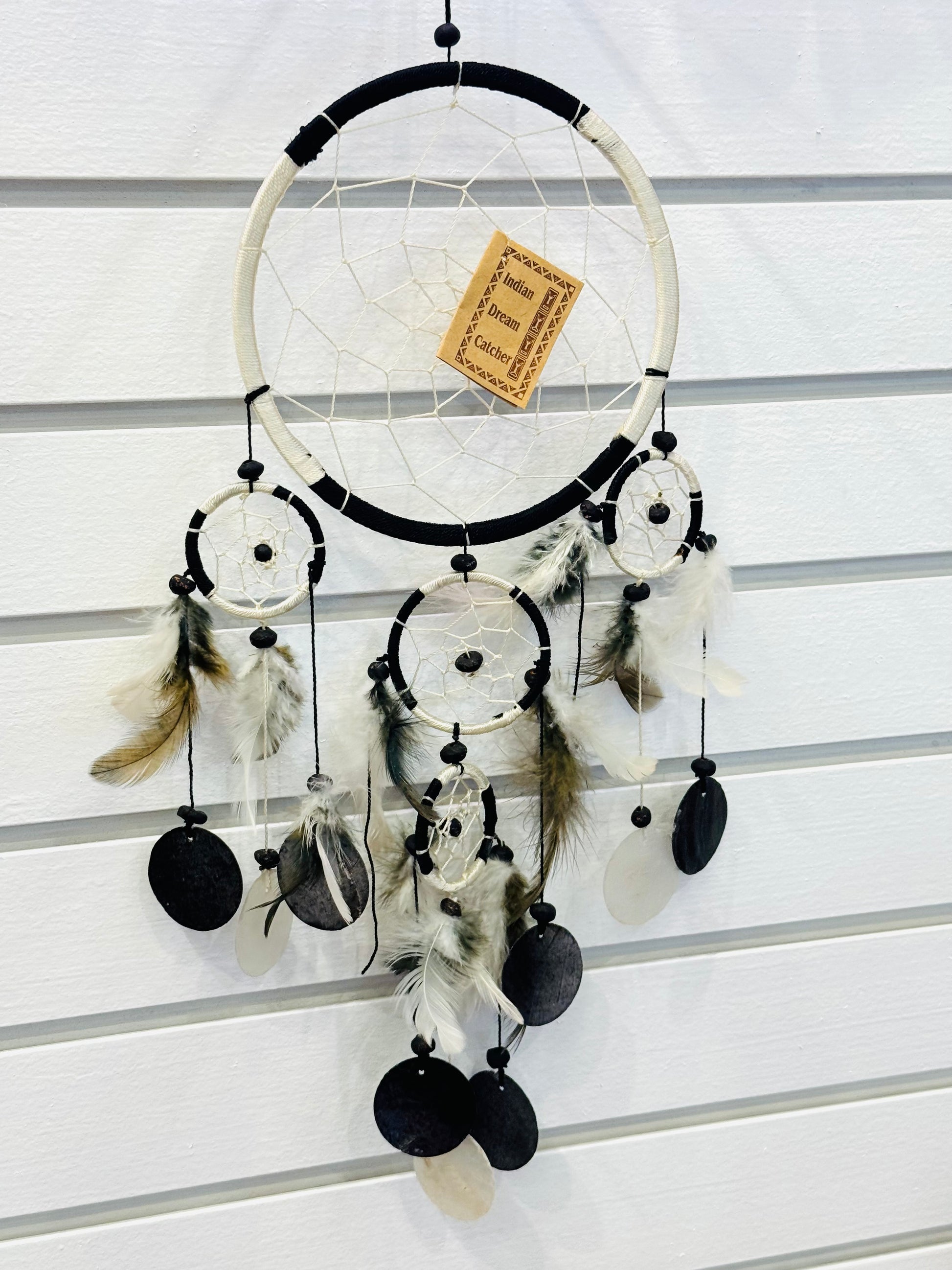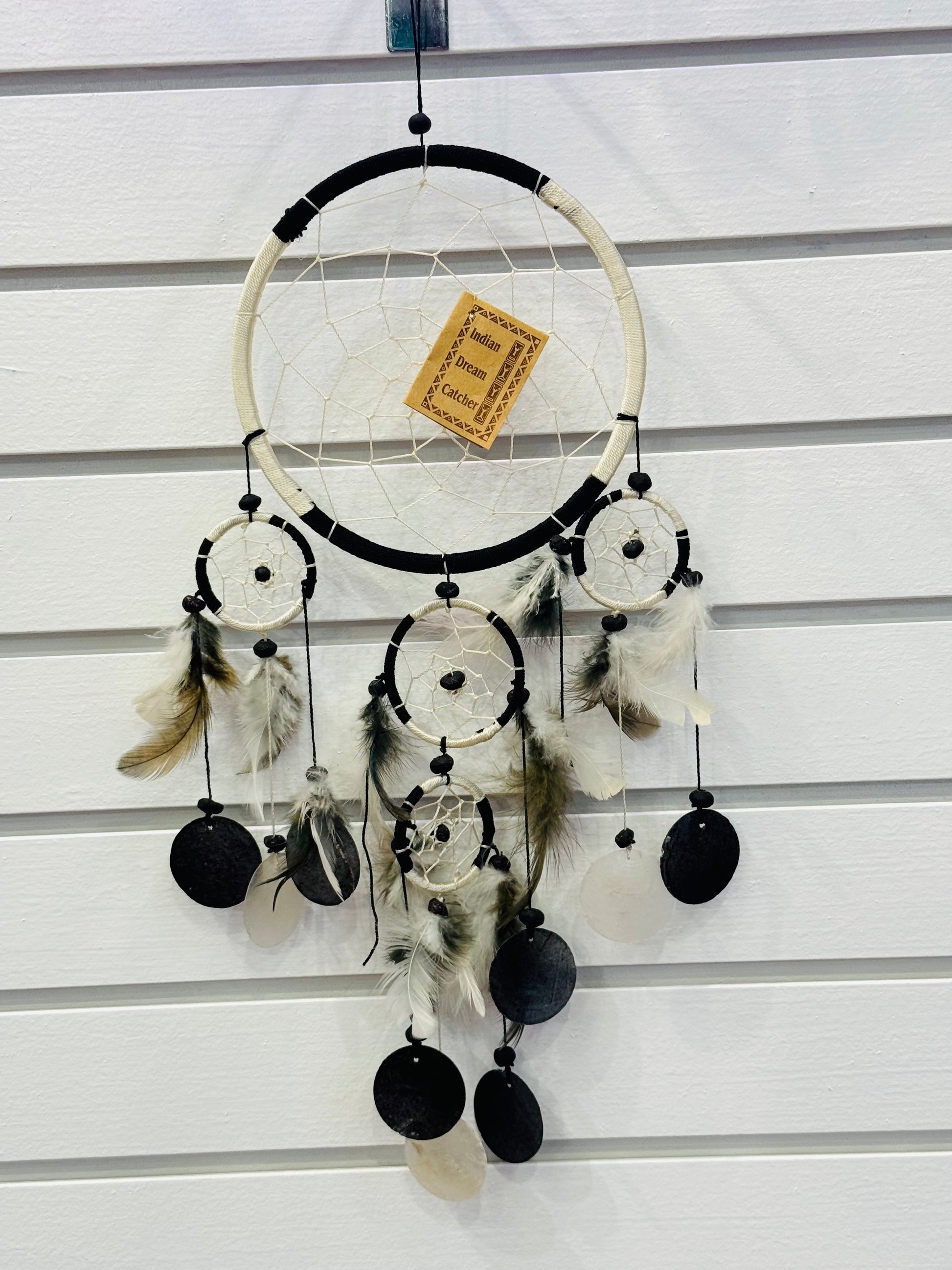 6" Black and White Dream Catcher with Feathers, Capis Shell and Beads