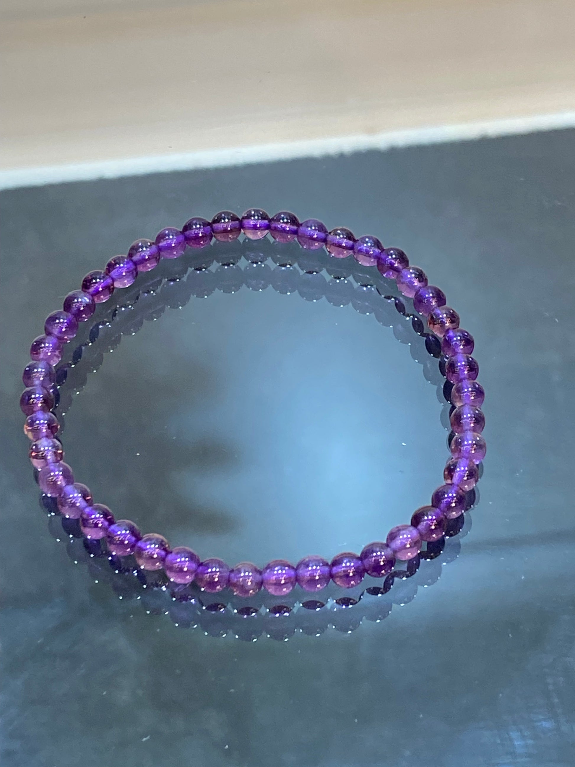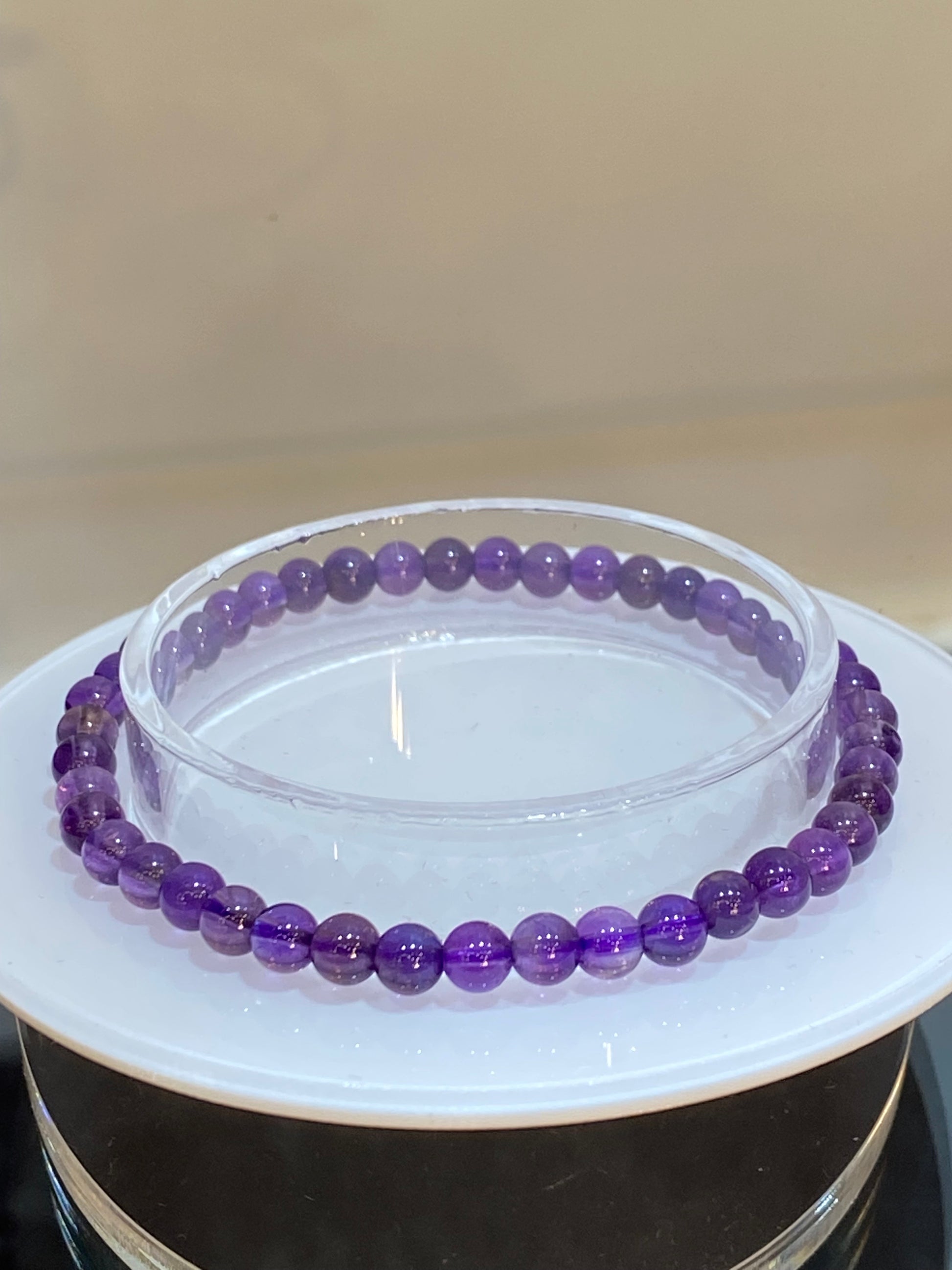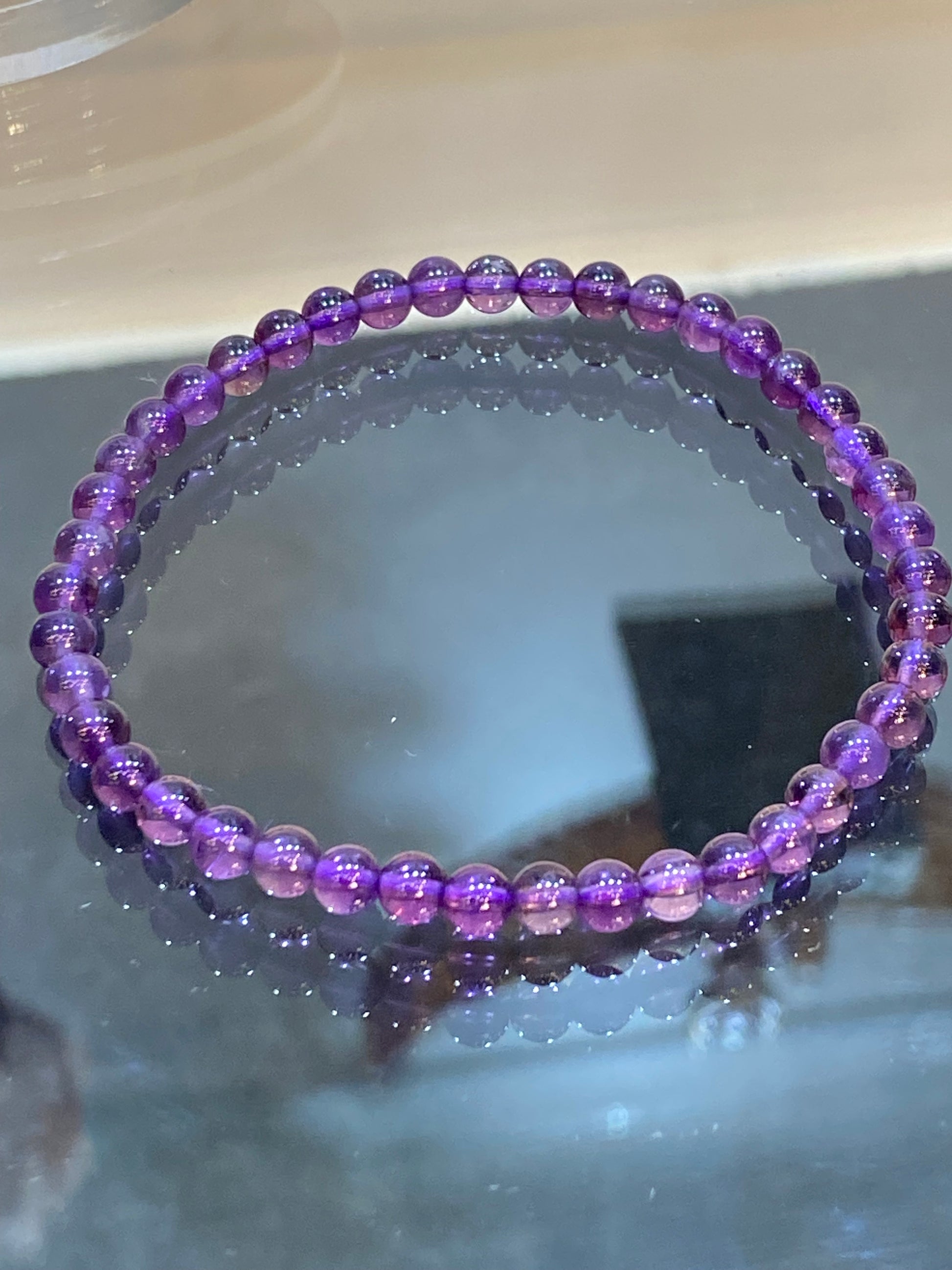 Faceted Amethyst Stretch Round Beaded Gemstone Bracelet 4mm