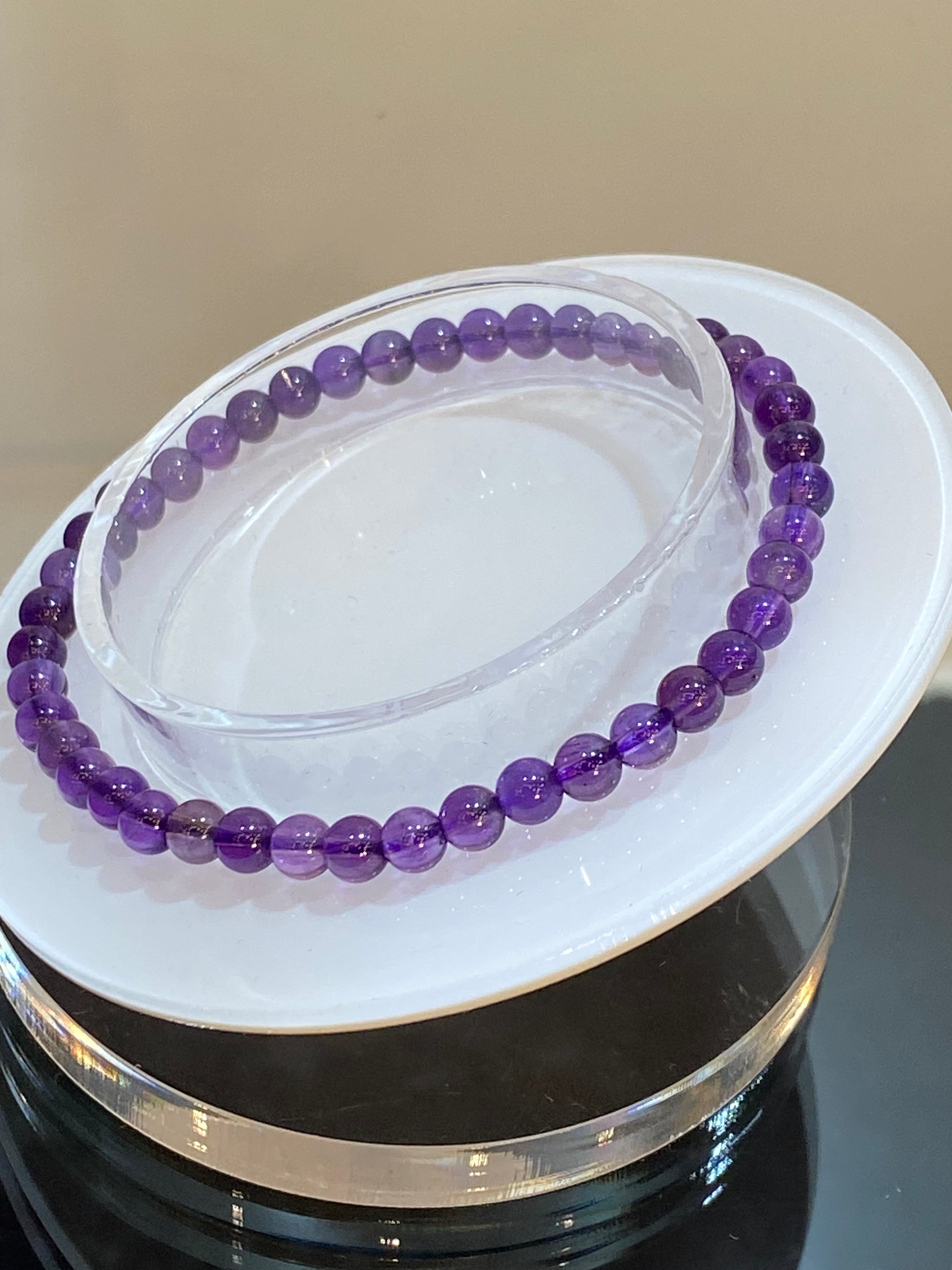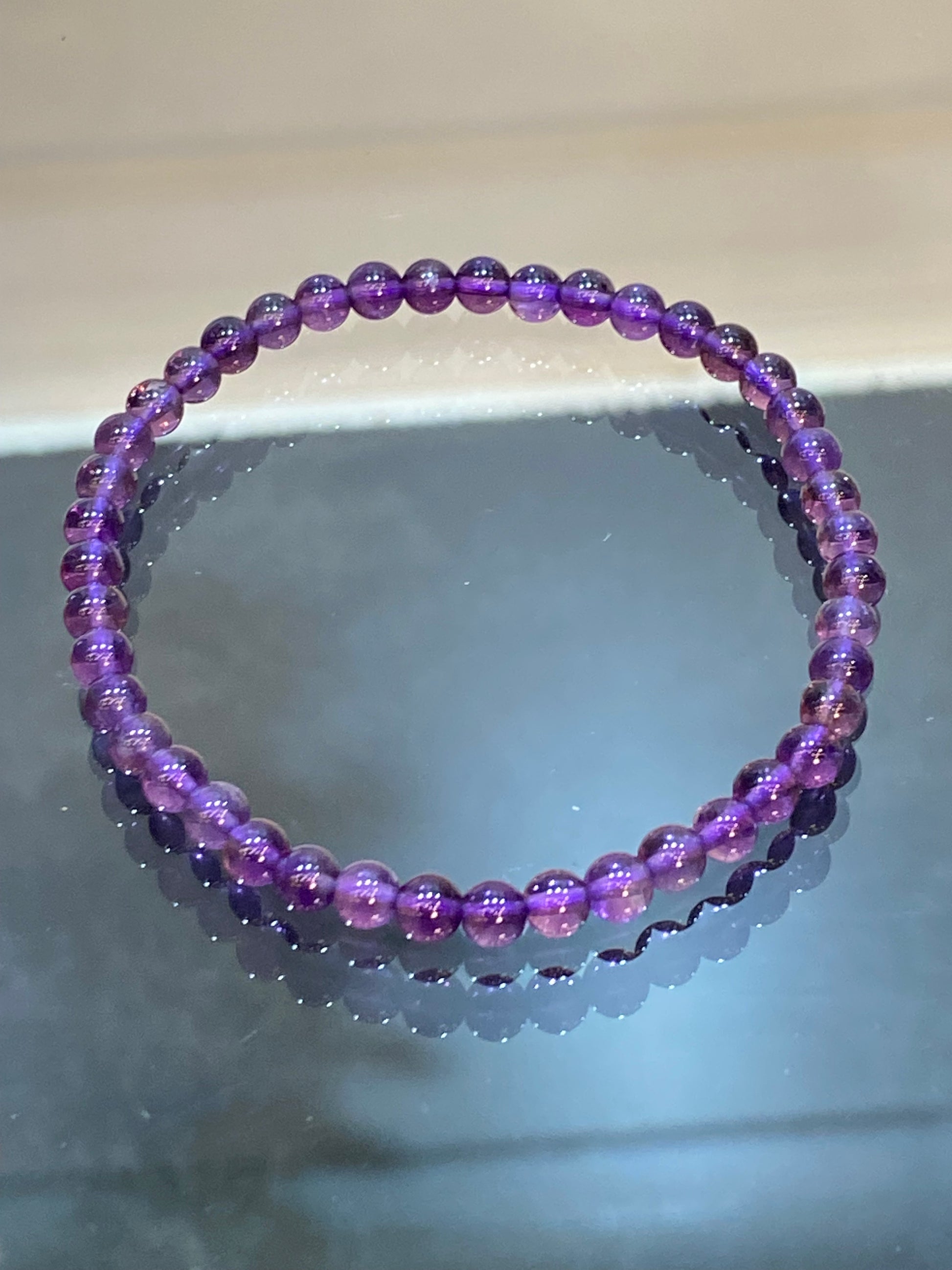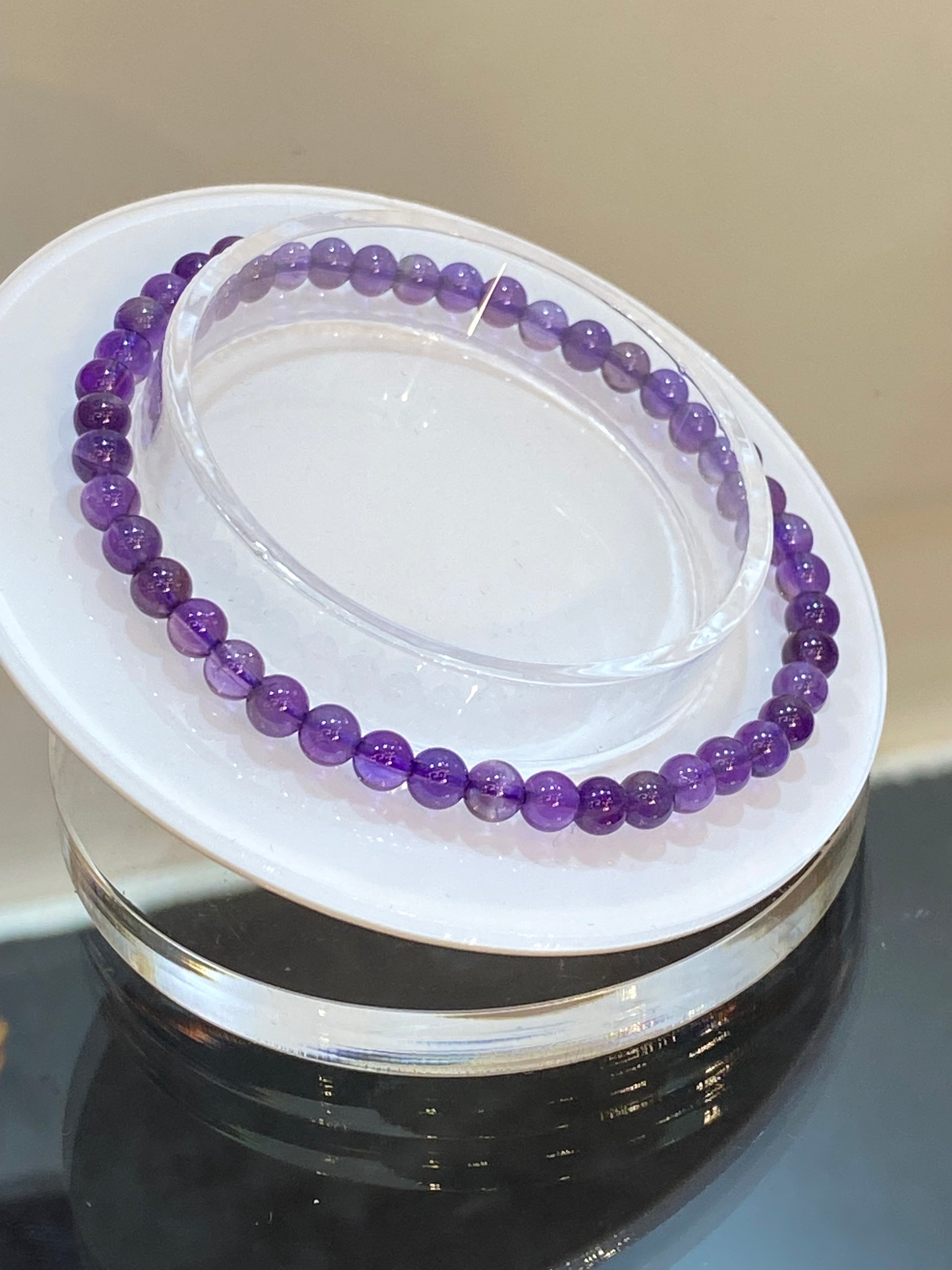 Faceted Amethyst Stretch Round Beaded Gemstone Bracelet 4mm