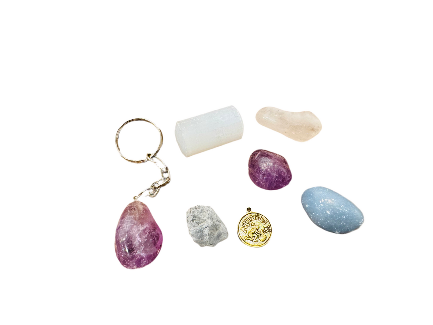 Along with these powerful crystals, the Aquarius Kit features an Antique Aquarius Charm and an Amethyst Keychain, allowing you to carry spiritual protection and guidance with you wherever you go. Whether you are an Aquarius or simply drawn to these high-vibrational tools, the Aquarius Kit empowers you to cultivate peace, love, and intuition in your daily life.
