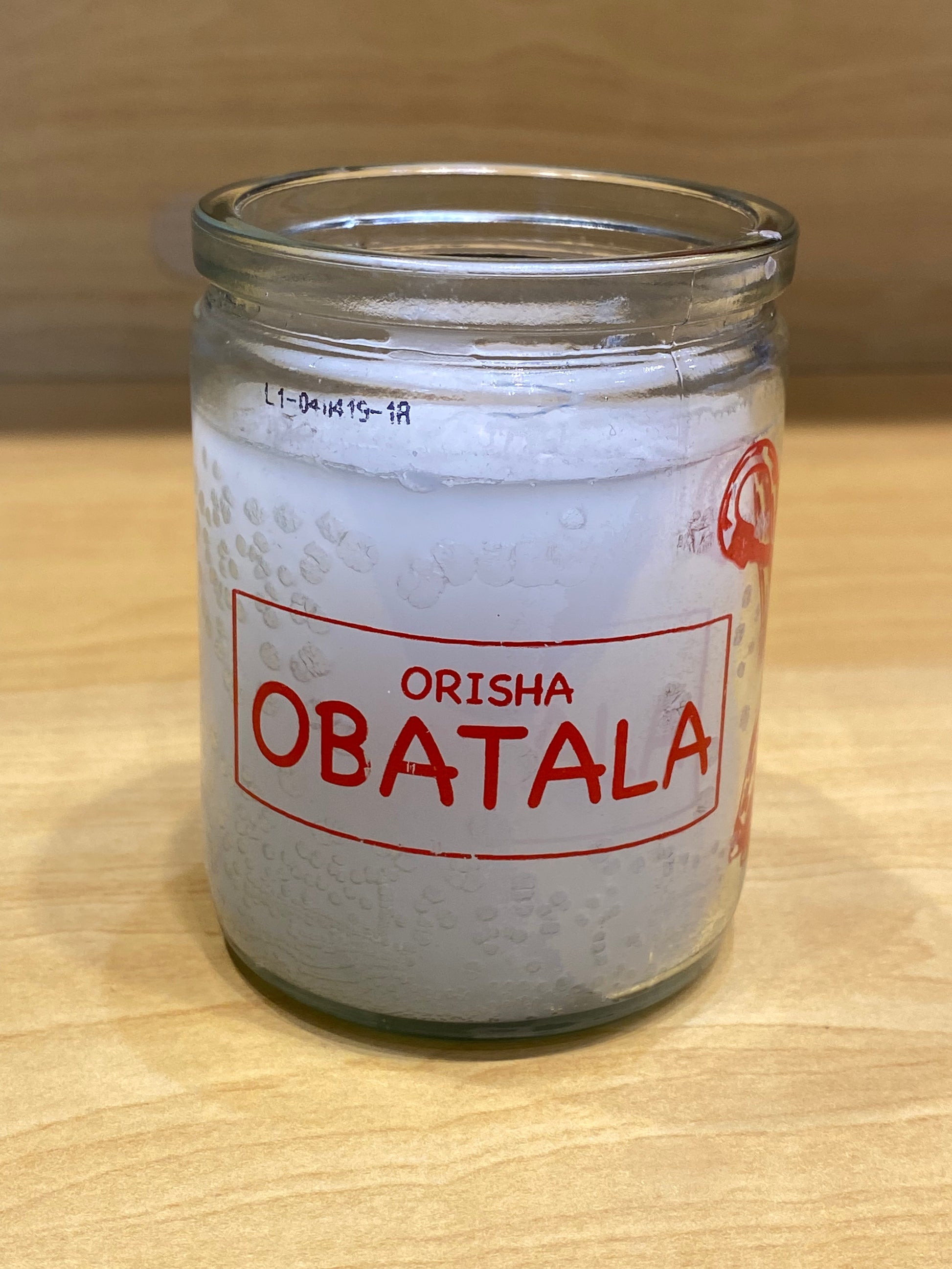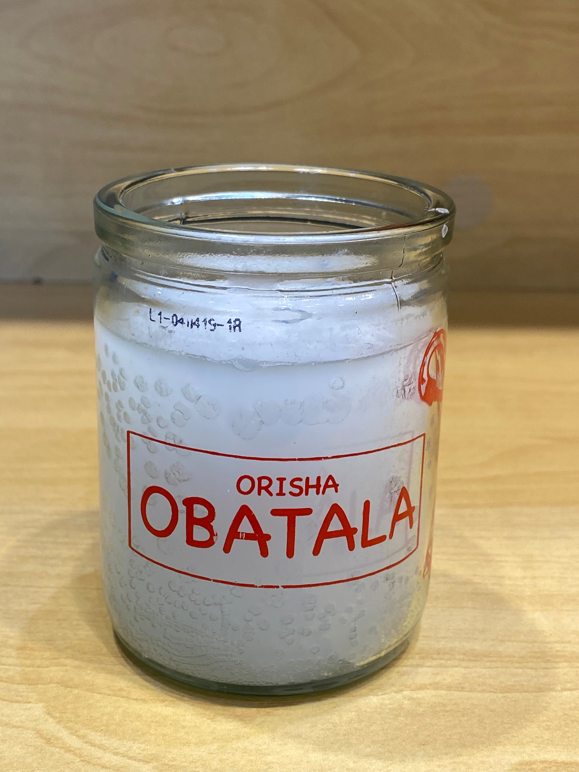 Orisha Obatala is the kindly father of all the Orishas and all humanity. White 50 HourCandle