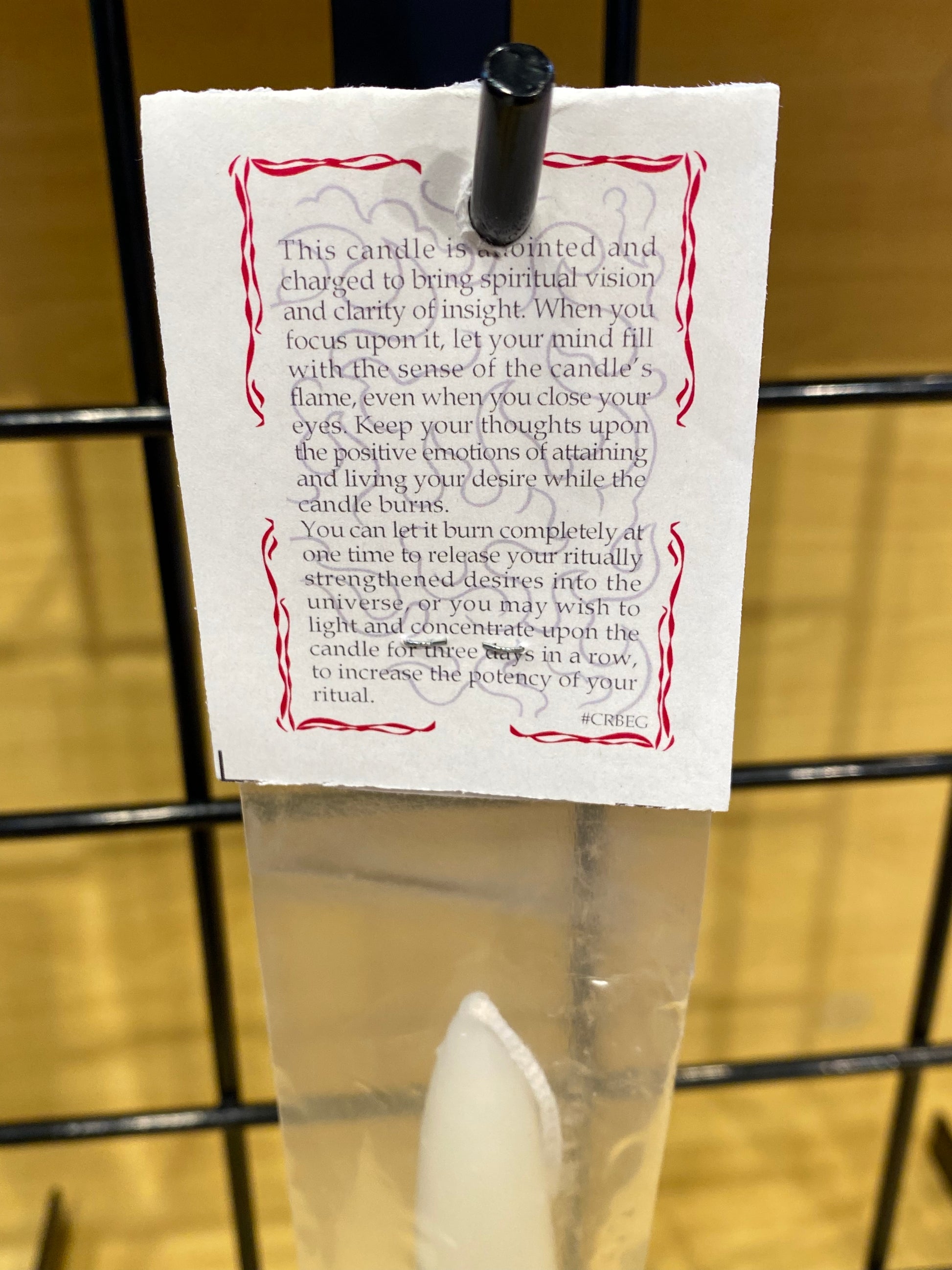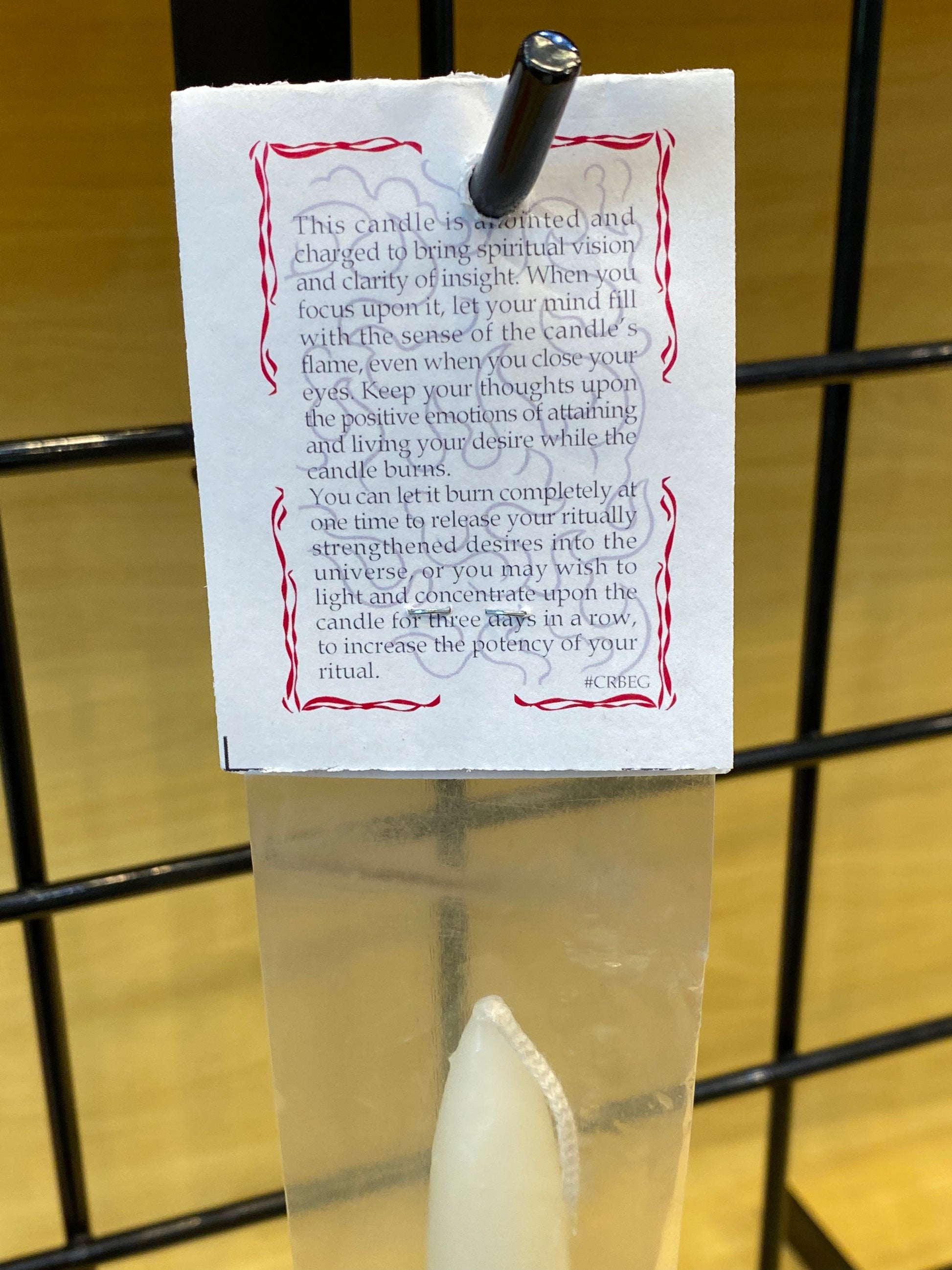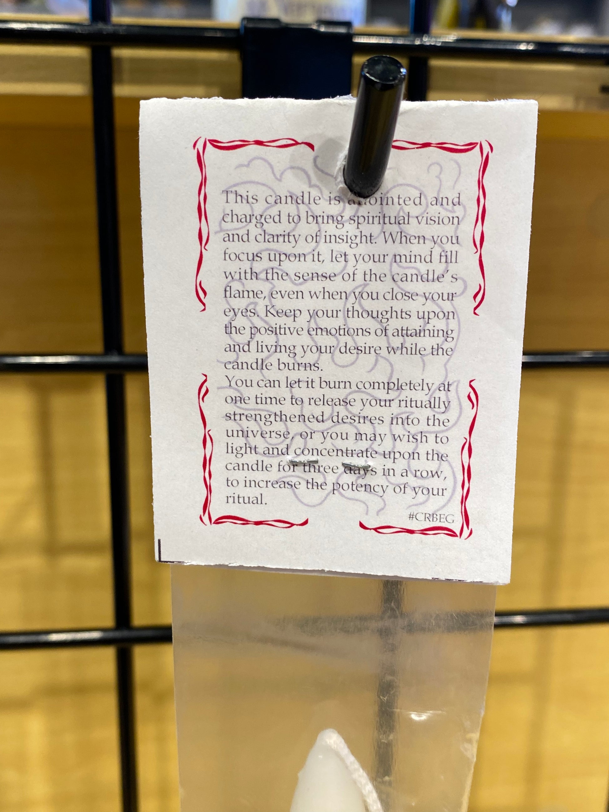 New Beginnings: This candle is anointed and charged to bring spiritual vision and clarity of insight. The Centering ritual candle has been charged, anointed, and inscribed with Theban script by a powerful witch to help bring calm, stillness, to yourself and your surroundings. 7" candle burnes approximately 1" per hour.
