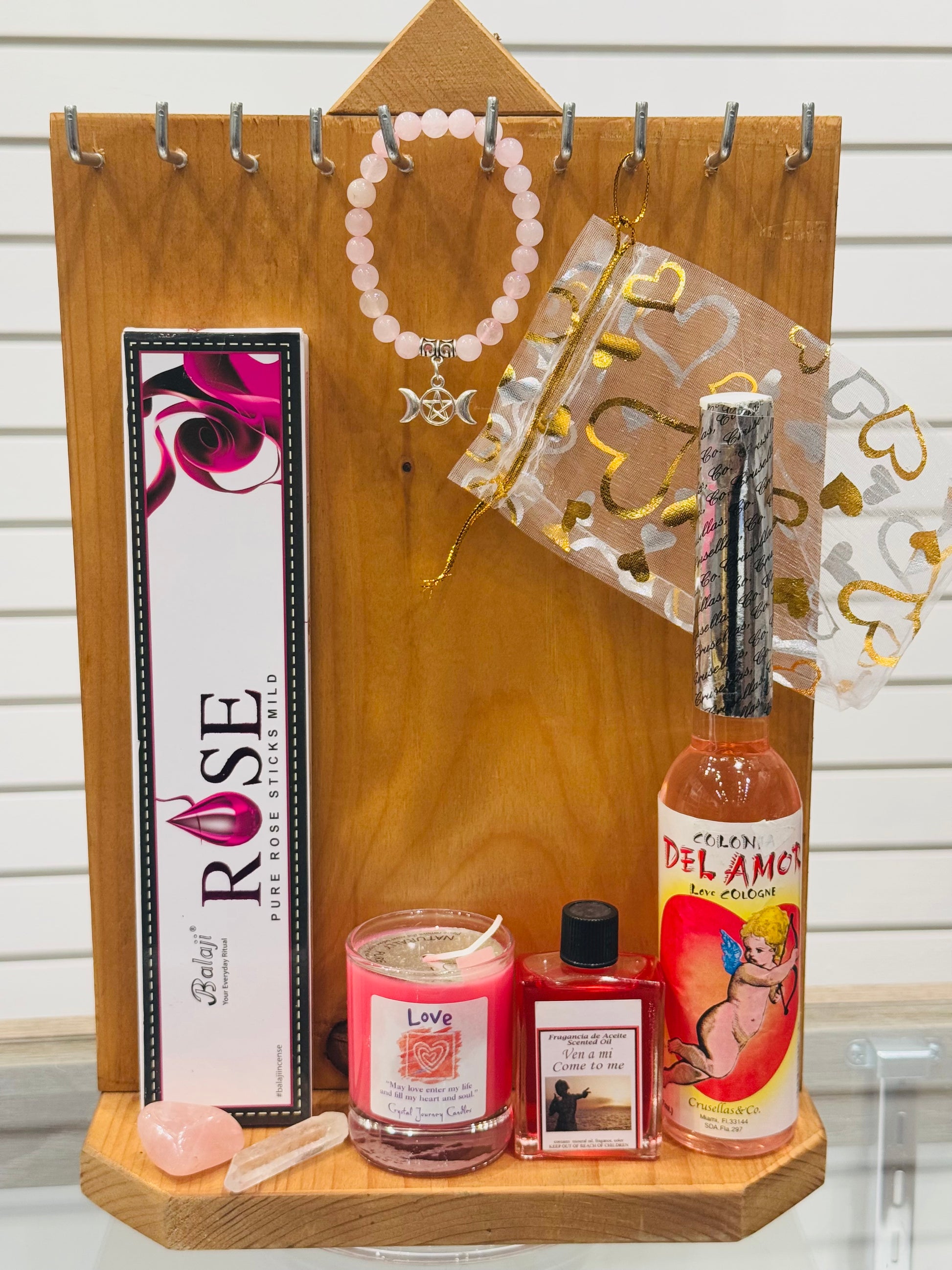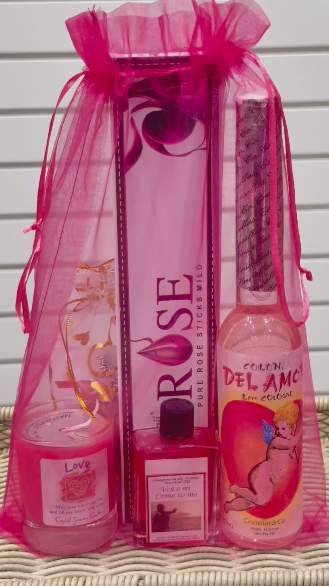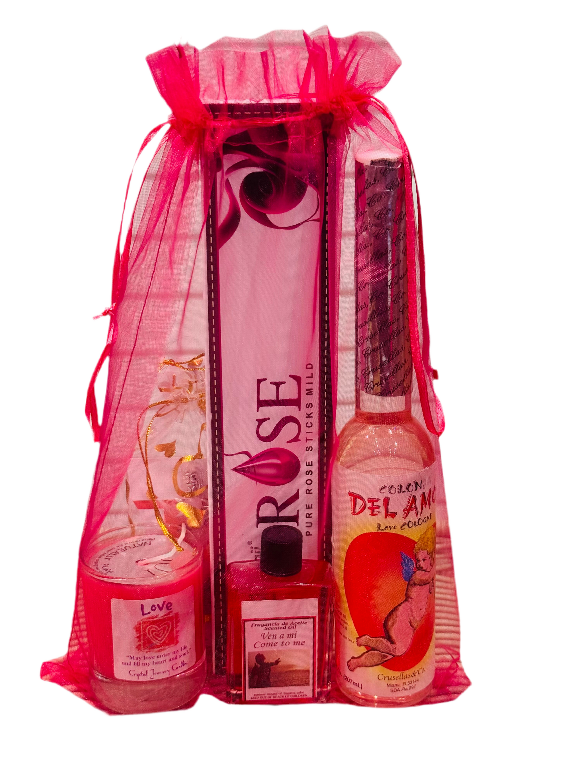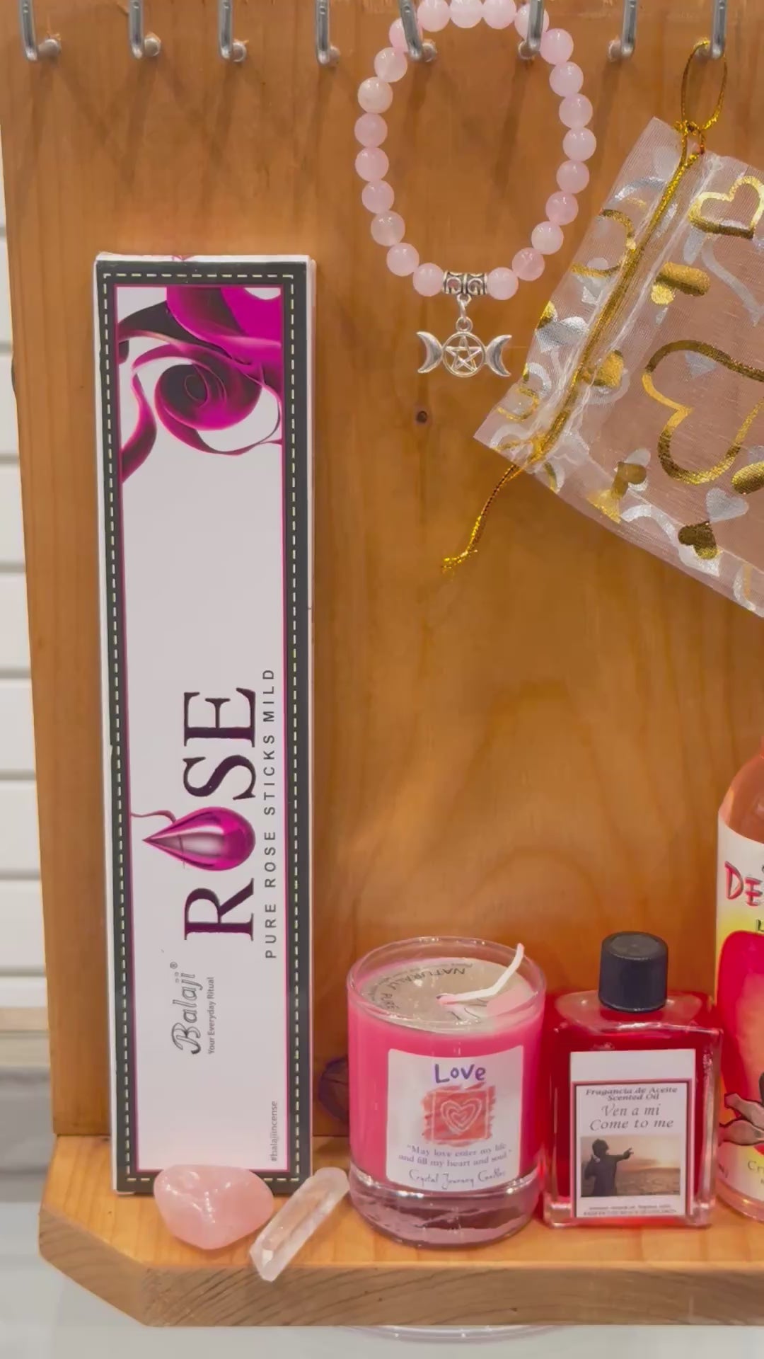 The Eternal Love Vibes Kit brings lasting love and beauty into your life with a thoughtfully curated selection. The Eternal Love Vibes Kit includes Balaji Pure Rose Incense Sticks, filling the air with the scent of romance, and the Triple Moon Rose Quartz Bracelet, which embodies divine feminine energy and the cyclical flow of life. Enhance your attraction with Colonia Del Amor Love Cologne, included in the Eternal Love Vibes Kit. The Crystal Journey ‘Love’ Candle aligns with love mantras and affirmations, making it an essential part of the Eternal Love Vibes Kit. To help manifest and draw love closer, the “Ven a Mí” Oil completes the Eternal Love Vibes Kit. This kit radiates romantic energy and empowers you to manifest deep connections.