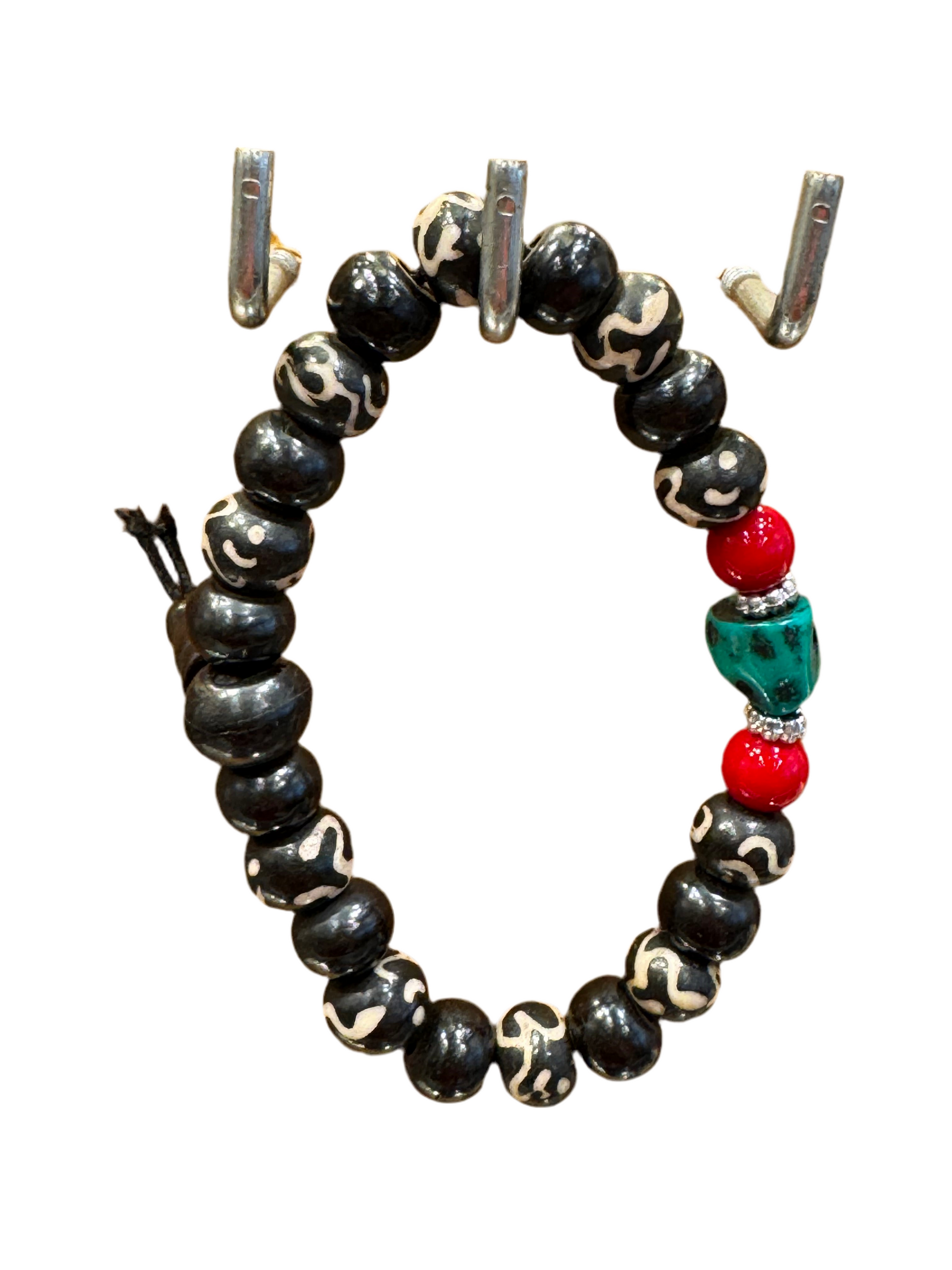 Embrace serenity and connection with our handcrafted Beaded Prayer Bracelet, featuring vibrant turquoise beads and sacred Om symbols. Made in Nepal, this stretchy bracelet is designed for comfort and style, allowing you to wear it daily or during your spiritual practices. The Om symbol, representing the essence of the universe, encompasses the past, present, and future. It signifies universal knowledge and is traditionally chanted at the start of prayers, meditation, and yoga. Each bead serves as a reminder of your intentions, making it a perfect companion for mindfulness and reflection. Whether you're deepening your practice or seeking a meaningful accessory, this bracelet is a beautiful expression of faith and tranquility. Wear it as a personal talisman or gift it to someone special on their spiritual journey.