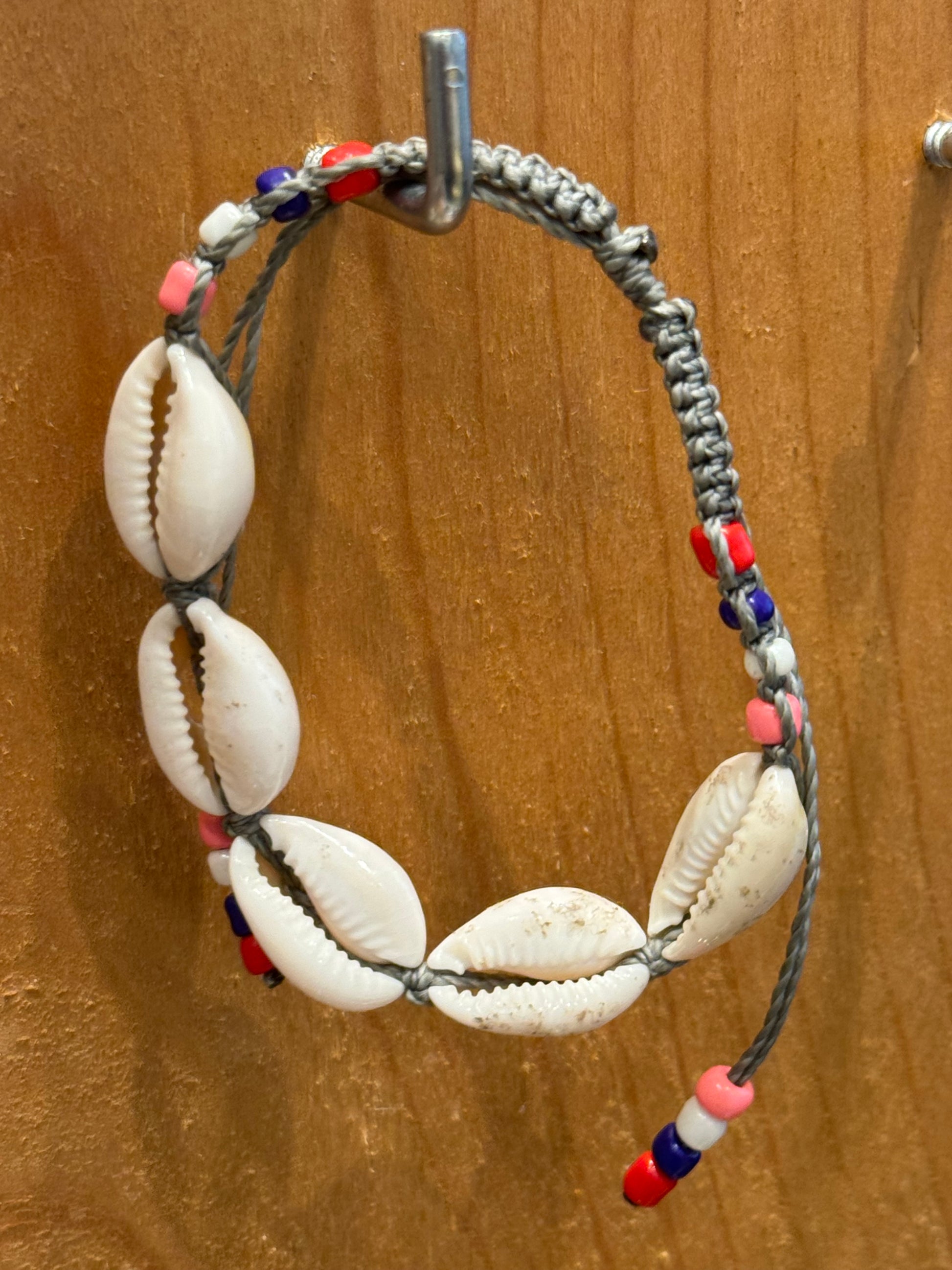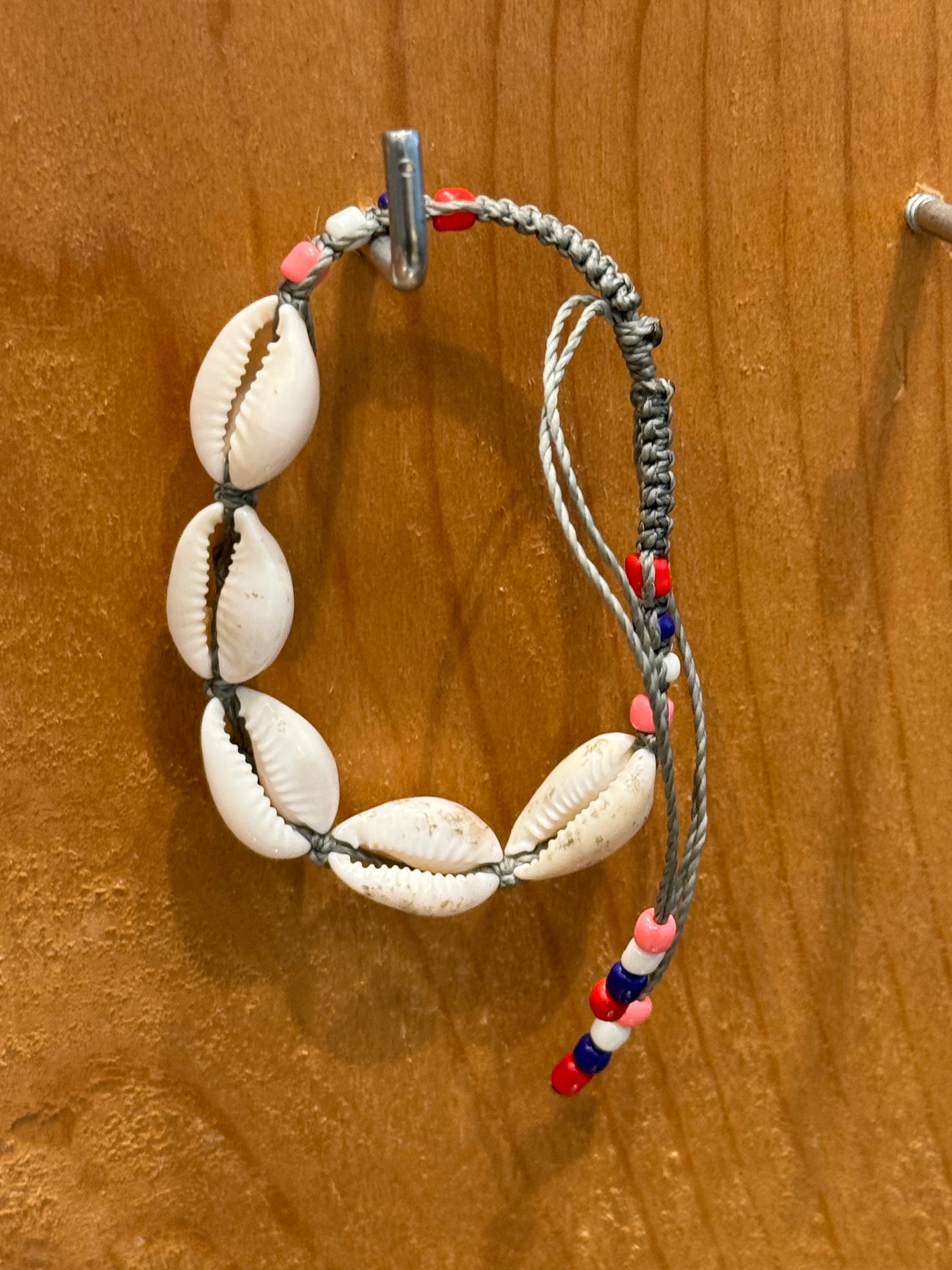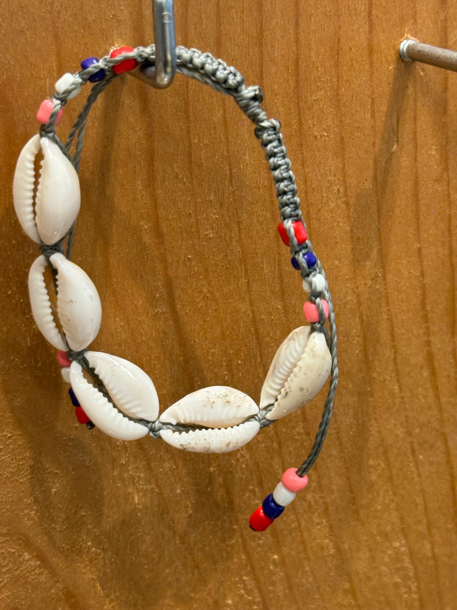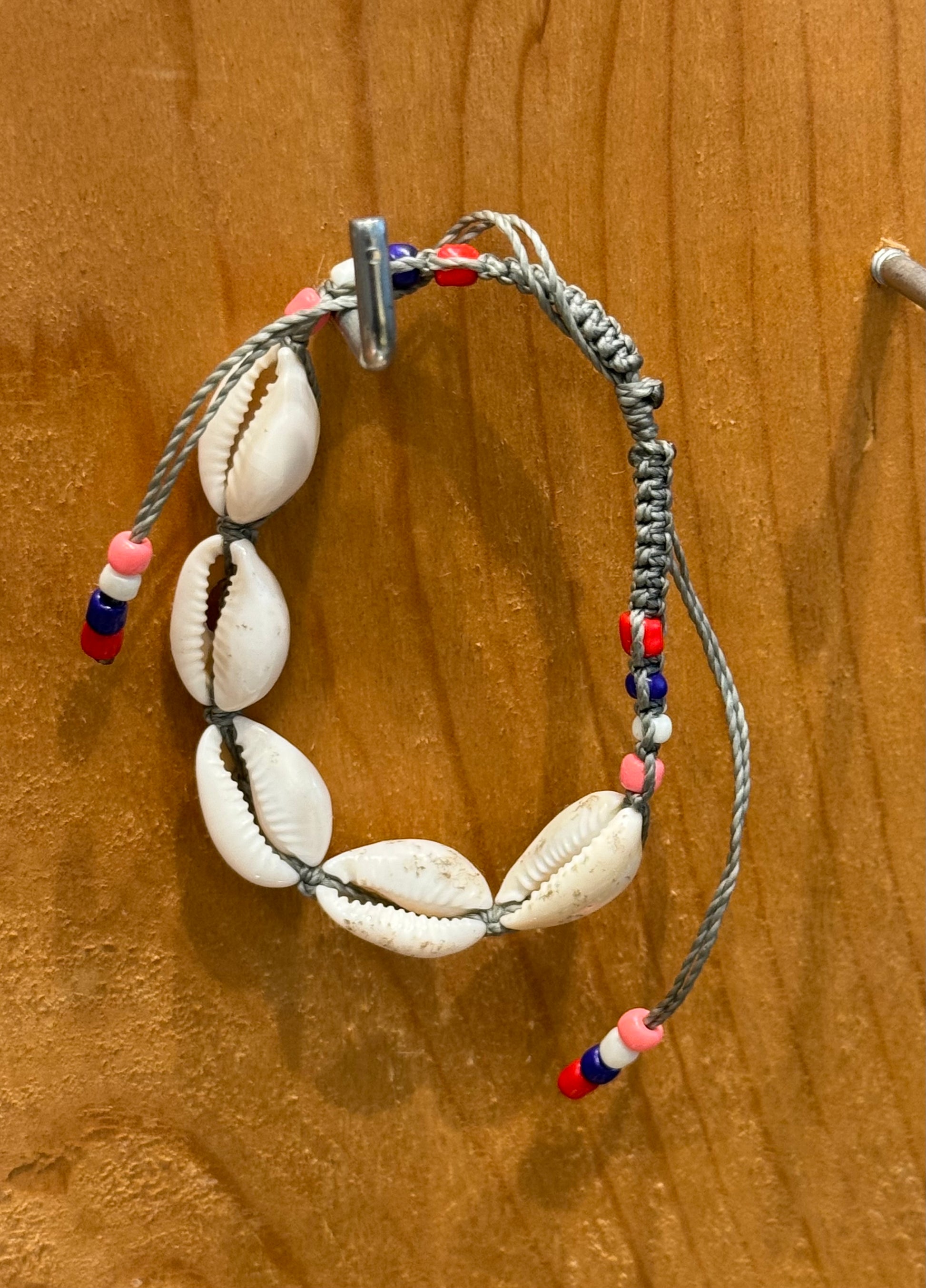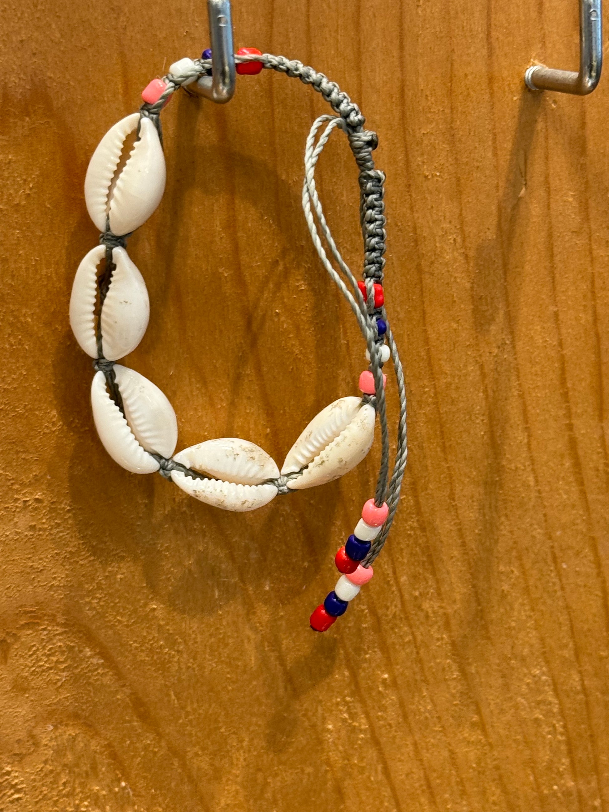 Handmade Gray String Bracelet With Cowrie Shells and Colorful Beads