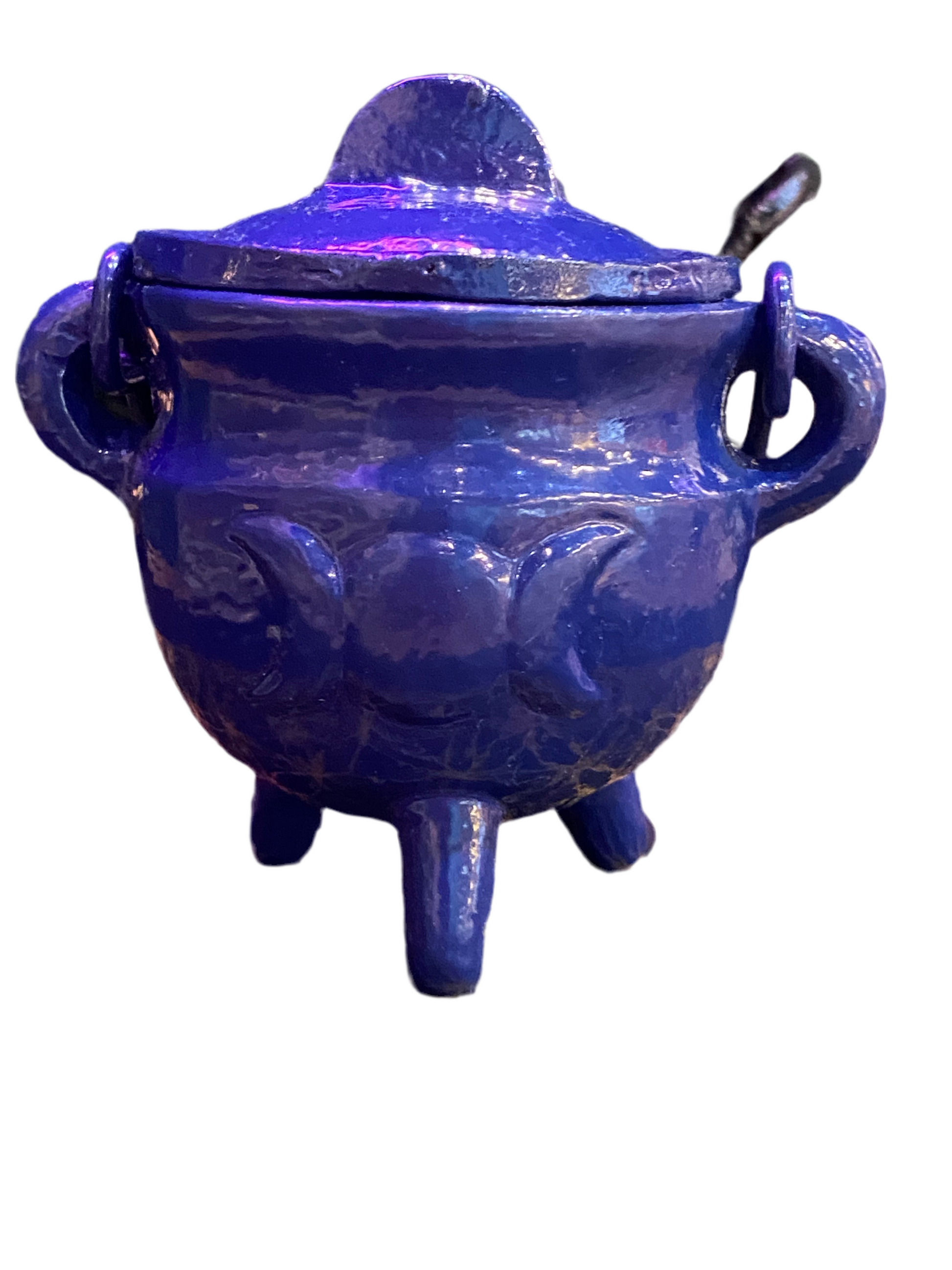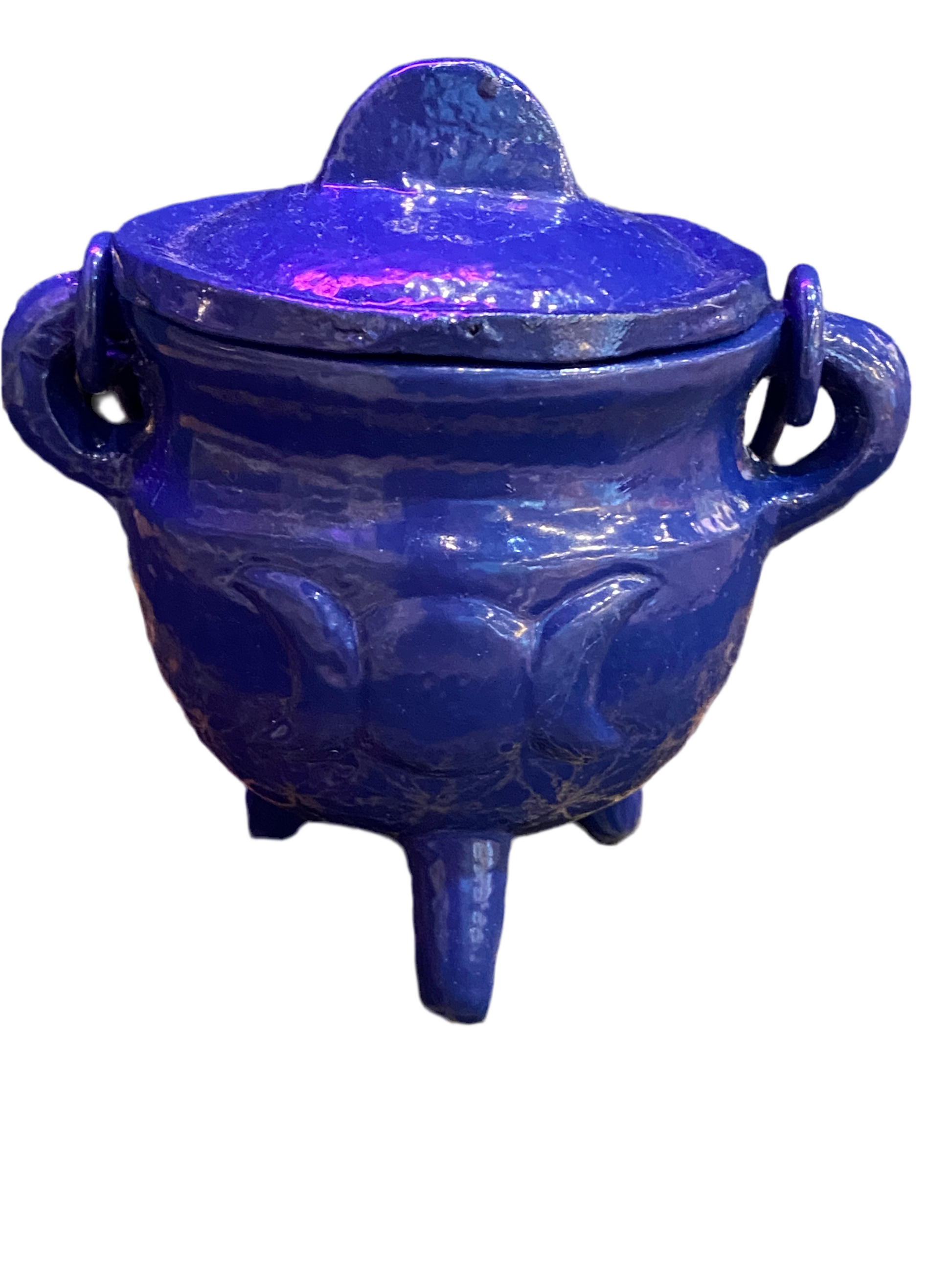 The Blue Triple Moon Cast Iron Cauldron is a must-have for your spiritual practices and rituals. Made from pure cast iron with no metal additives, the Blue Triple Moon Cast Iron Cauldron is ideal for burning loose incense, resins on a charcoal disc, mixing herbs, burning petitions, or creating potions and black salt. This Blue Triple Moon Cast Iron Cauldron is beautifully painted blue and adorned with the triple moon symbol, a representation of the divine feminine and lunar phases.