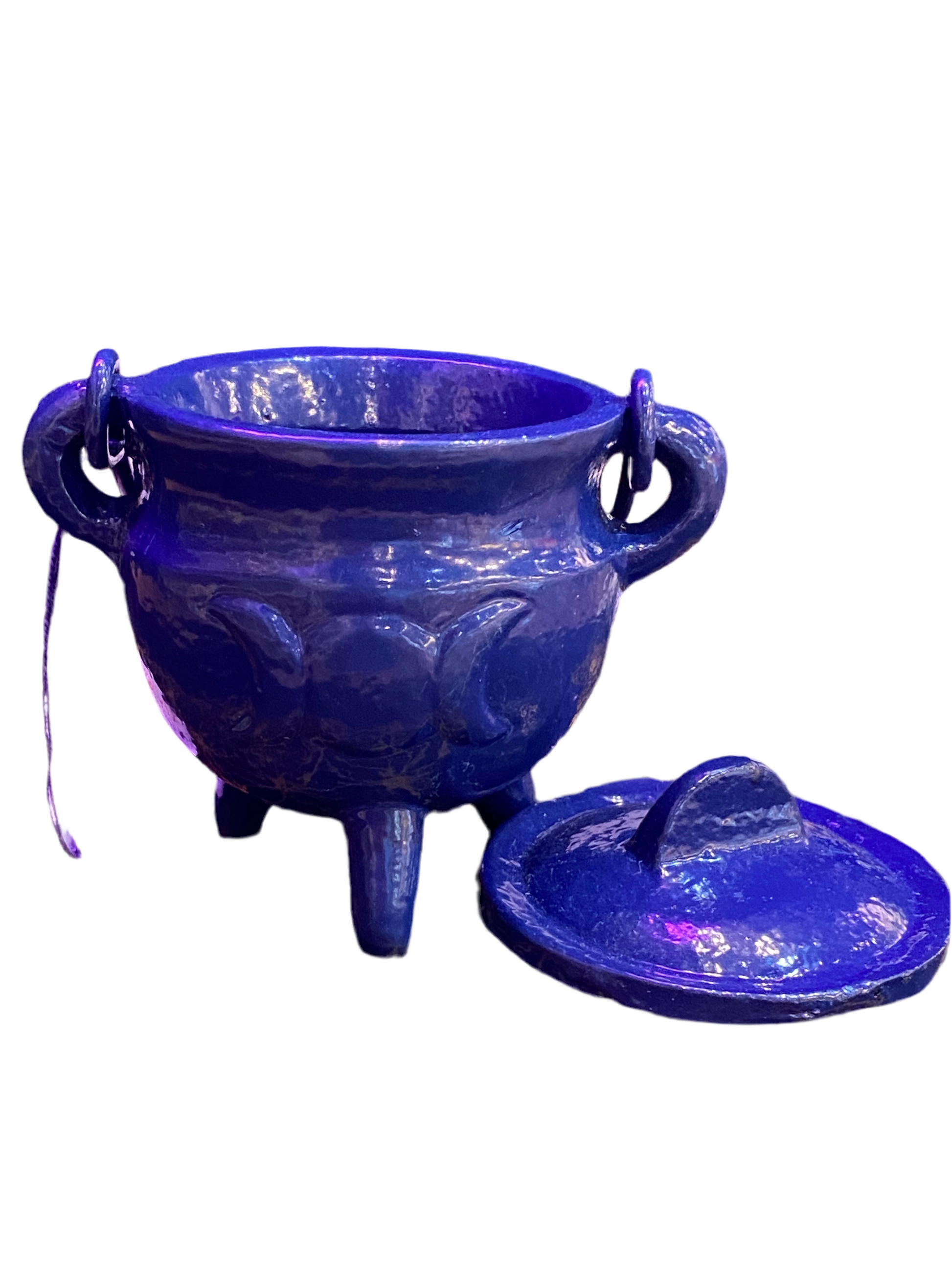 Measuring 10x7x10 cm Ht., the Blue Triple Moon Cast Iron Cauldron includes a lid for convenience and functionality. Its durable design ensures long-lasting use while adding an aesthetic touch to your sacred space. Please note, these statements have not been evaluated by the FDA, and the Blue Triple Moon Cast Iron Cauldron is not intended to diagnose, treat, cure, or prevent any disease. The Blue Triple Moon Cast Iron Cauldron is an essential addition to enhance your ritual work.
