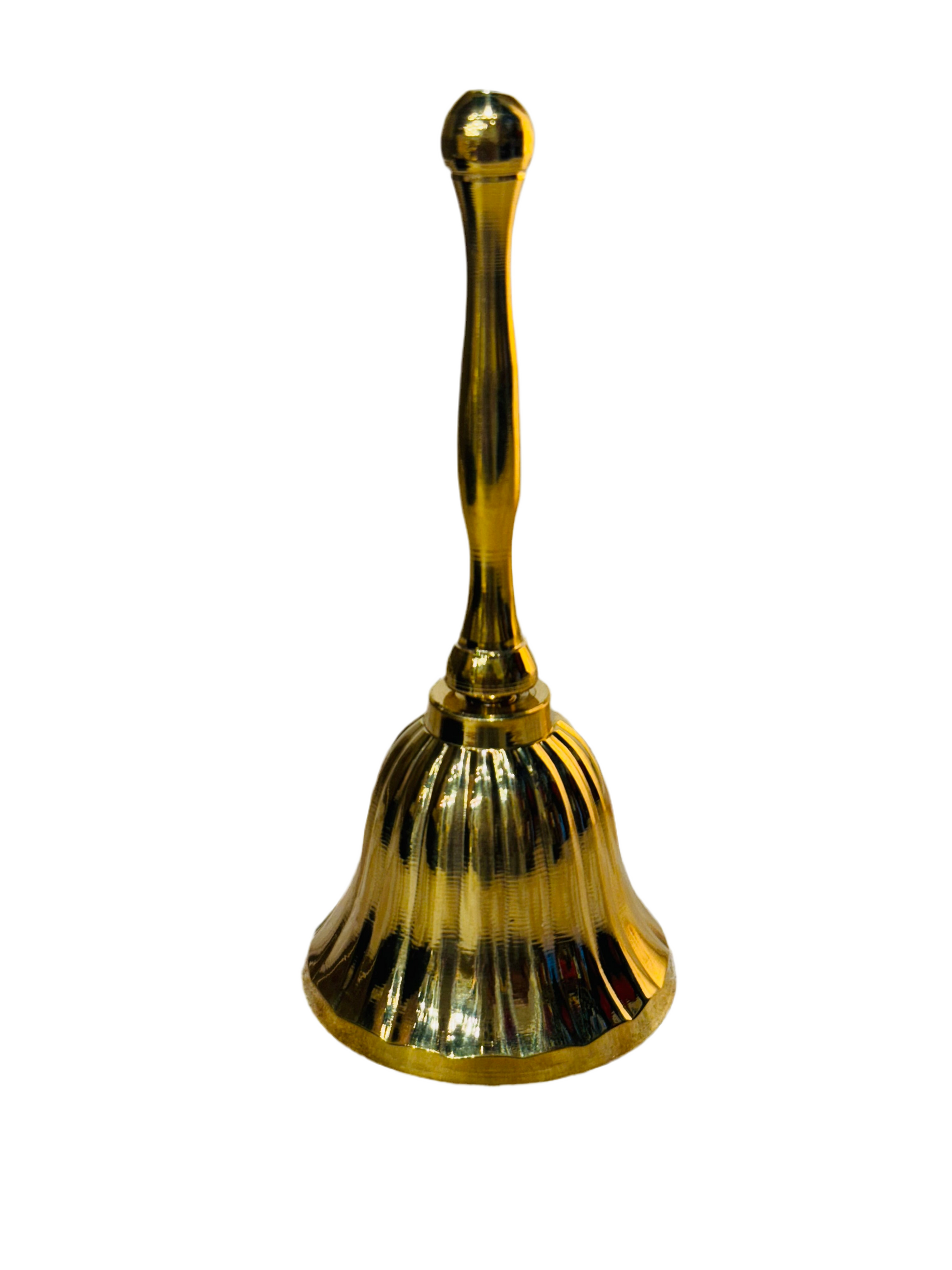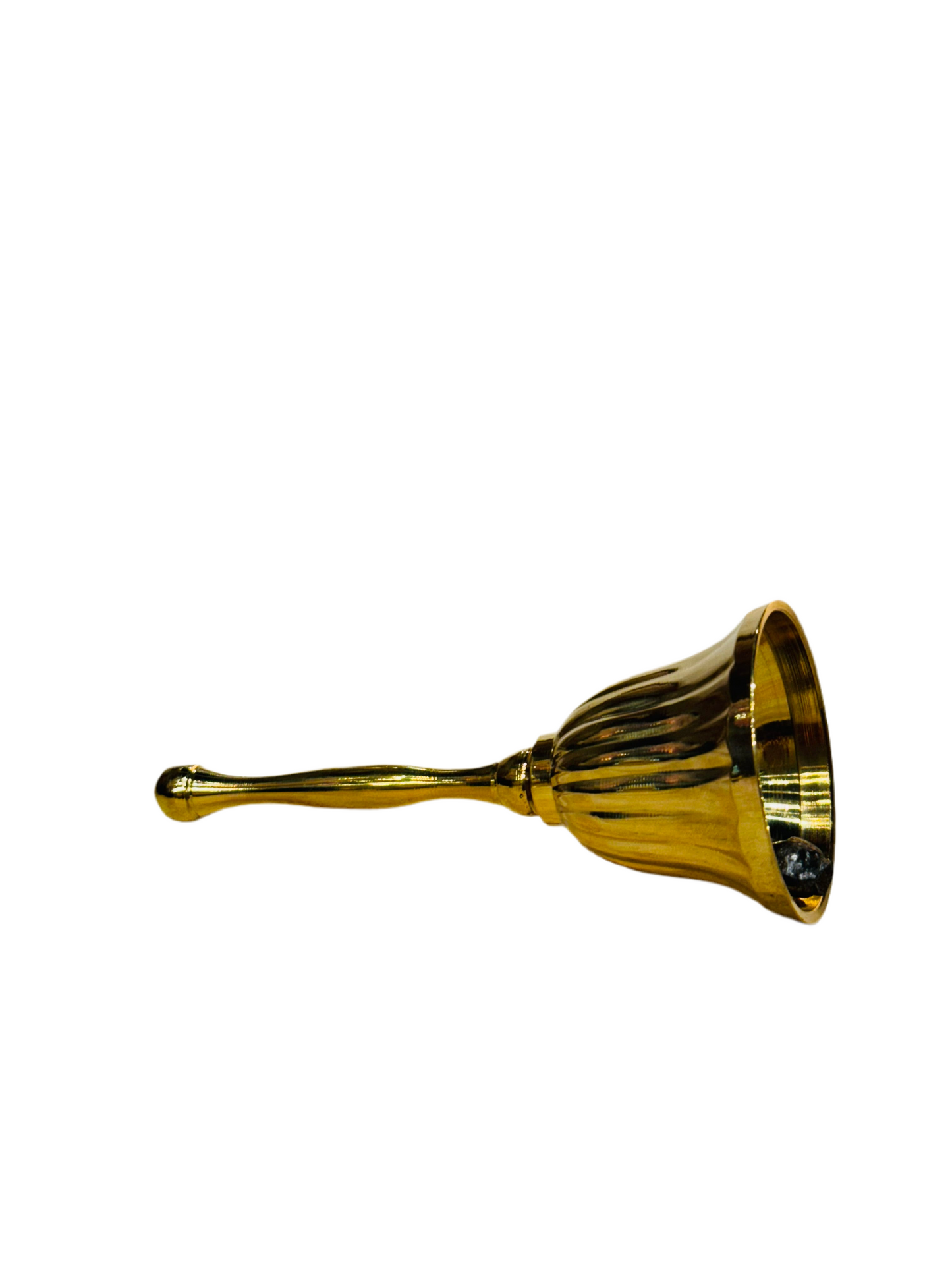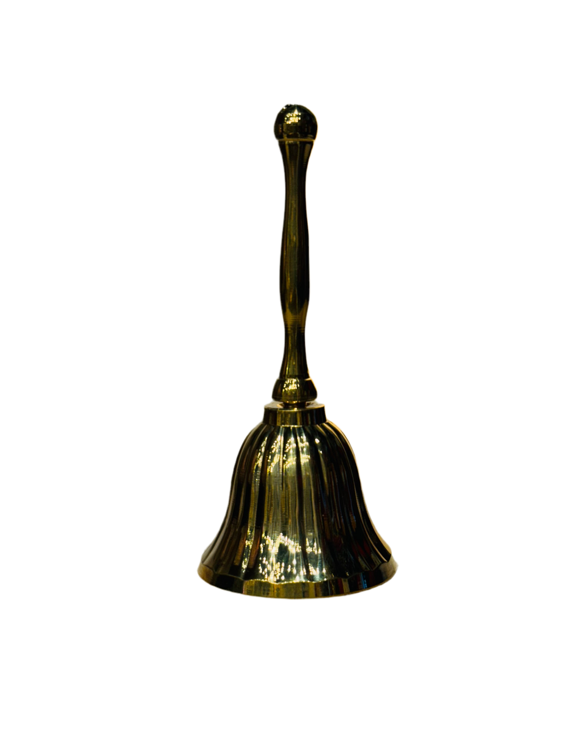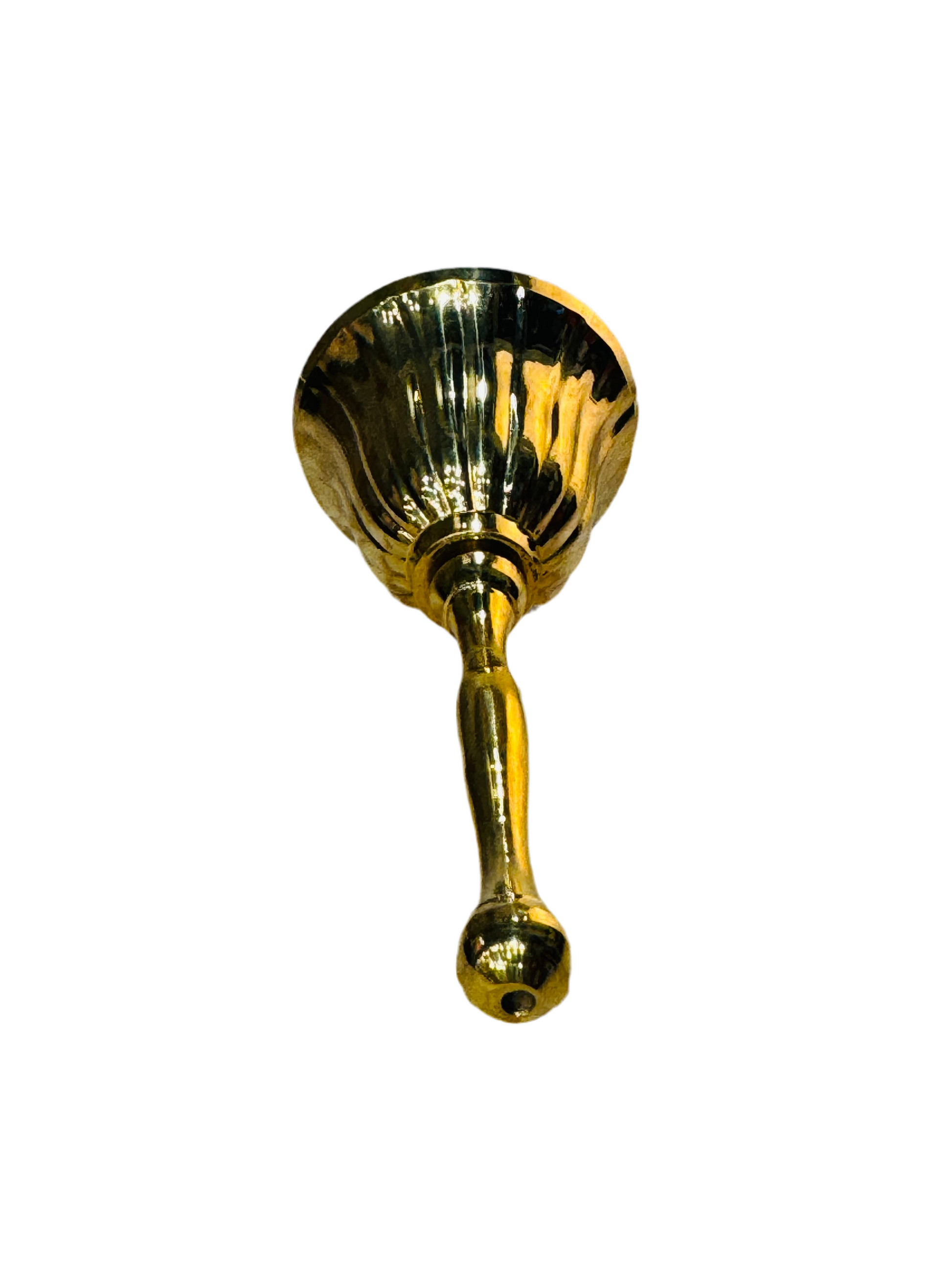 This exquisite Brass Bell with a decorative scalloped outer bell and a slender handle, measuring 4 inches in size. This stunning piece is a testament to the perfect blend of elegance and functionality. Crafted with utmost precision, this bell is made from high-quality brass, ensuring durability and longevity. The intricate scalloped design on the outer bell adds a touch of sophistication, making it a beautiful addition to any space. The slender handle provides a comfortable grip, allowing you to ring the bell effortlessly. Its compact size makes it ideal for various purposes, whether it's summoning your family for dinner or adding a charming touch to your home decor.