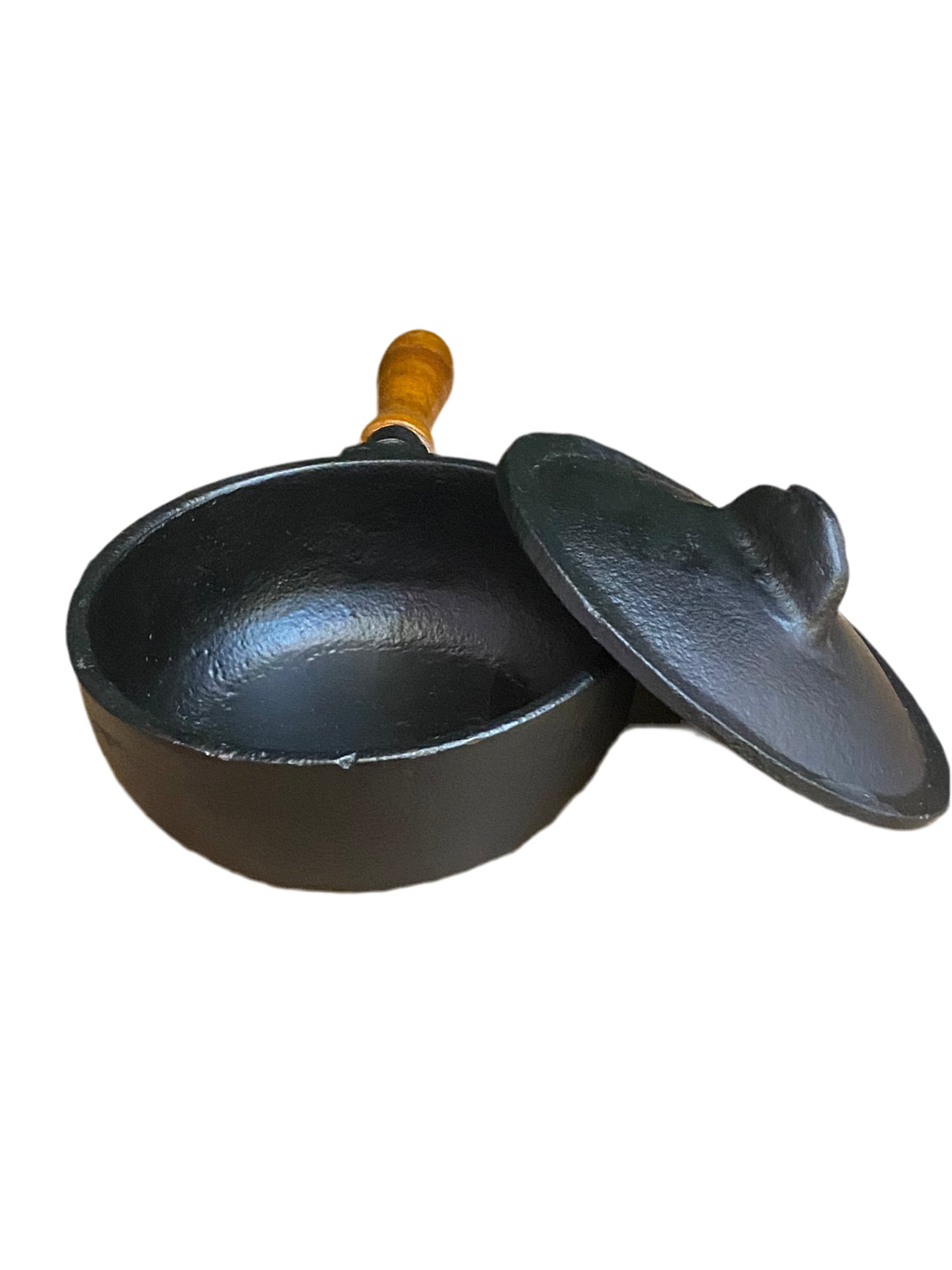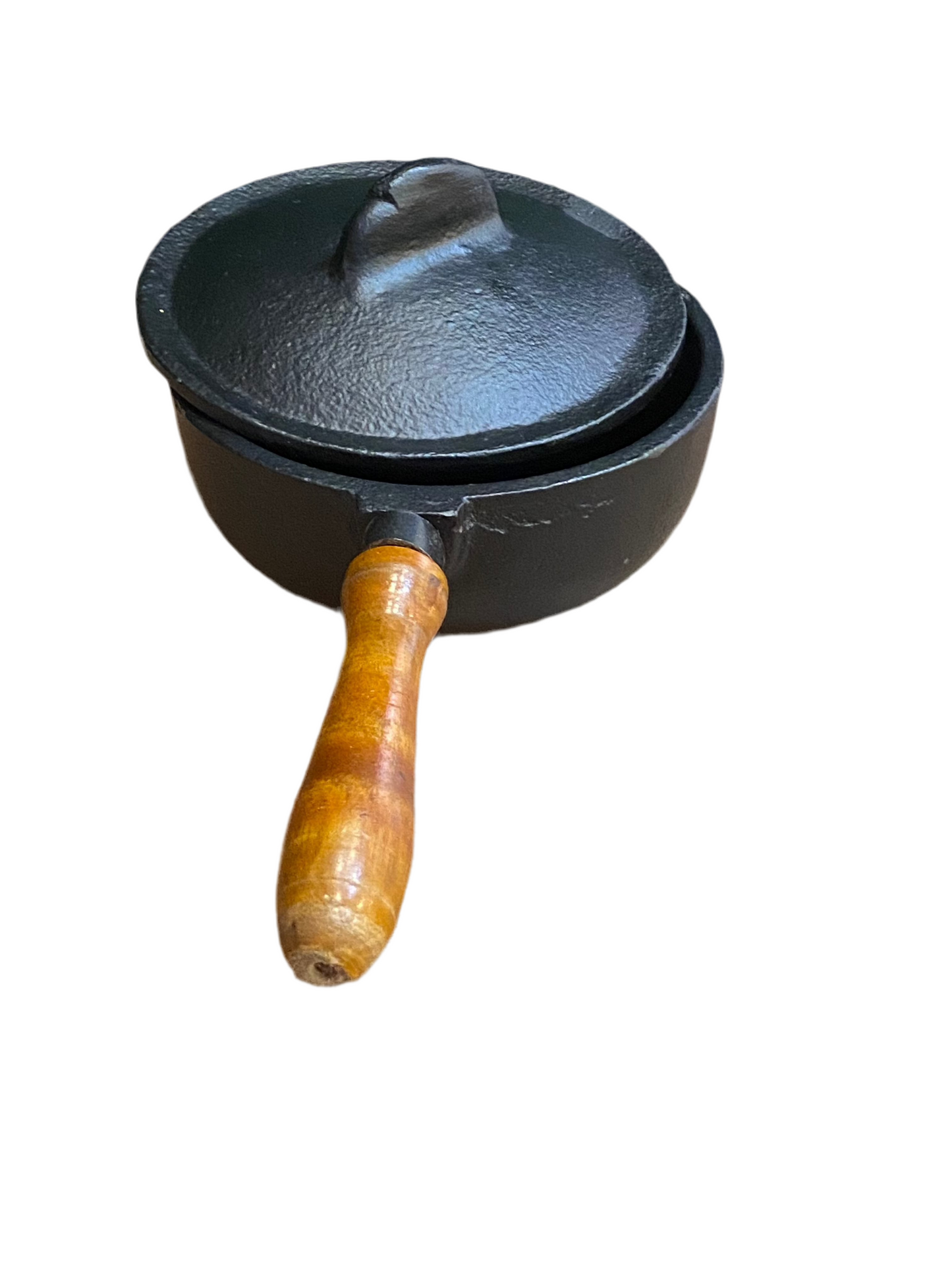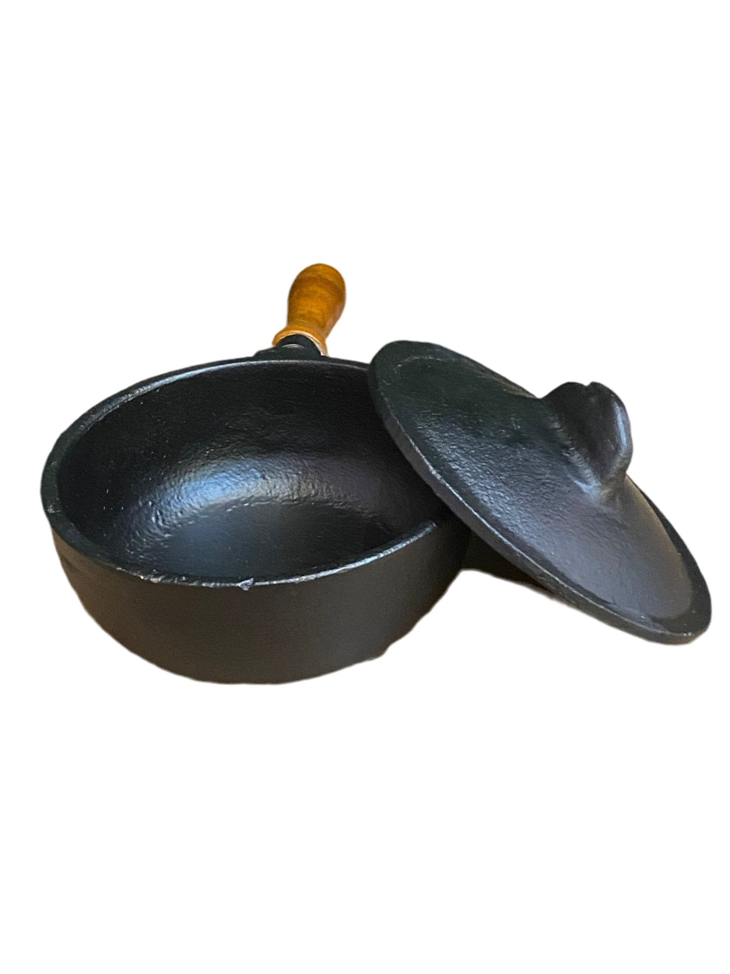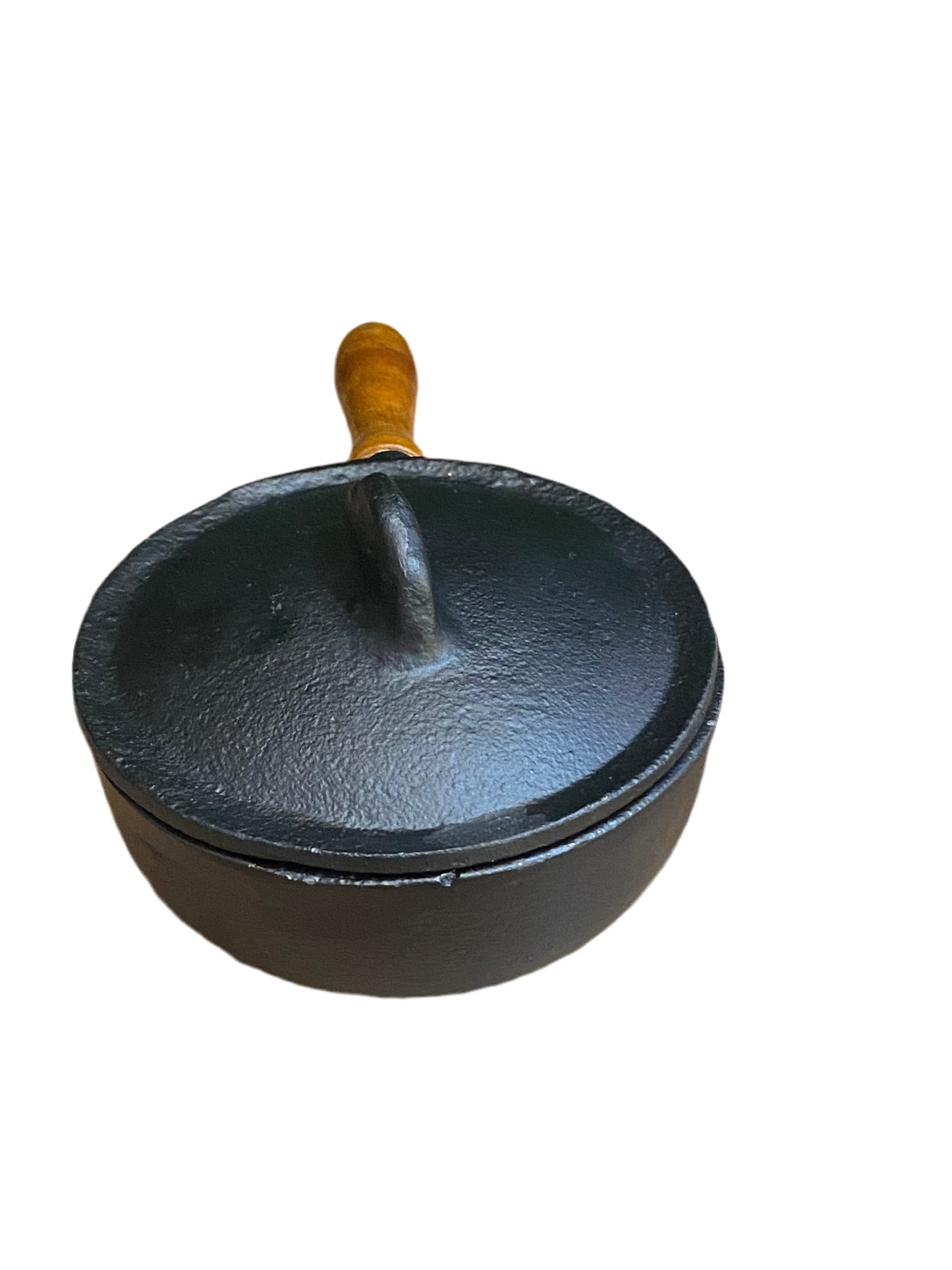 Measuring 3” D x 2.5” H, the Cast Iron Cauldron Pan Wooden Handle is designed for both functionality and elegance. It includes a sturdy lid and a comfortable wooden handle, making it ideal for rituals and everyday use.