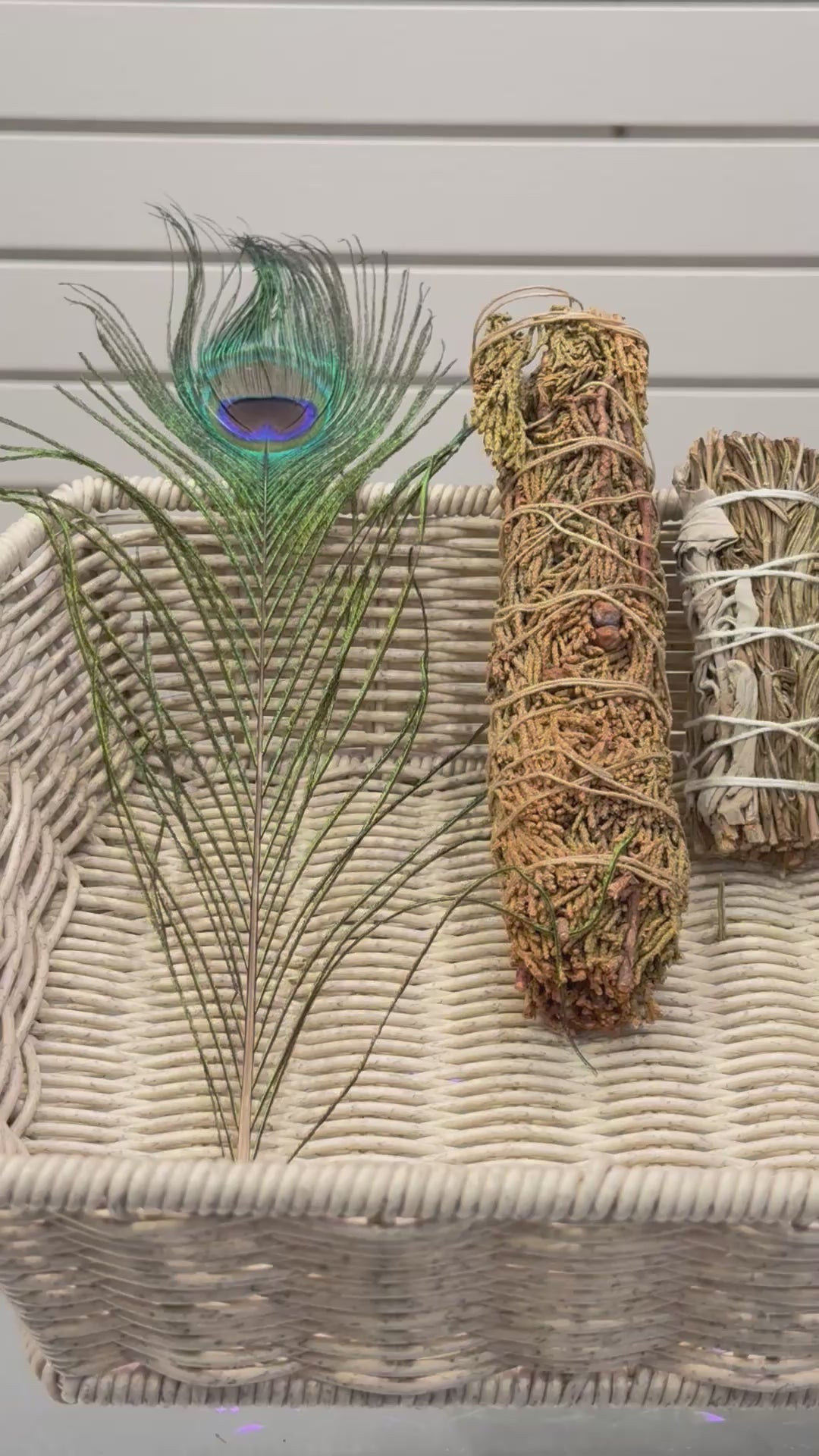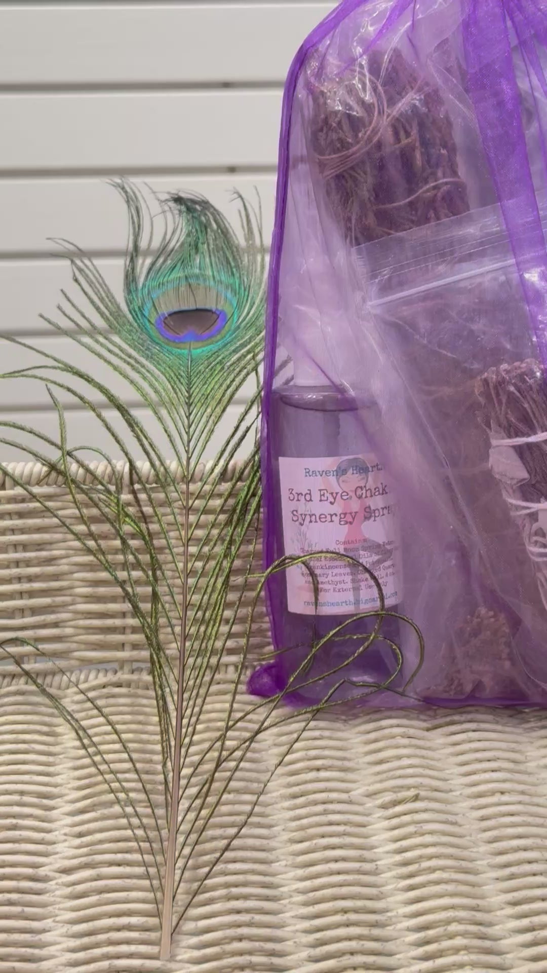 Bring harmony to your chakras with our Chakra Cleansing Smudge Set. Perfect for energy work and meditation, this kit is specially curated to support alignment and spiritual healing. It includes a White Sage & Rosemary 4” Wand, blending purification with the healing properties of rosemary; a Mugwort Smudge Stick Wand 9” to boost intuition and connection to higher realms; a Juniper Smudge Stick for grounding and cleansing energy; and Raven’s Hearth Thid Eye Chakra Synergy Spray Mist to seal in positive energy. Additionally, you’ll receive a free Peacock Feather completes the kit, perfect for chakra alignment and meditation.