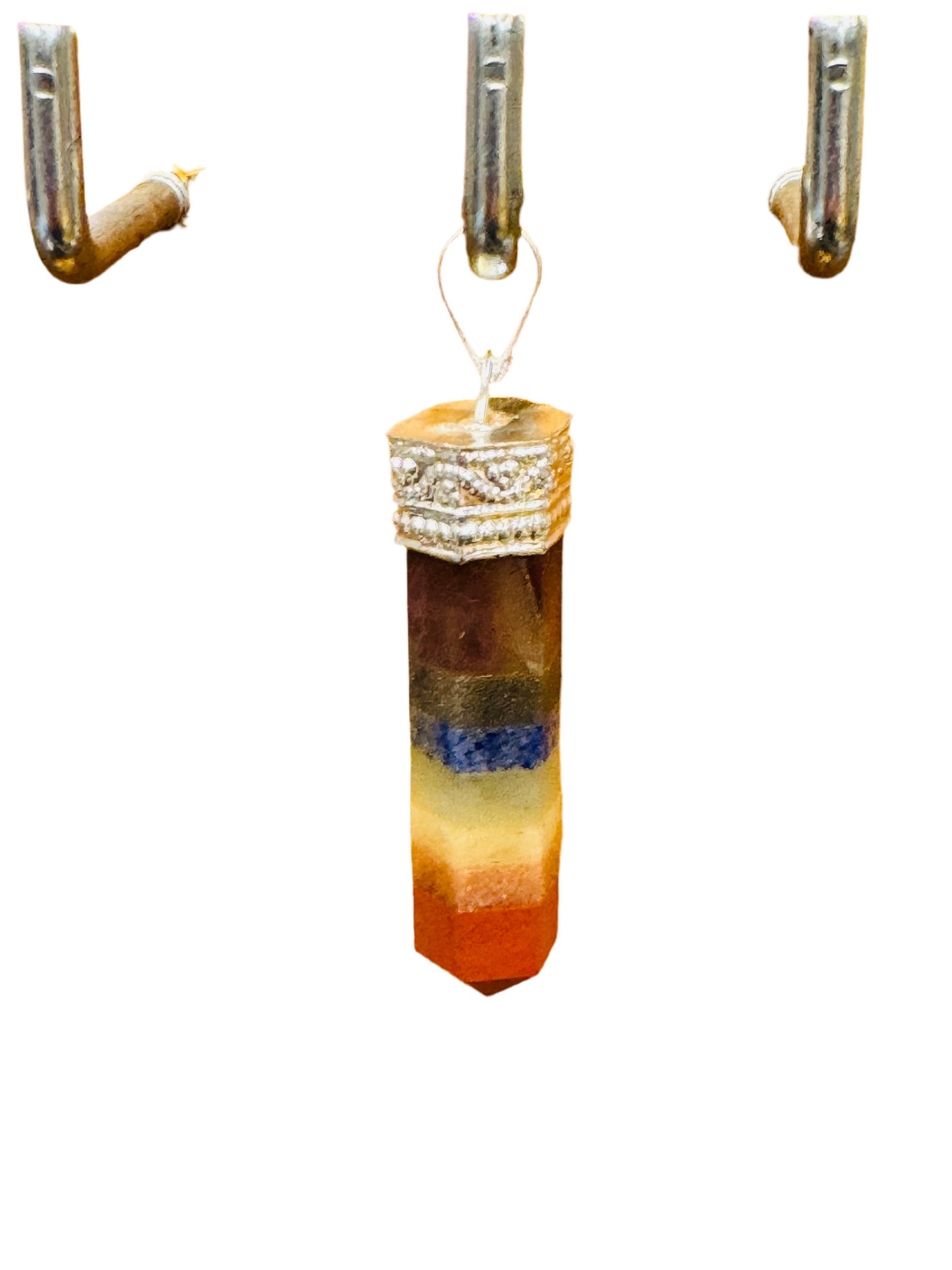 A point pendant containing the seven stones of the chakra layered one by one in order.