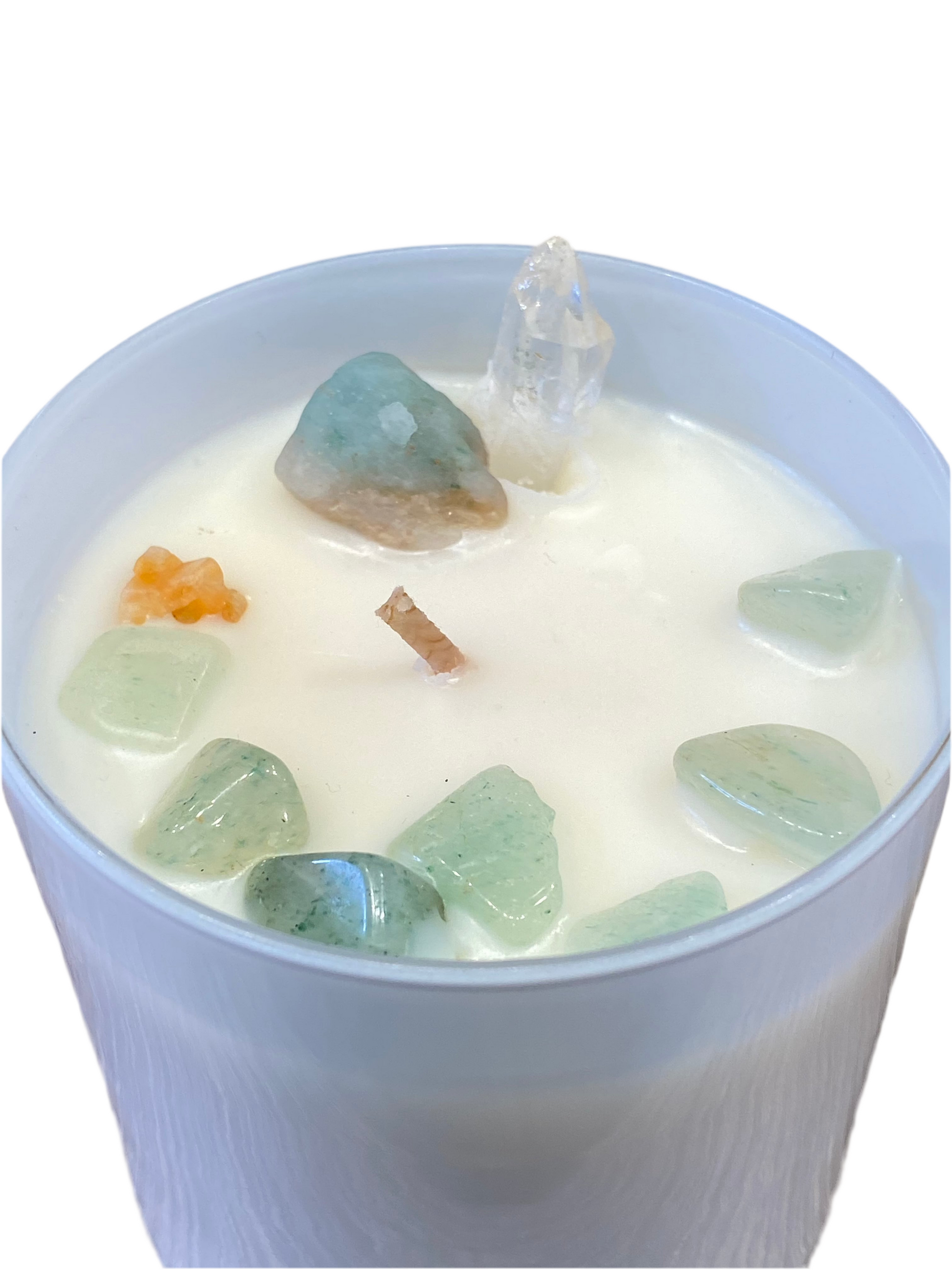 Crystal Scented Candle Aventurine Hand-poured soy-blend candle infused with the highest quality fragrances and essential oils. Each candle features aventurine stones.