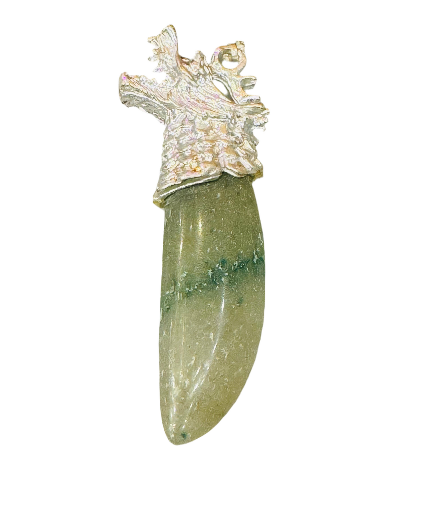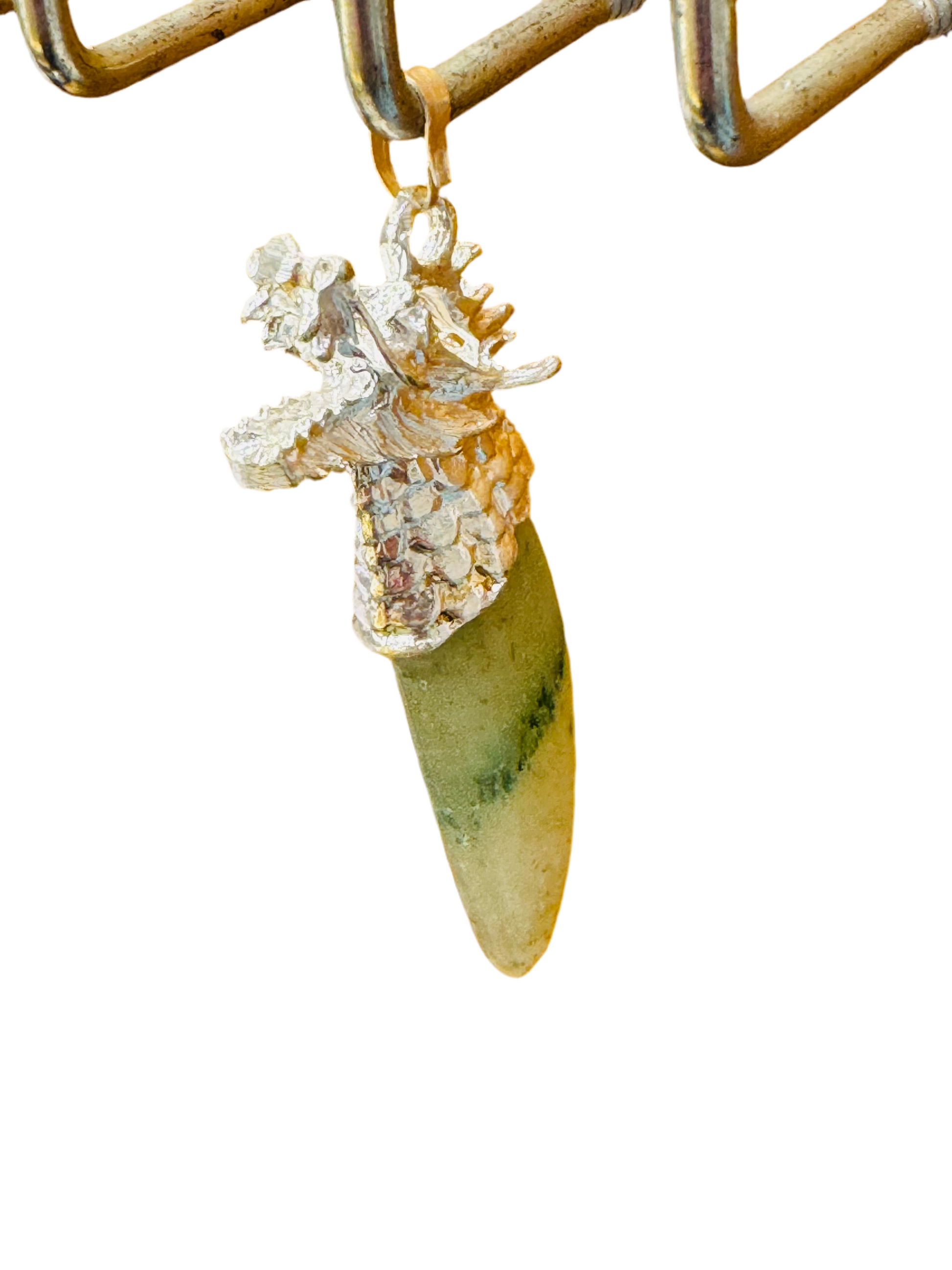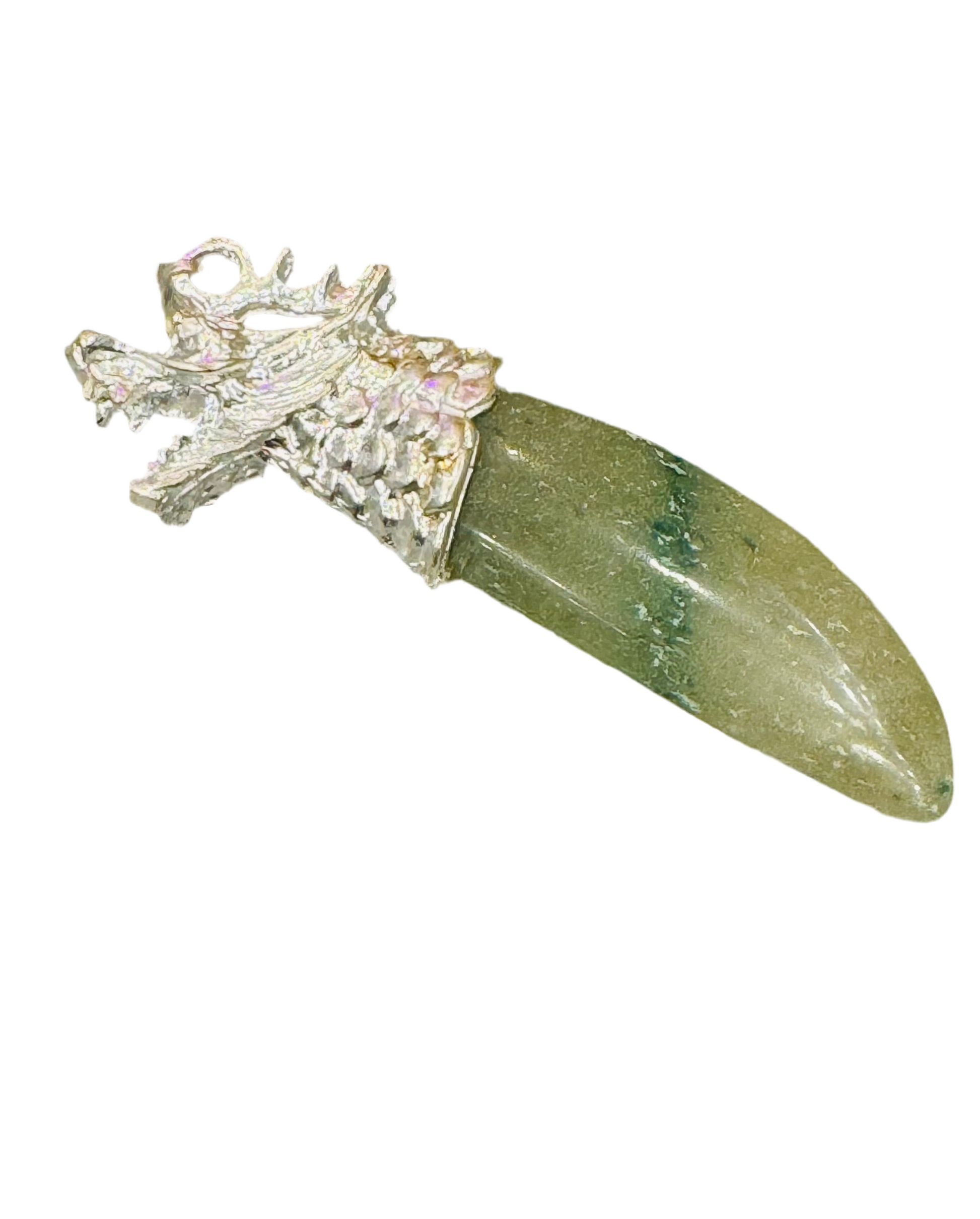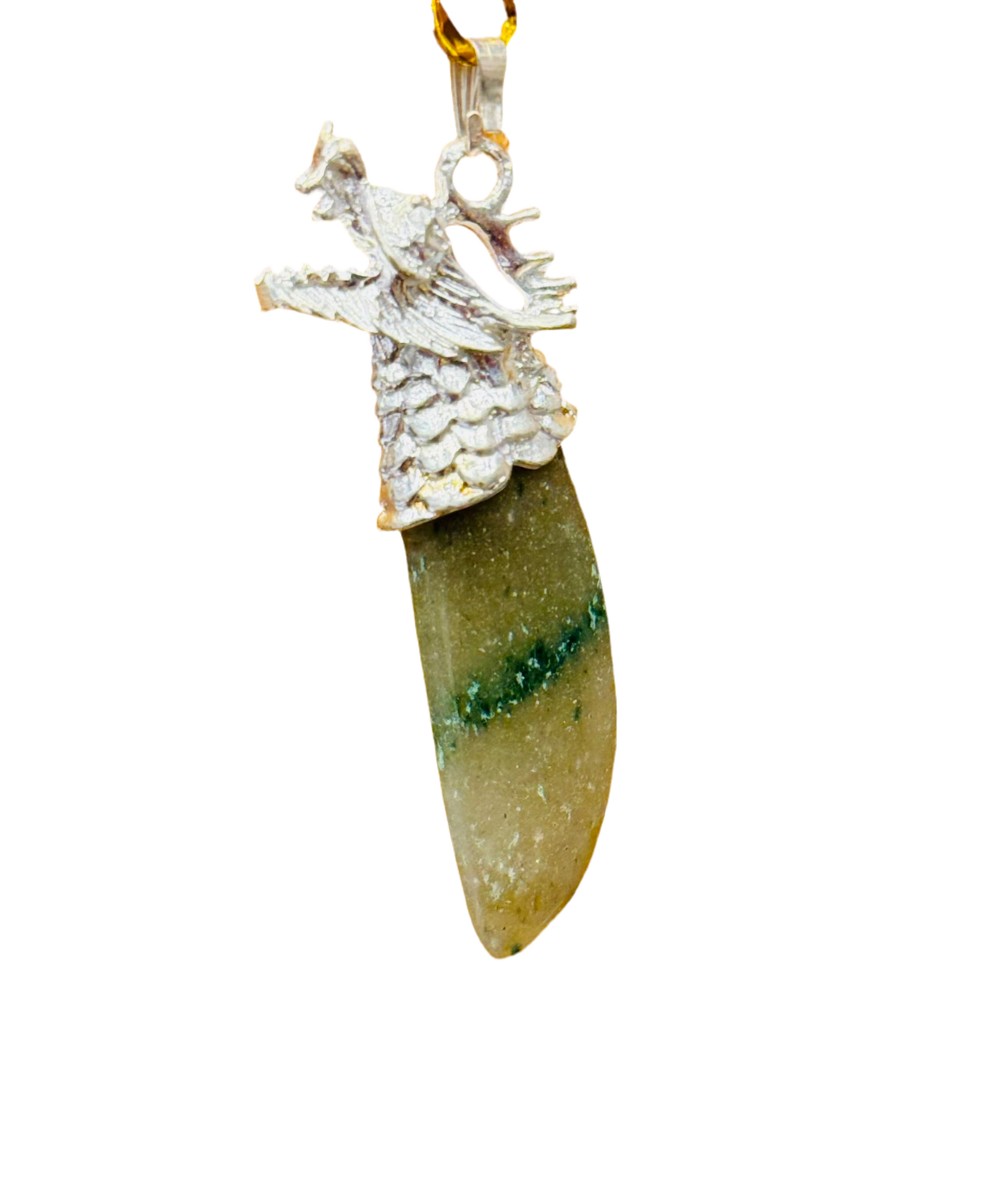 Silver Dragon Green Aventurine Horn Gemstone Pendant