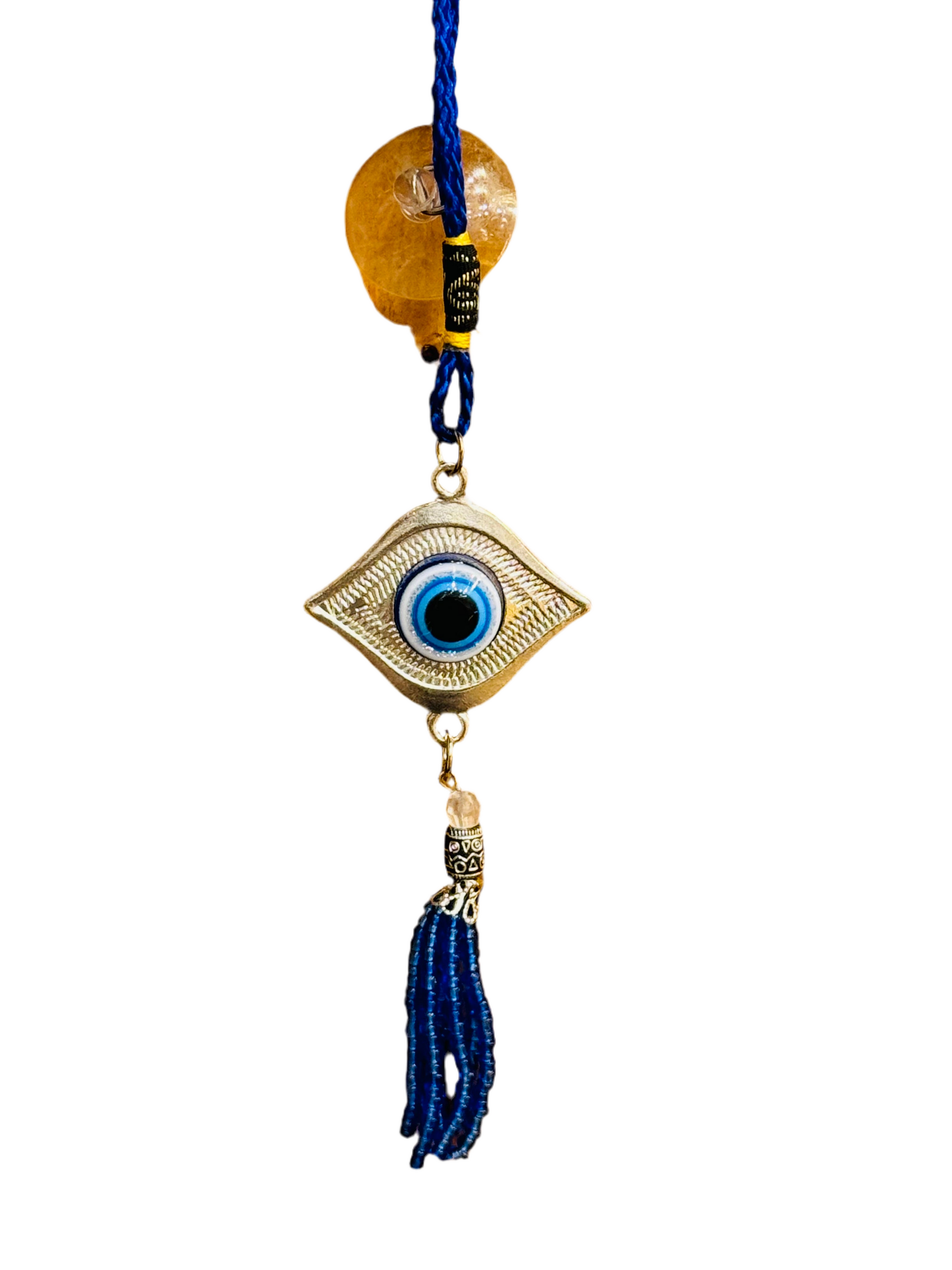 Silver Evil Eye Hanging Car Decor Ornament with Beaded Tassels