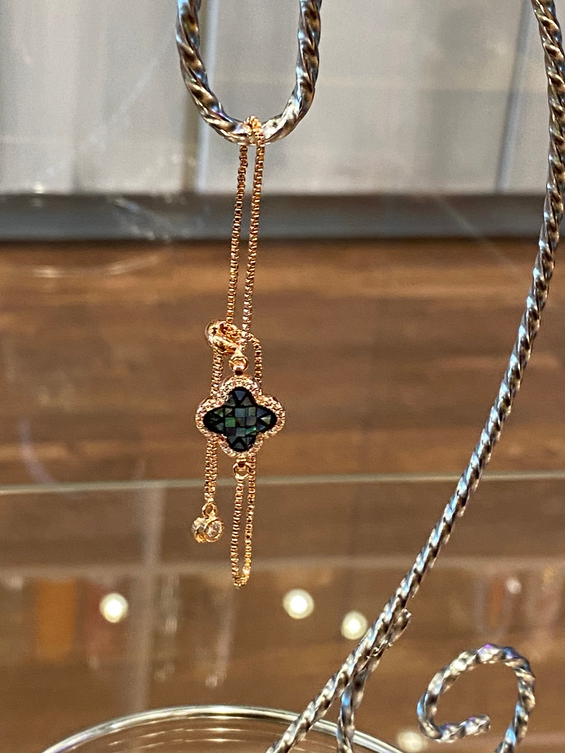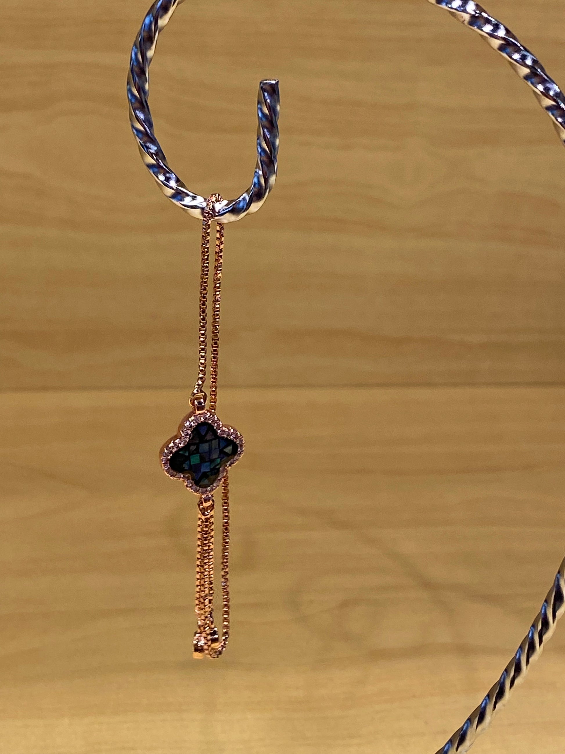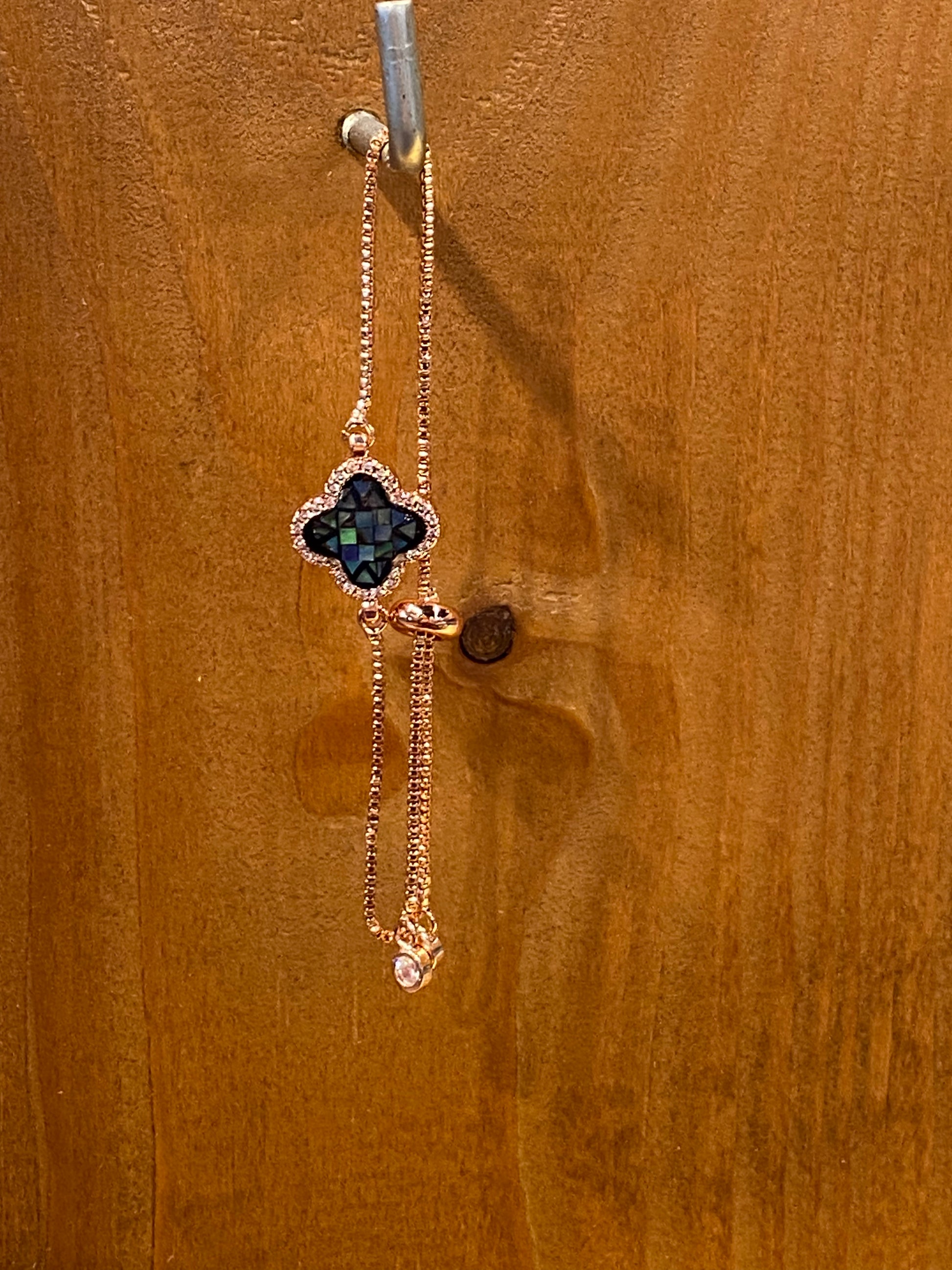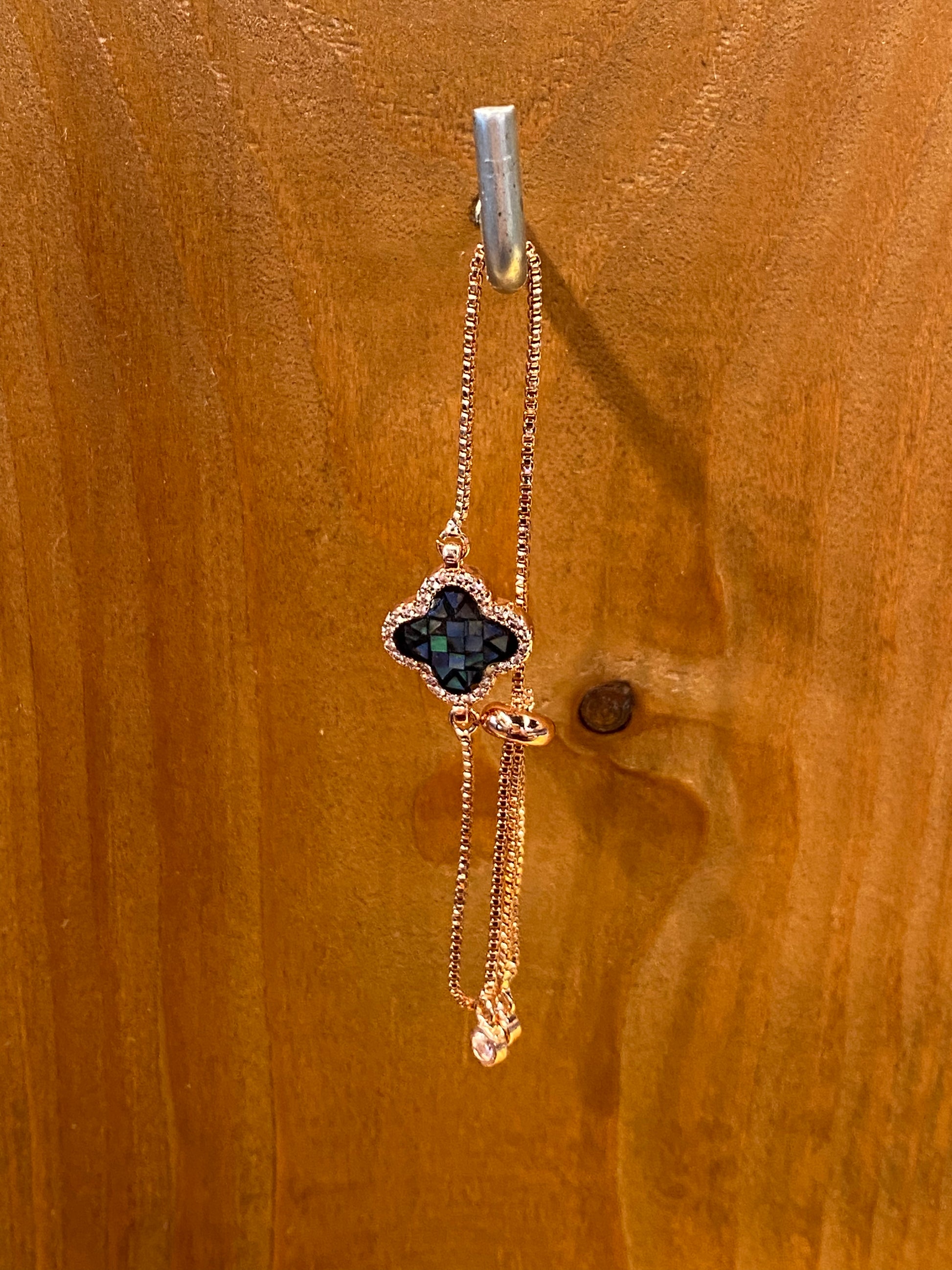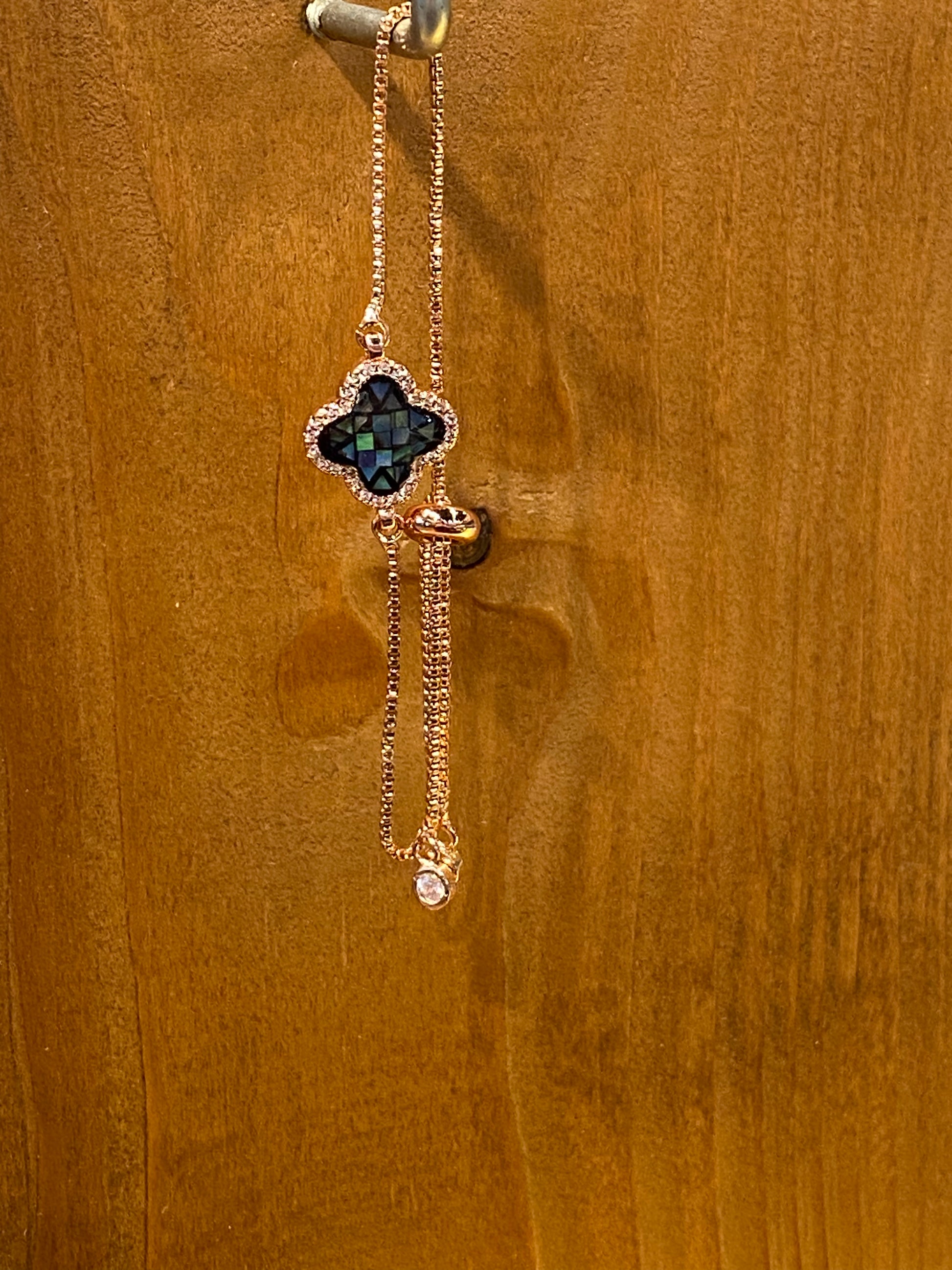 Dainty Gold Color Bracelet With Multi Color Charm Clover