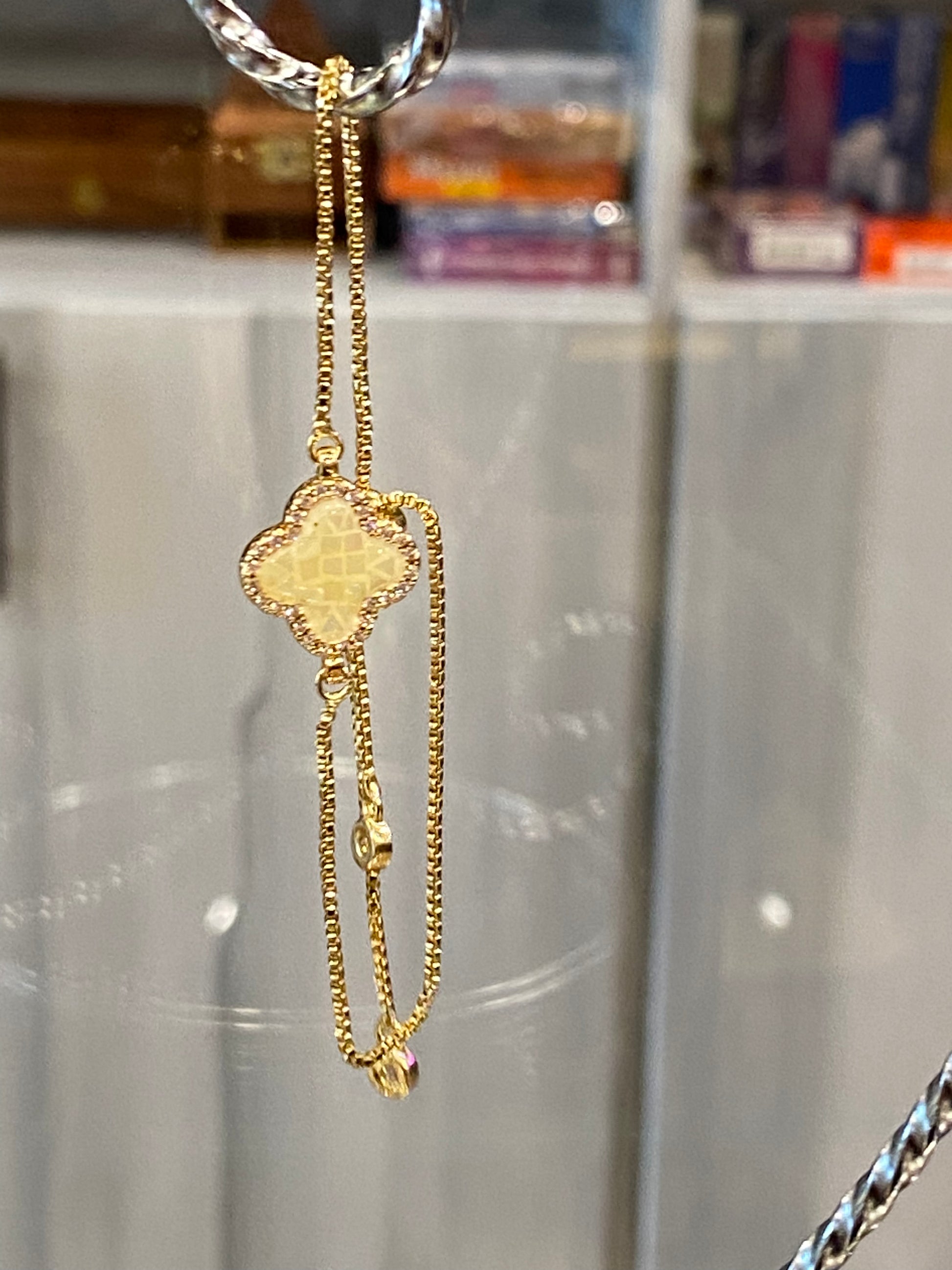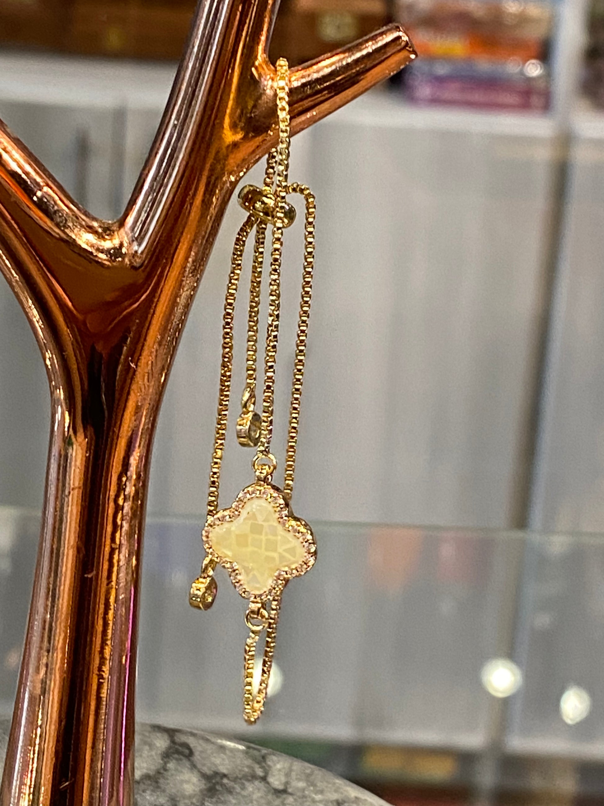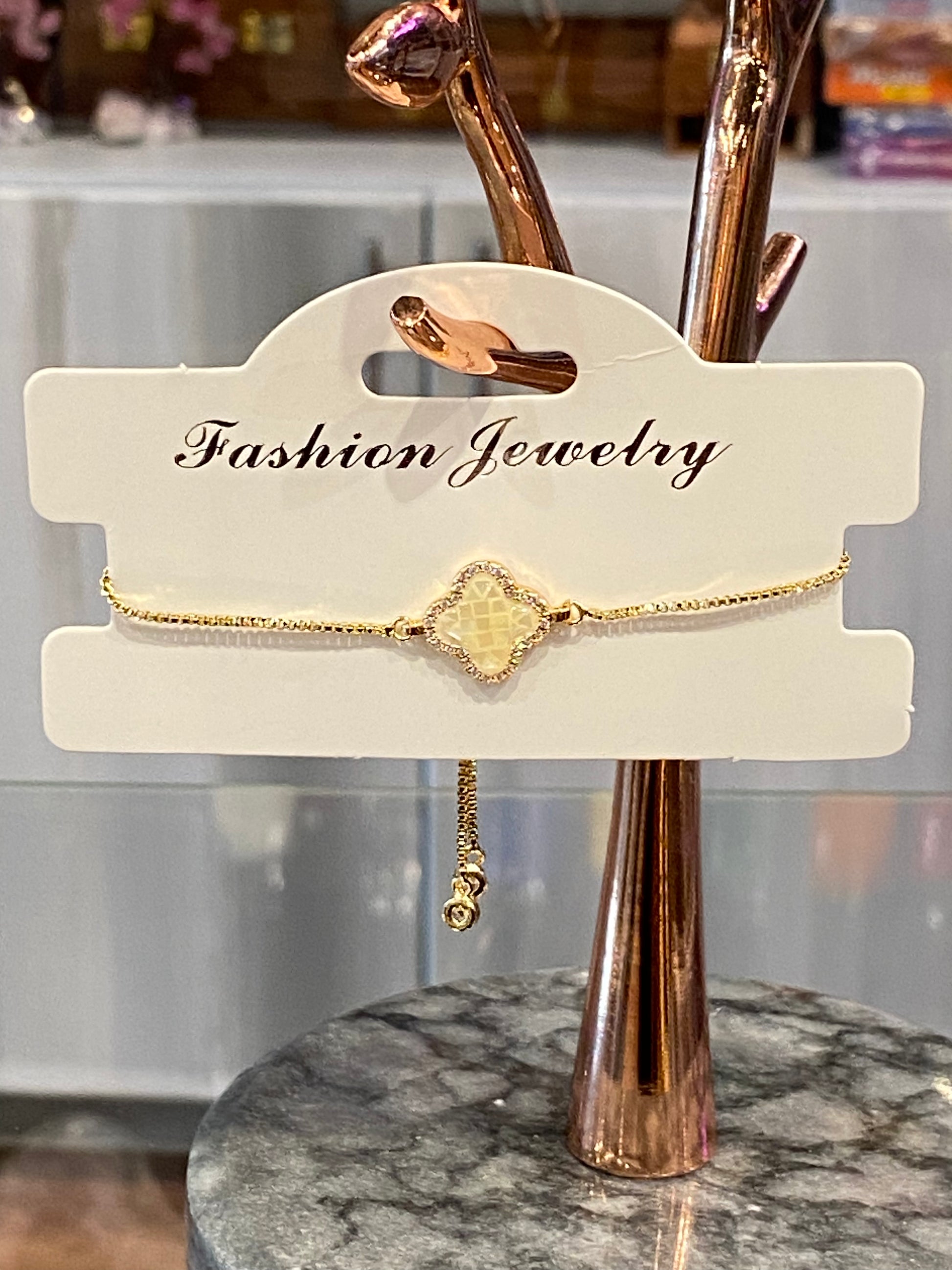 Fashion Jewelry Dainty Gold Color Clover With White Pearl Stone Bracelet