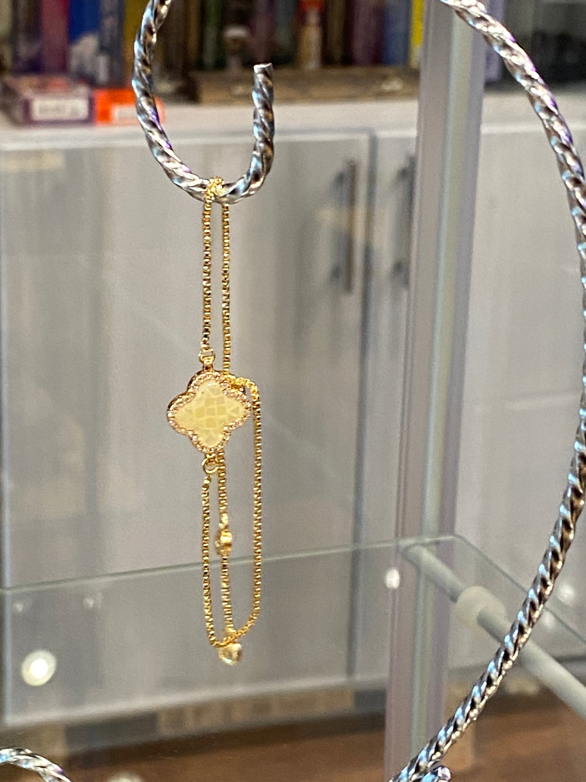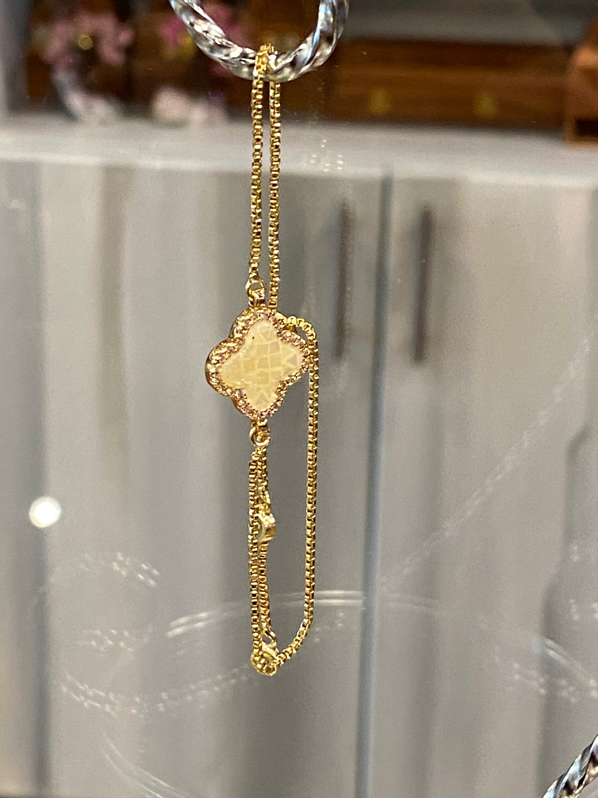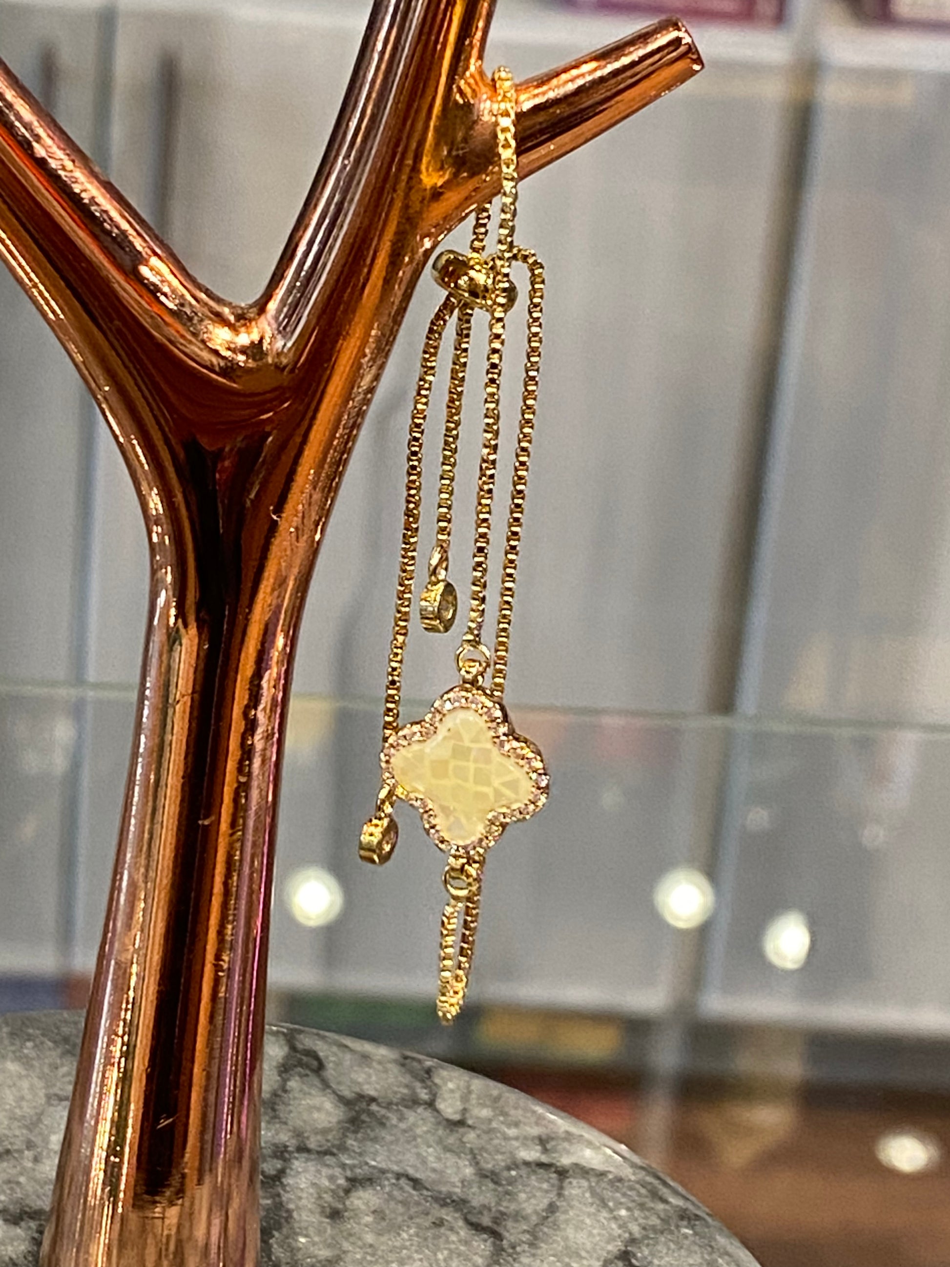 Fashion Jewelry Dainty Gold Color Clover With White Pearl Stone Bracelet