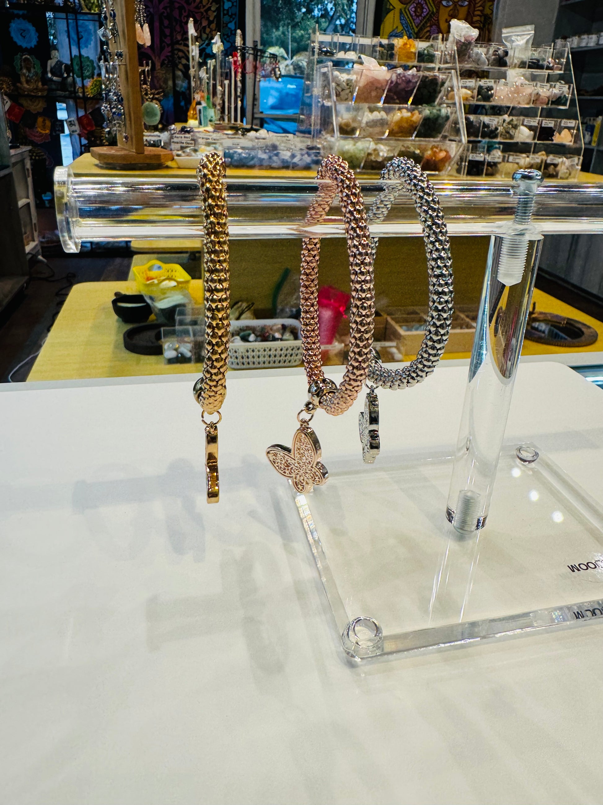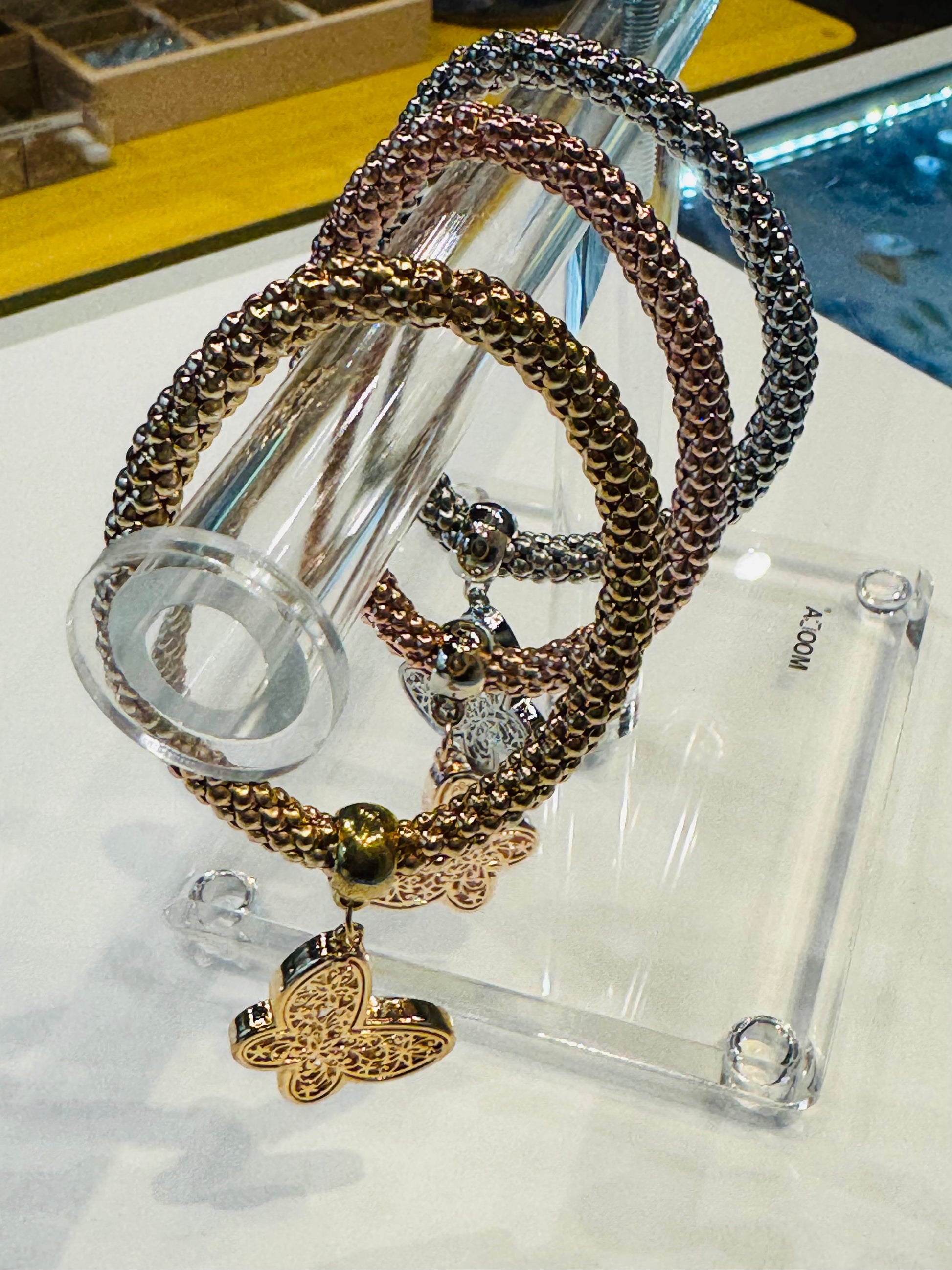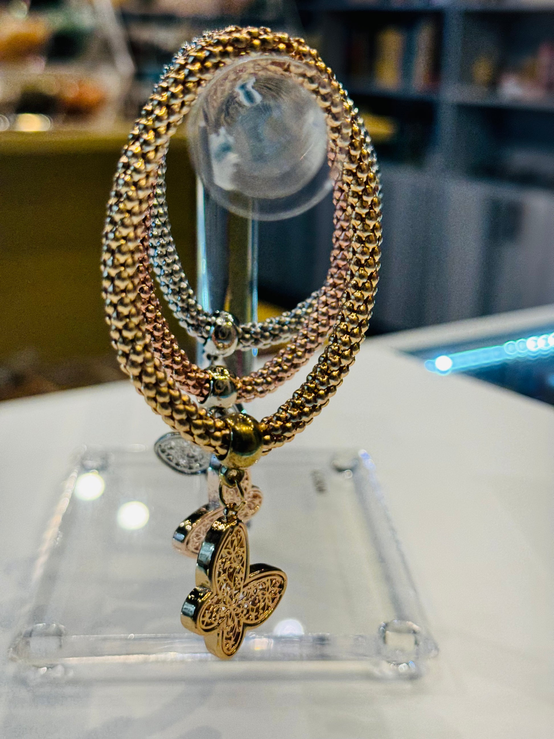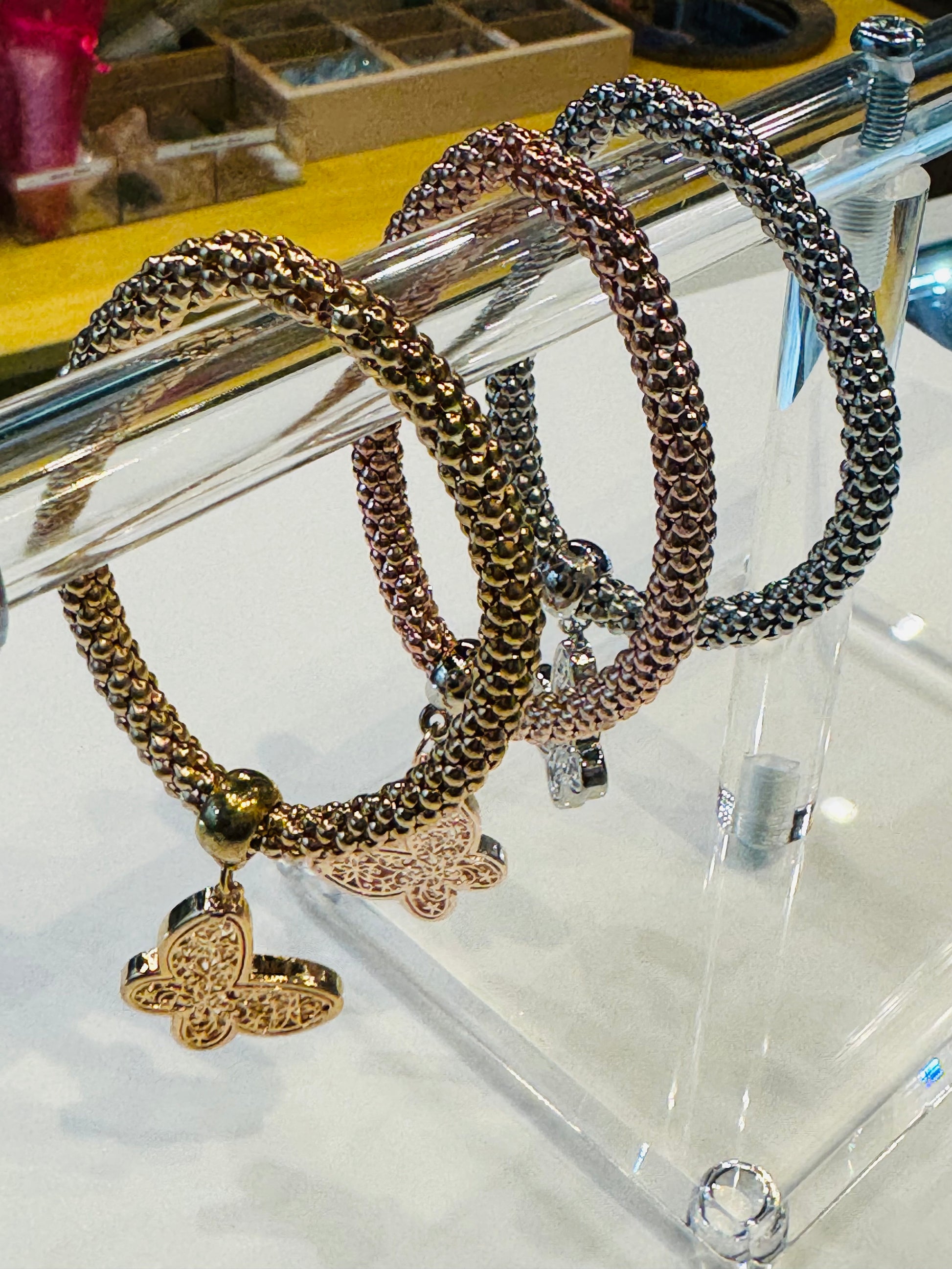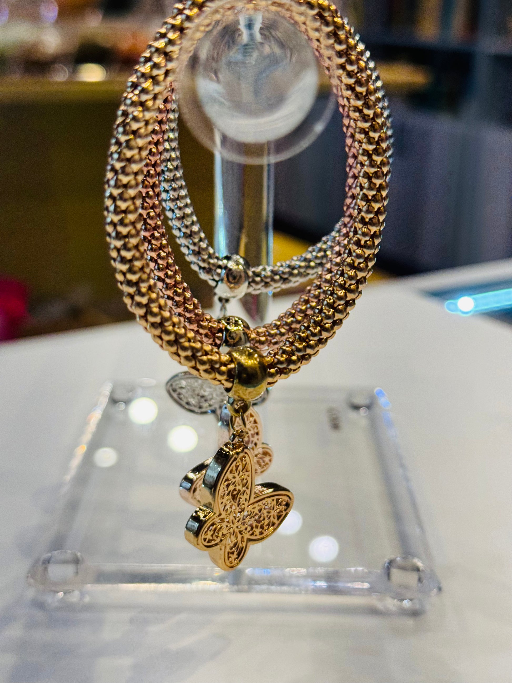 Fashion Jewelry Metal Stretch Mesh Butterfly Bracelet 3 Piece Set Gold, Rose Gold and Silver