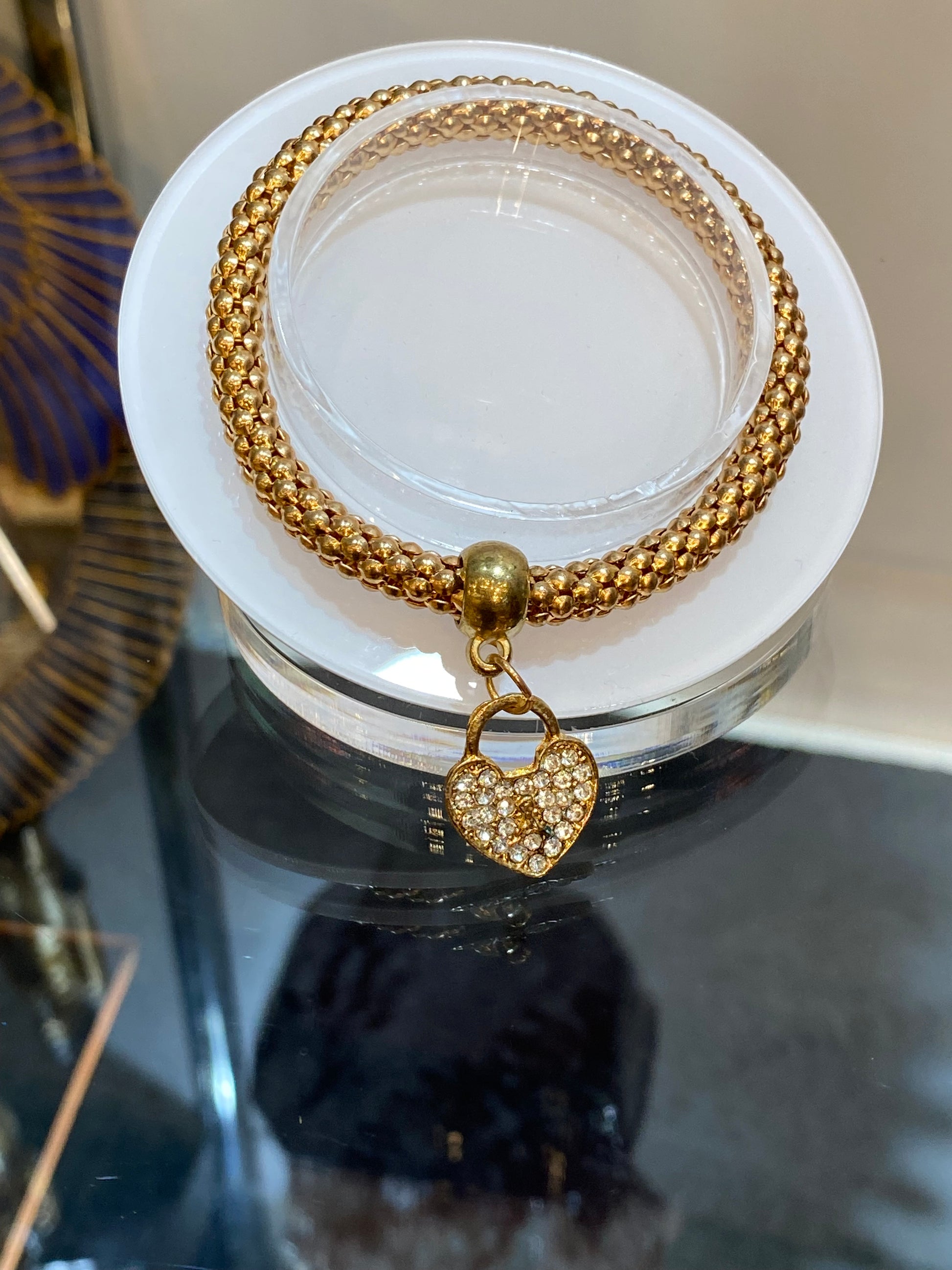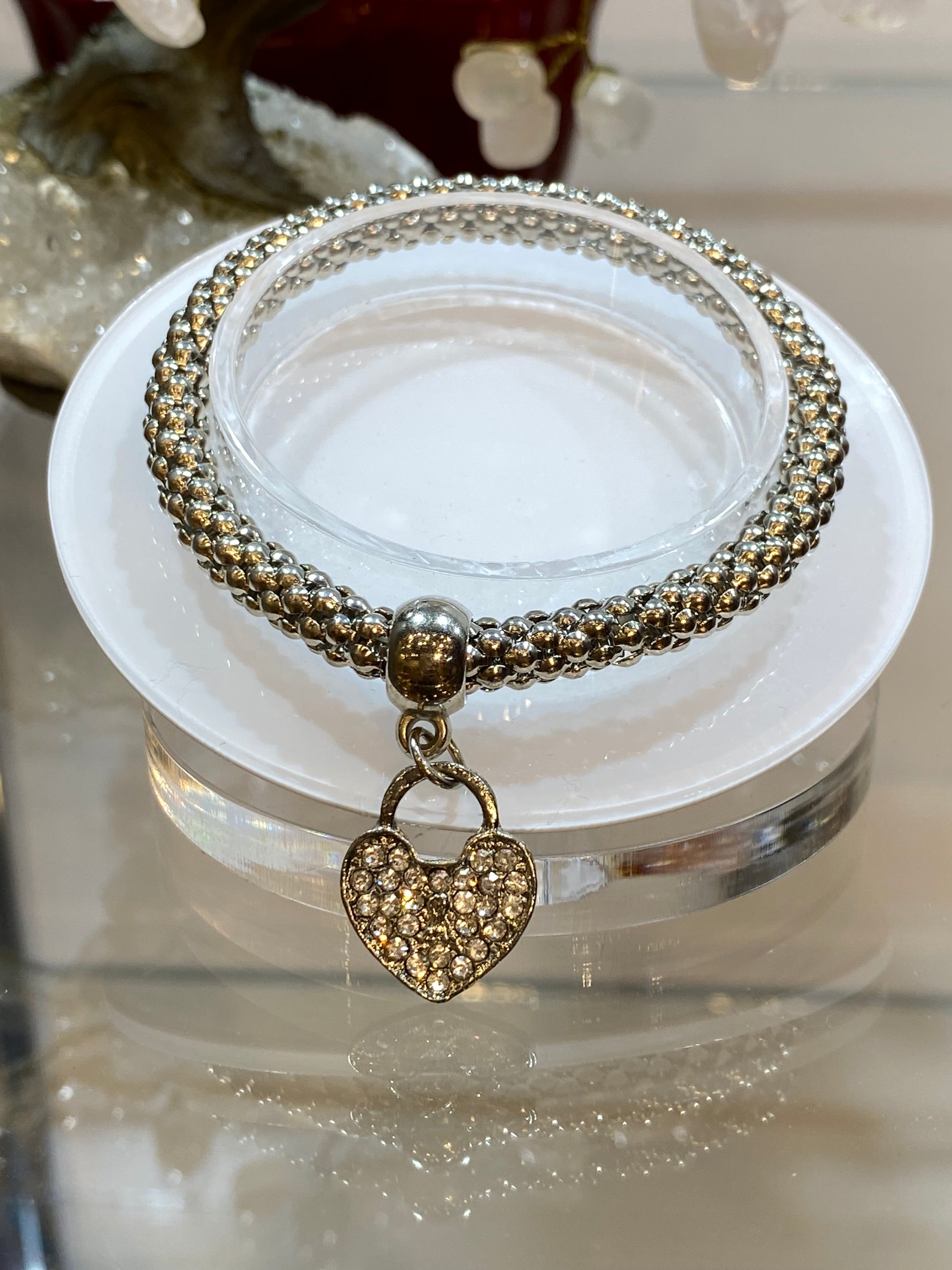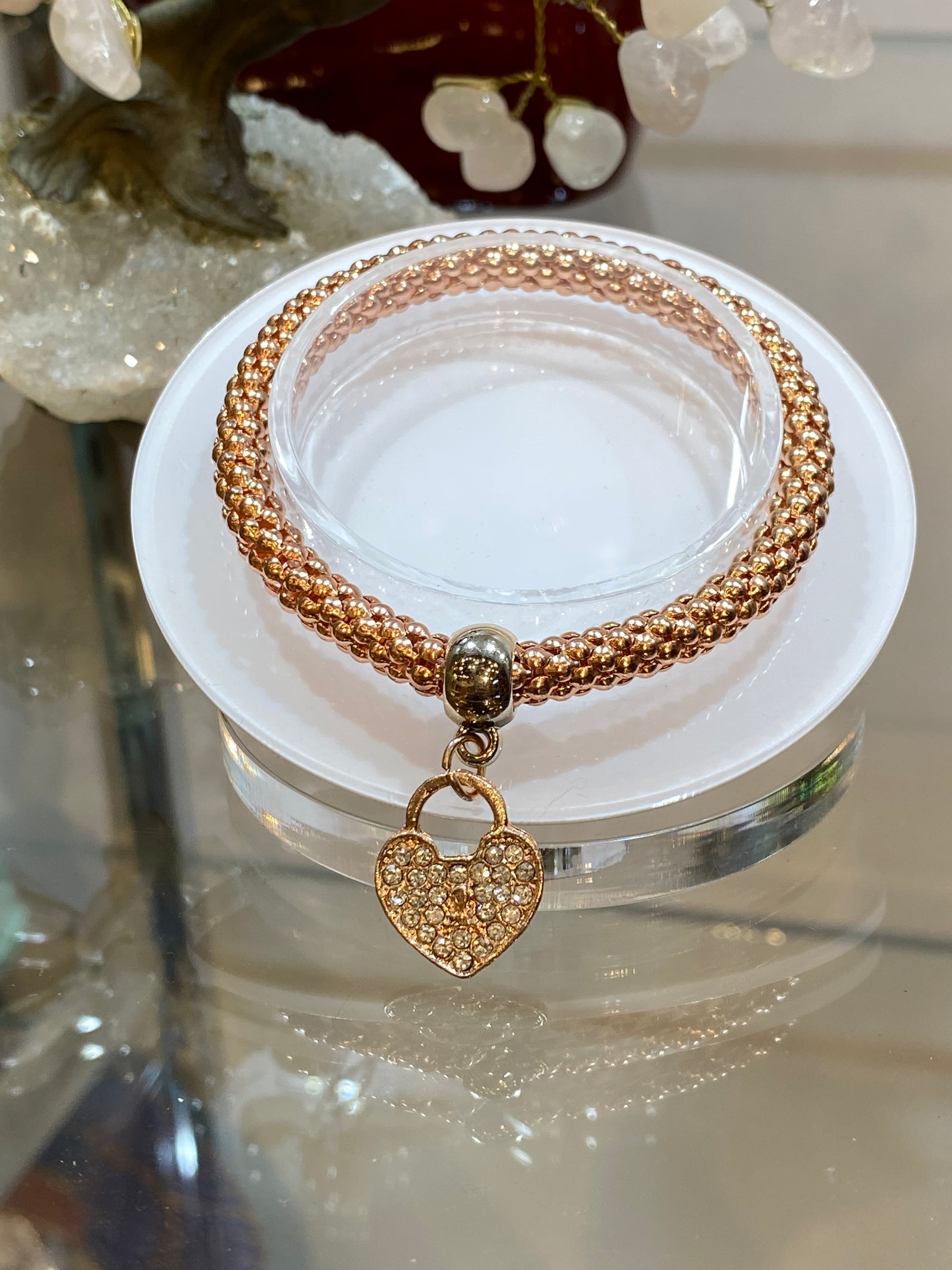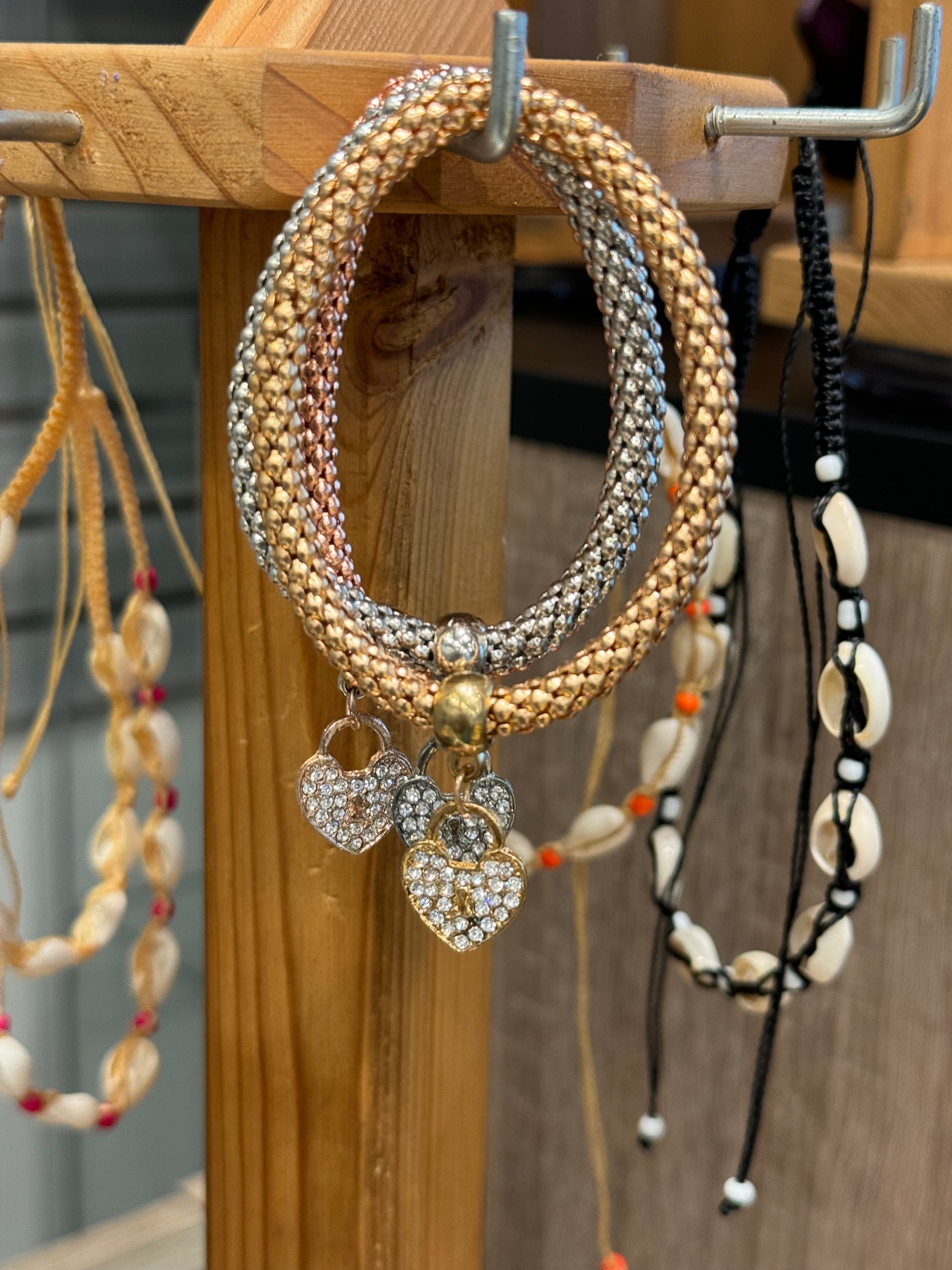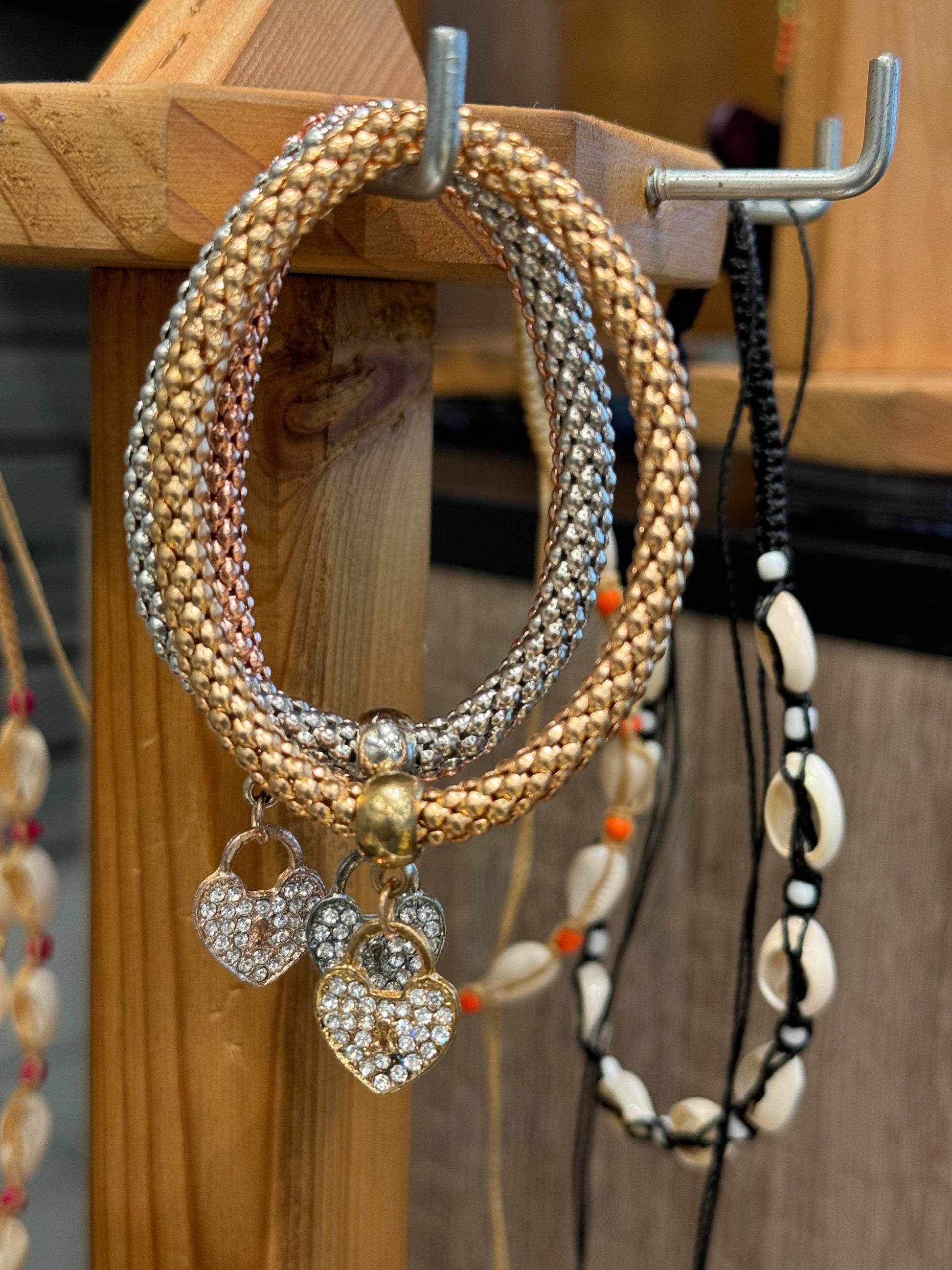 Fashion Jewelry Metal Mesh 3 Piece Heart Gold, Rose Gold & Silver Elastic Crystal Alloy Jewelry Bracelets