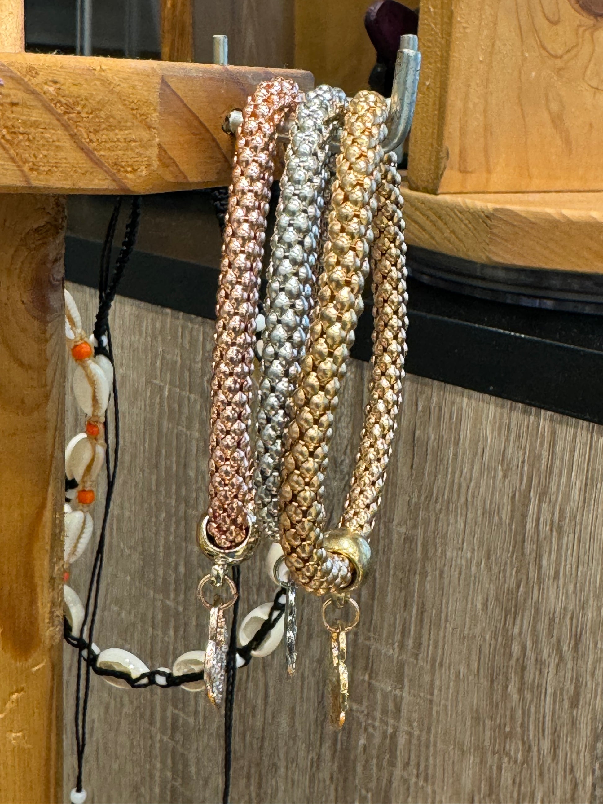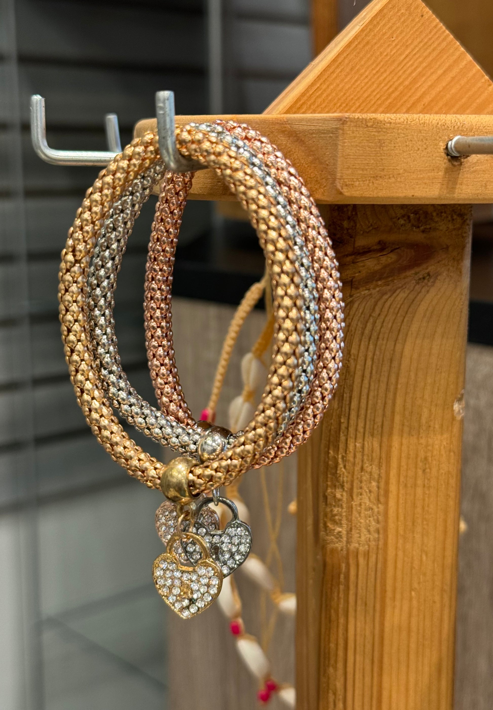 Fashion Jewelery Metal Mesh 3 Piece Heart Bracelet Gold, Rose Gold and Silver