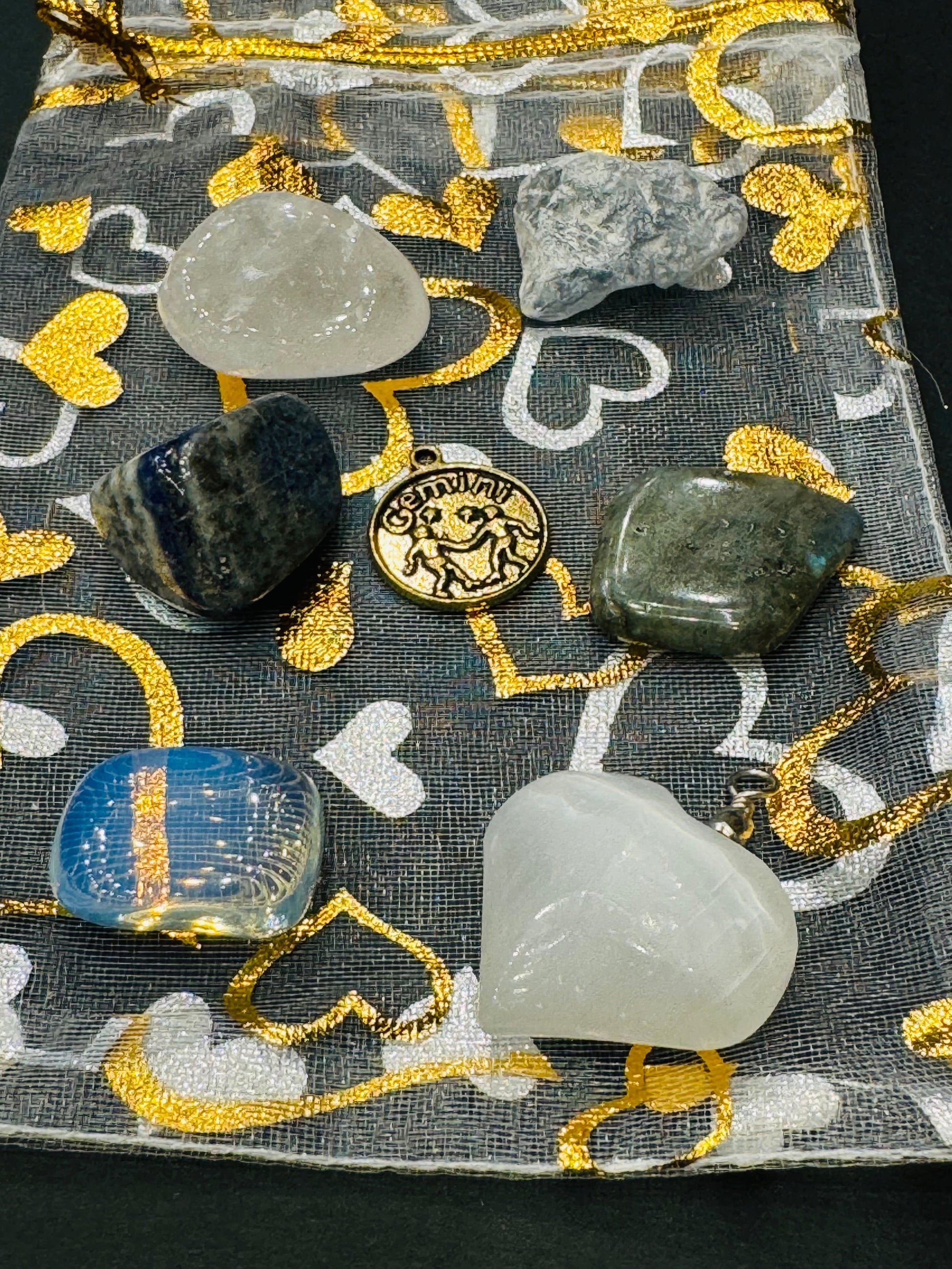 Step into your season with intention and clarity with our Gemini Bundle Kit—a curated crystal collection designed to align you with the vibrant, expressive energy of Gemini. This high-vibrational kit supports communication, intuition, and divine connection.