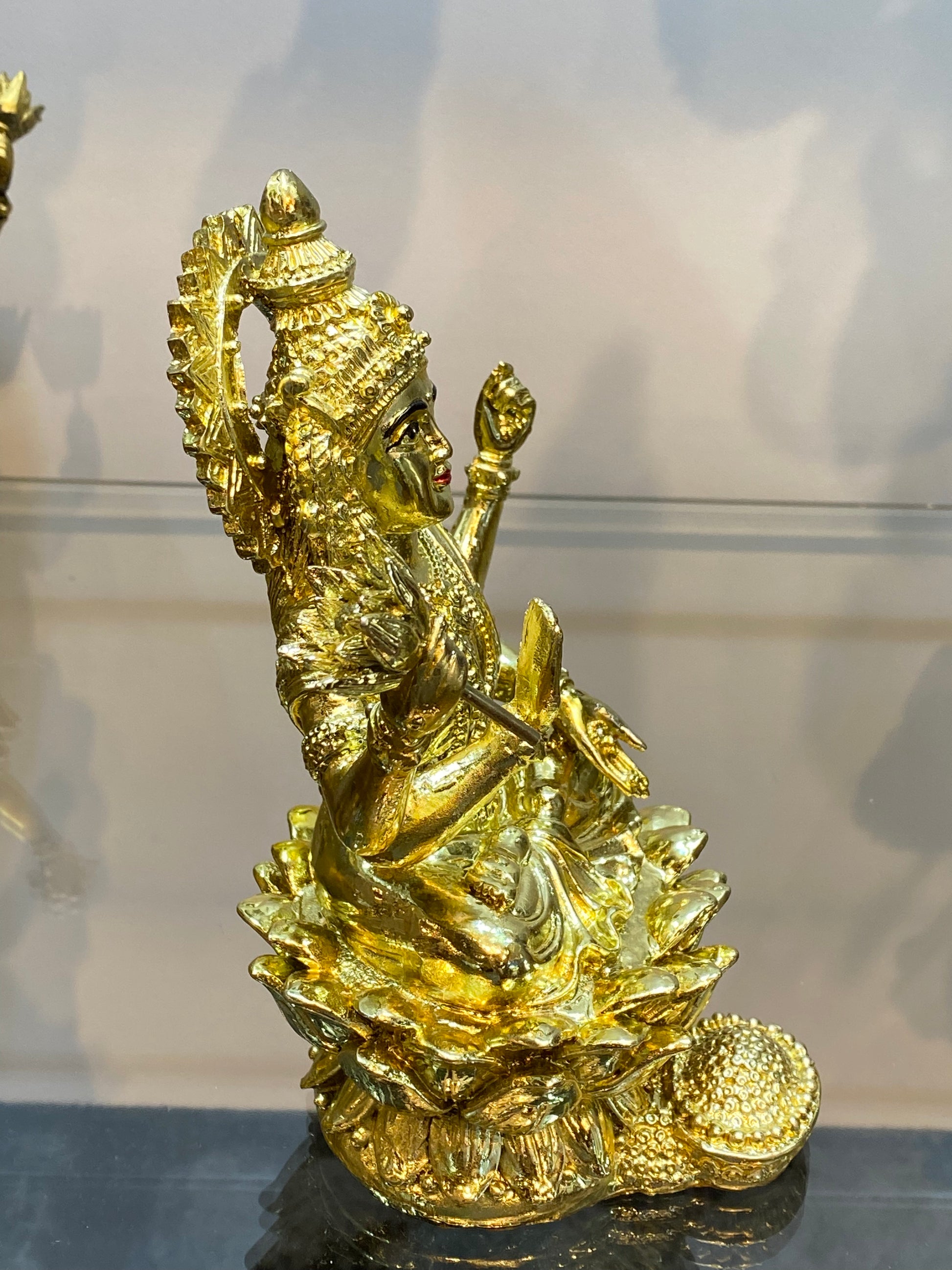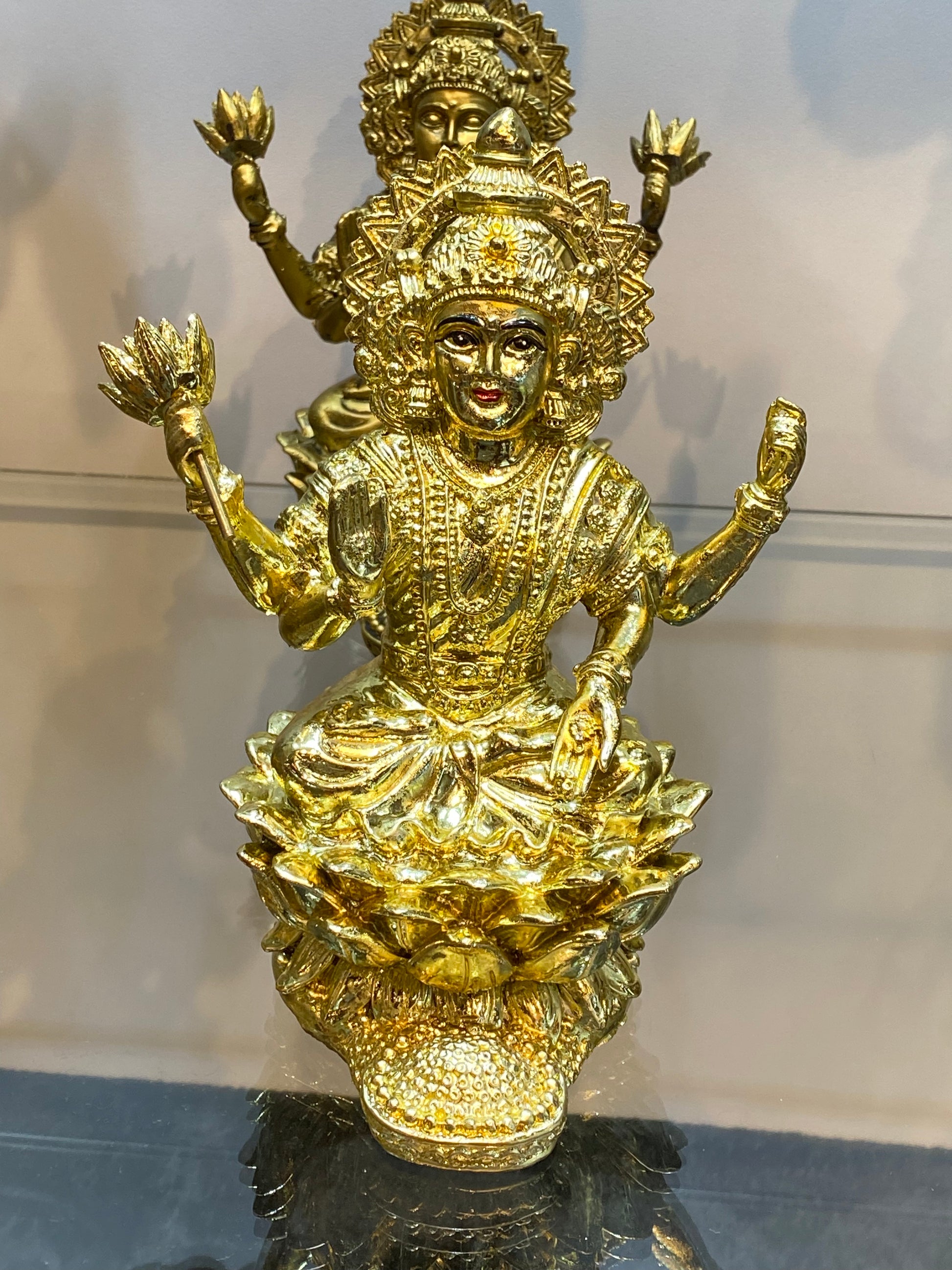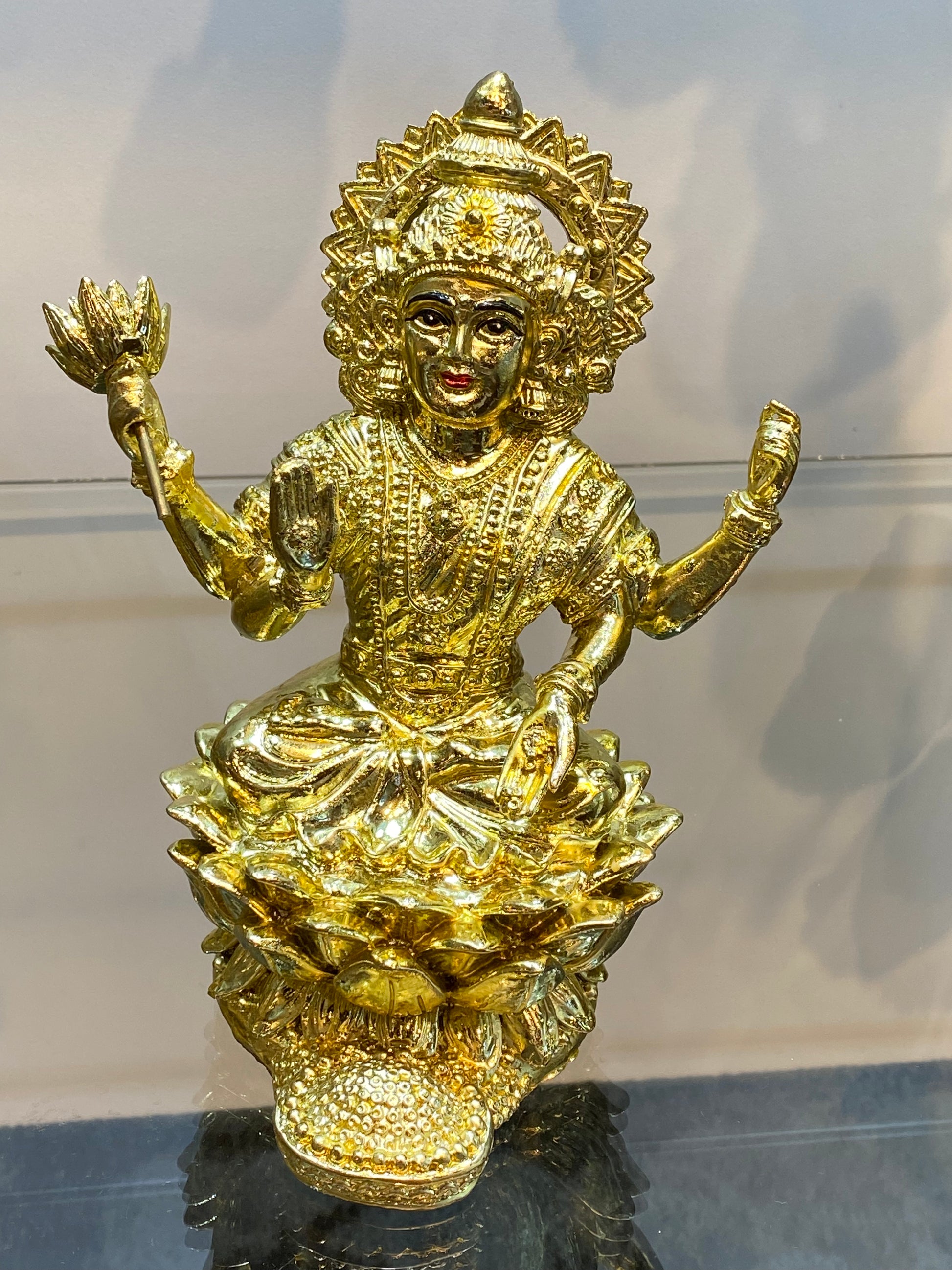 Lakshmi is the Goddess of luck, wealth and beauty to the Hindus. She is the household goddess of most Hindu families and a favorite among women.