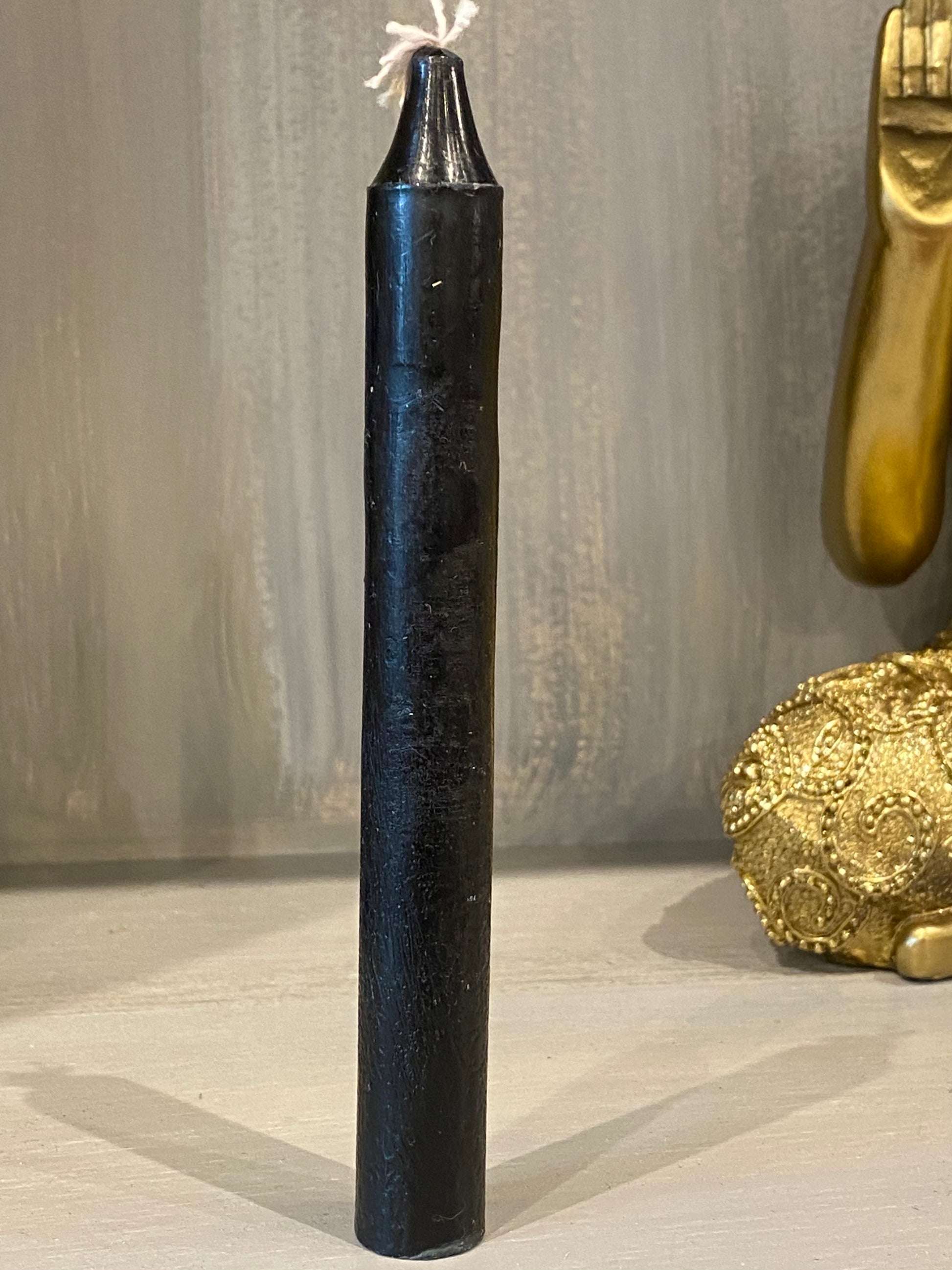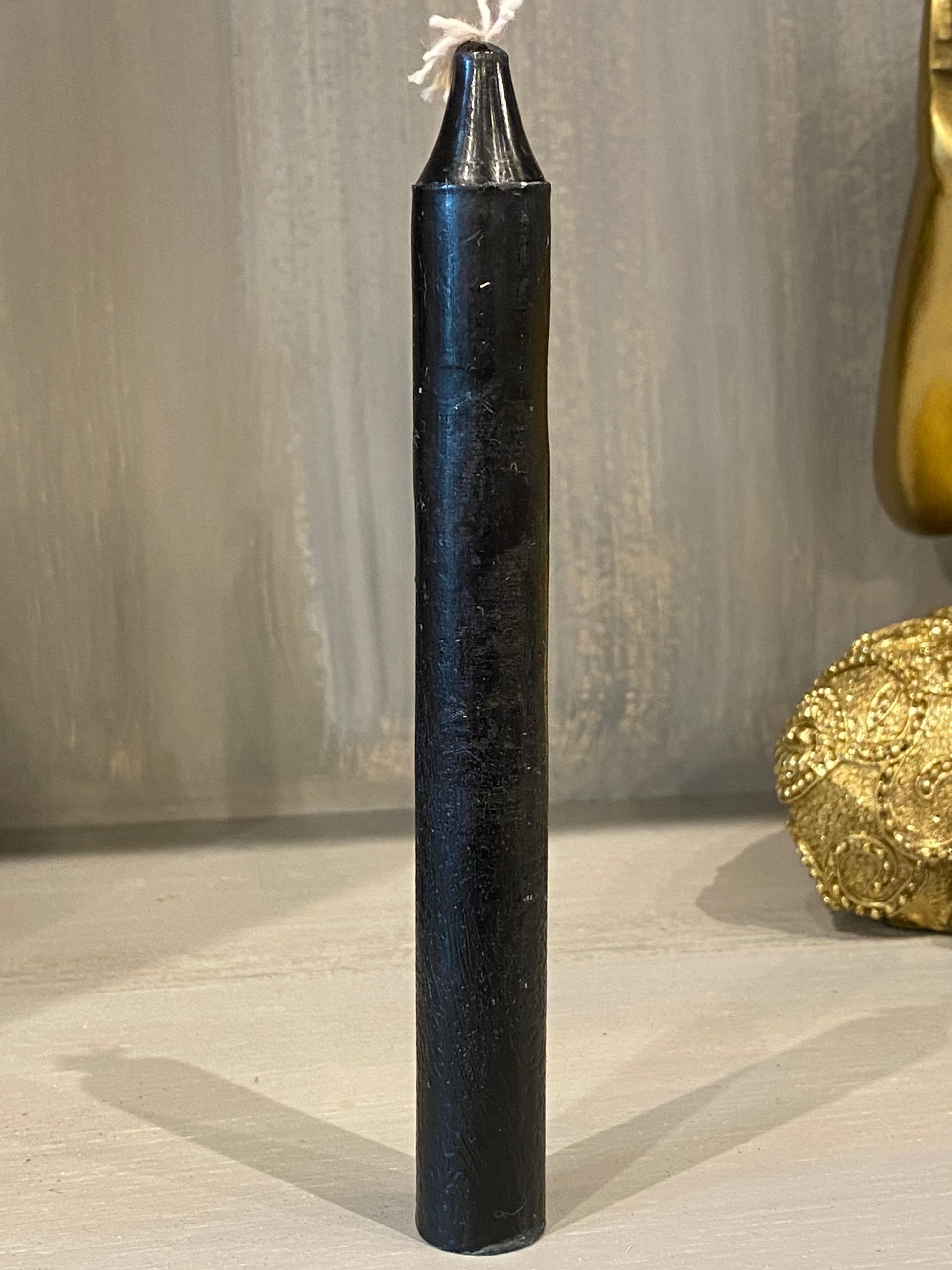 6 Inch Black Household Tapers are straight tapers that are 3/4" in diameter. Each 6 Inch Taper is solid-colored throughout.