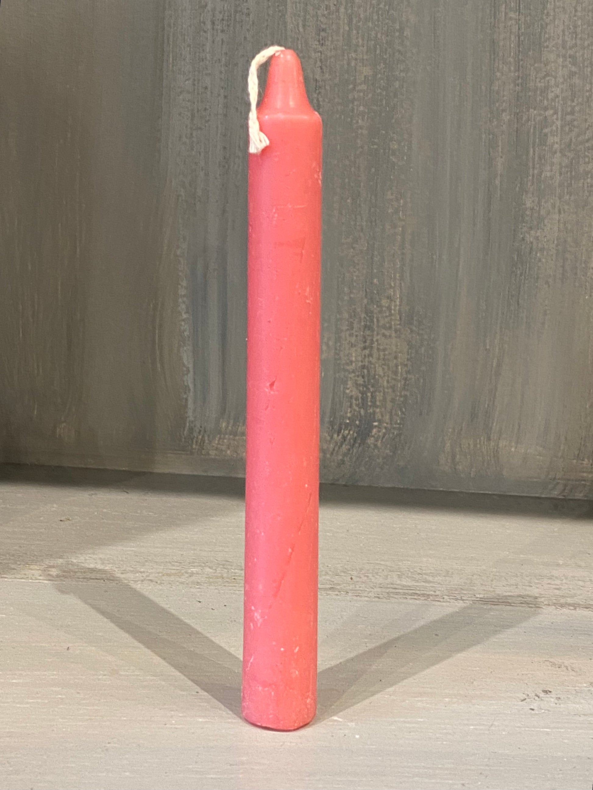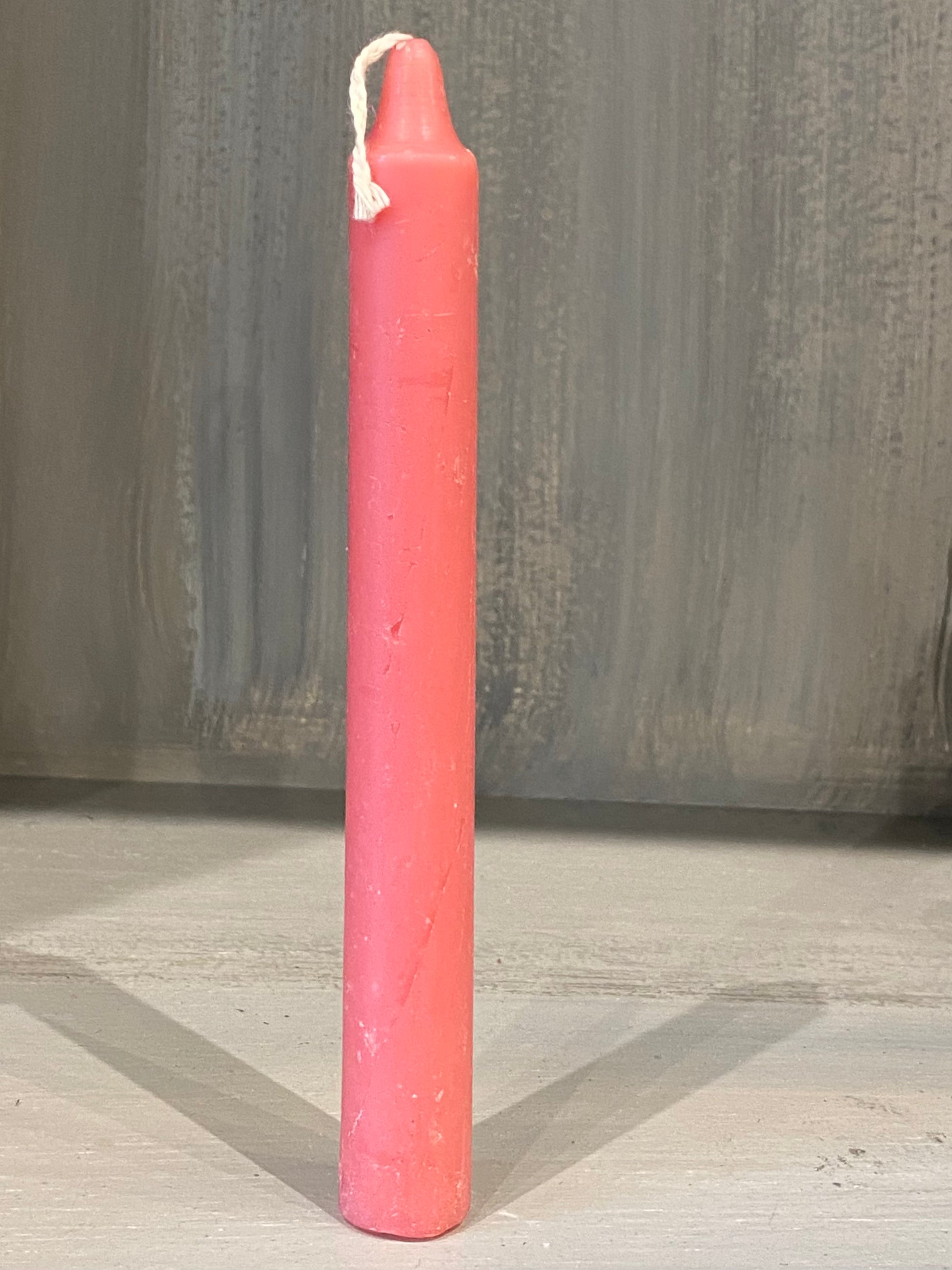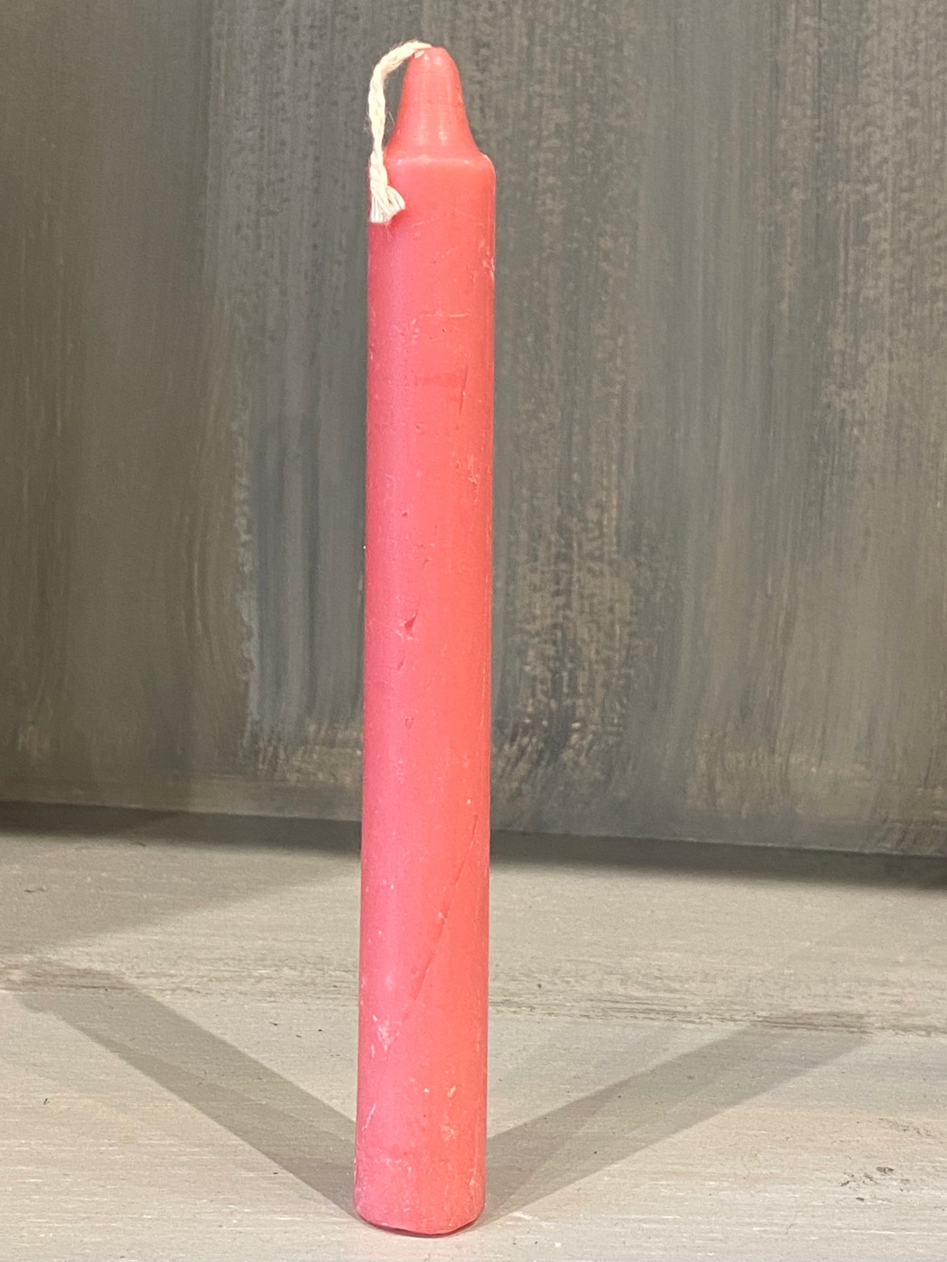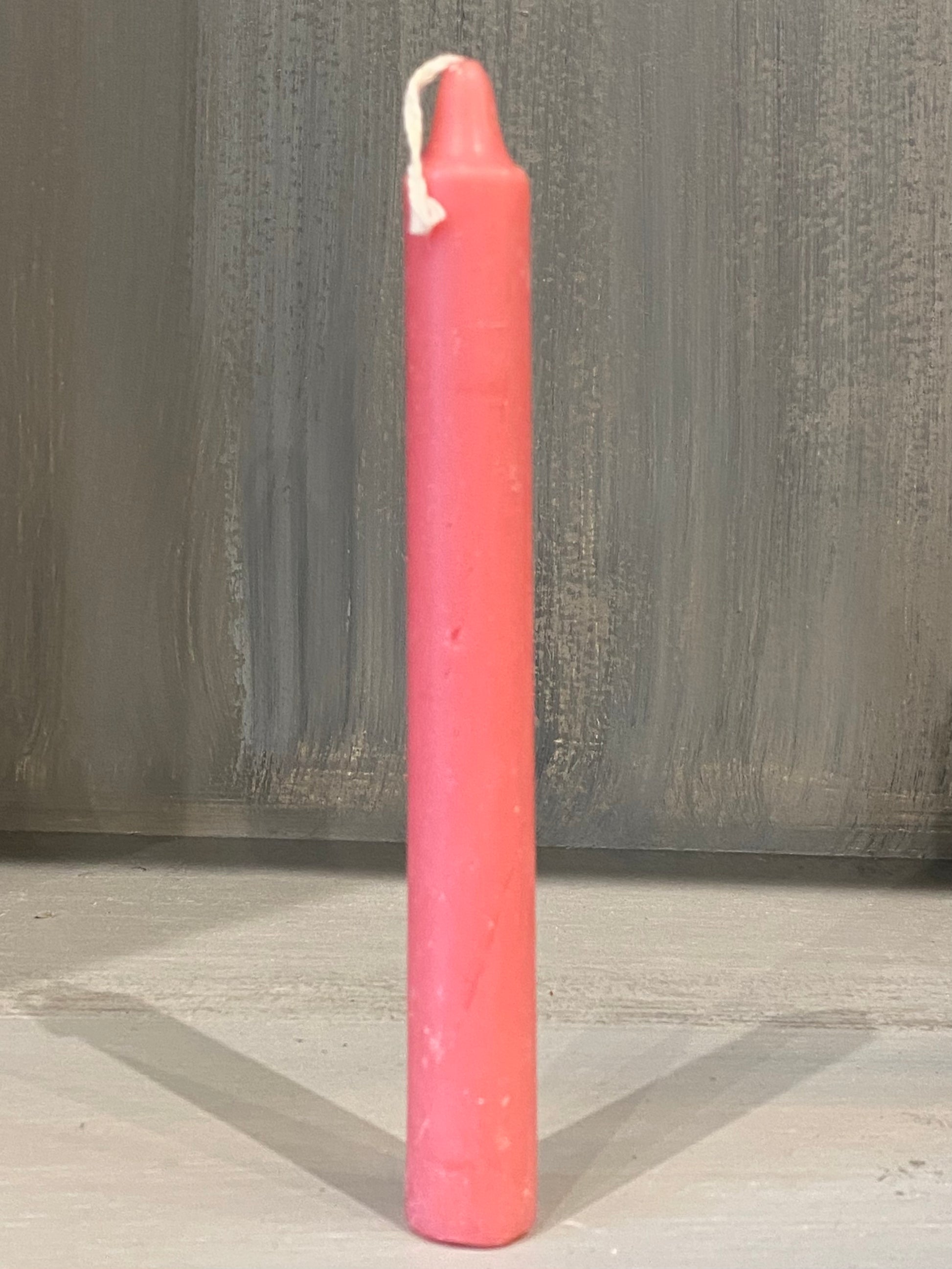Pink 6” Household Taper are straight tapers that are 3/4" in diameter. Each 6 Inch Taper solid-colored throughout.