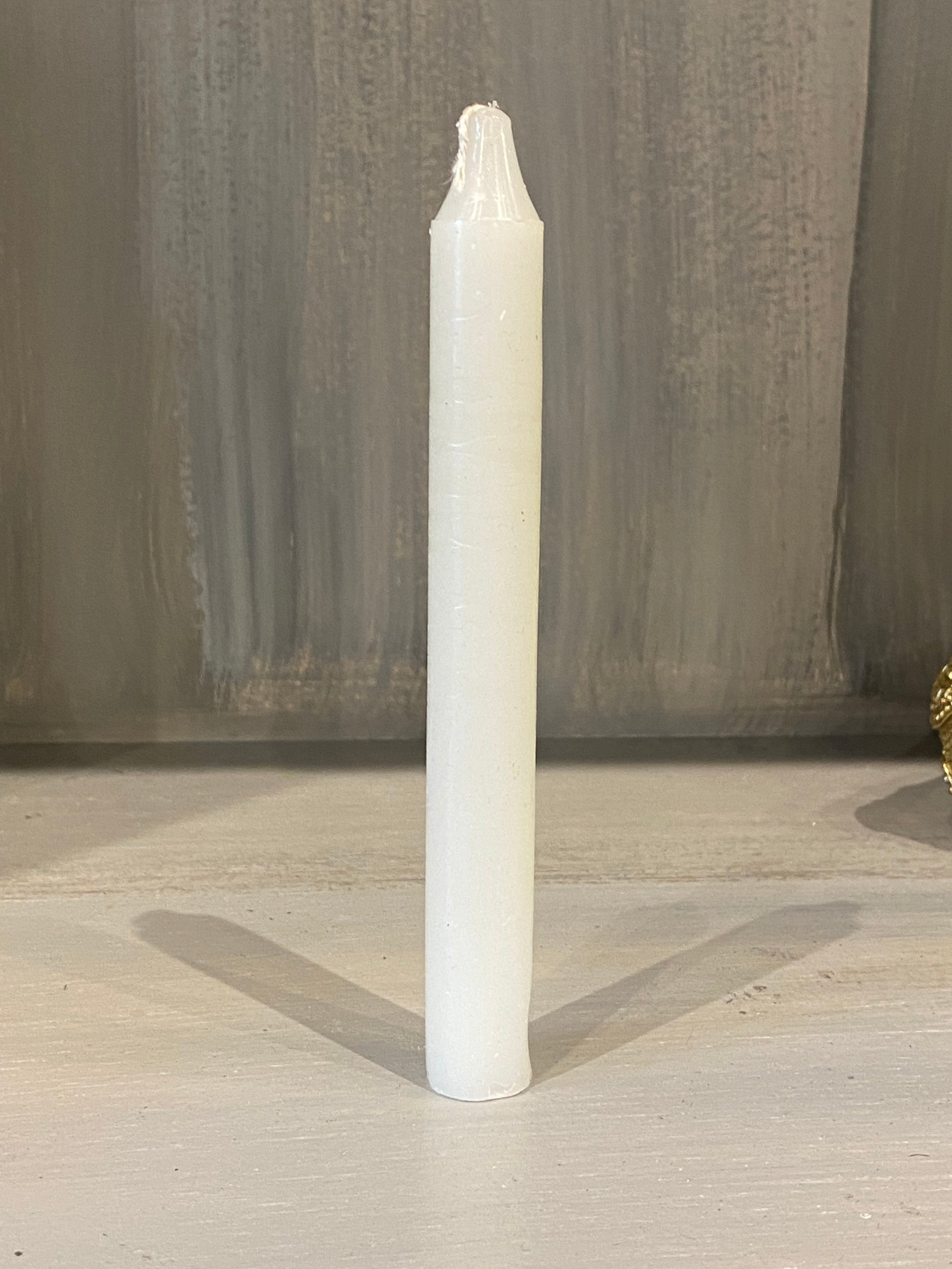 6 Inch White Household Taper Candle are straight tapers that are 3/4" in diameter. Each 6 Inch Taper is solid-colored throughout.