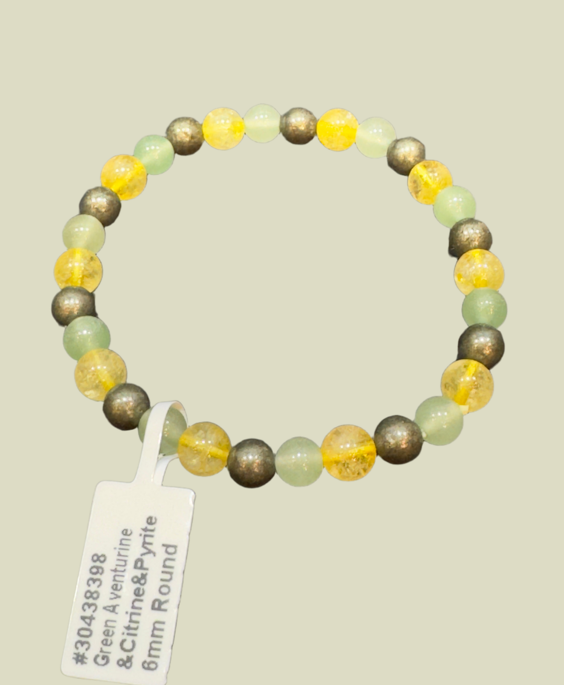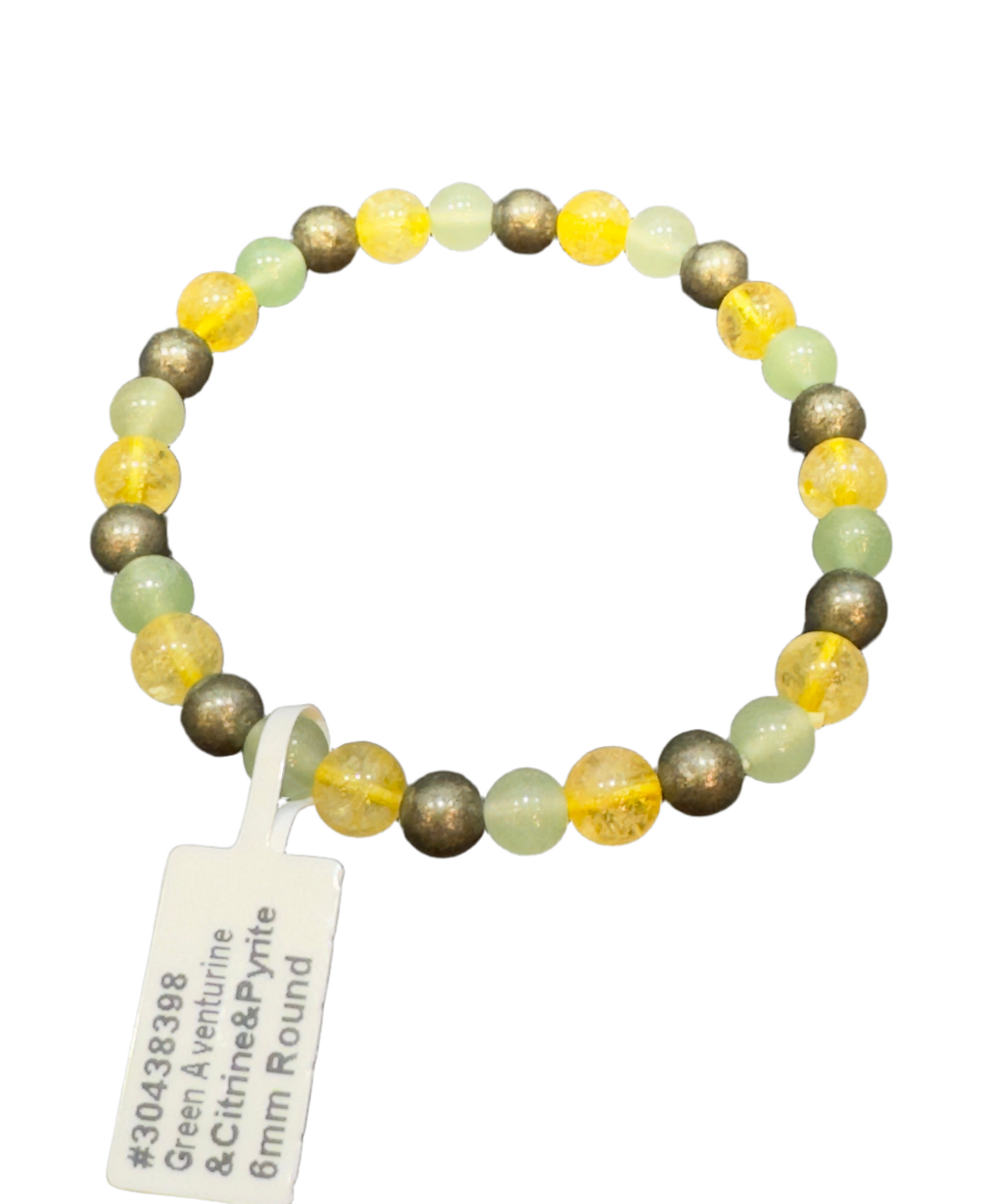 Green Aventurine, Citrine and Pyrite Beaded Bracelet