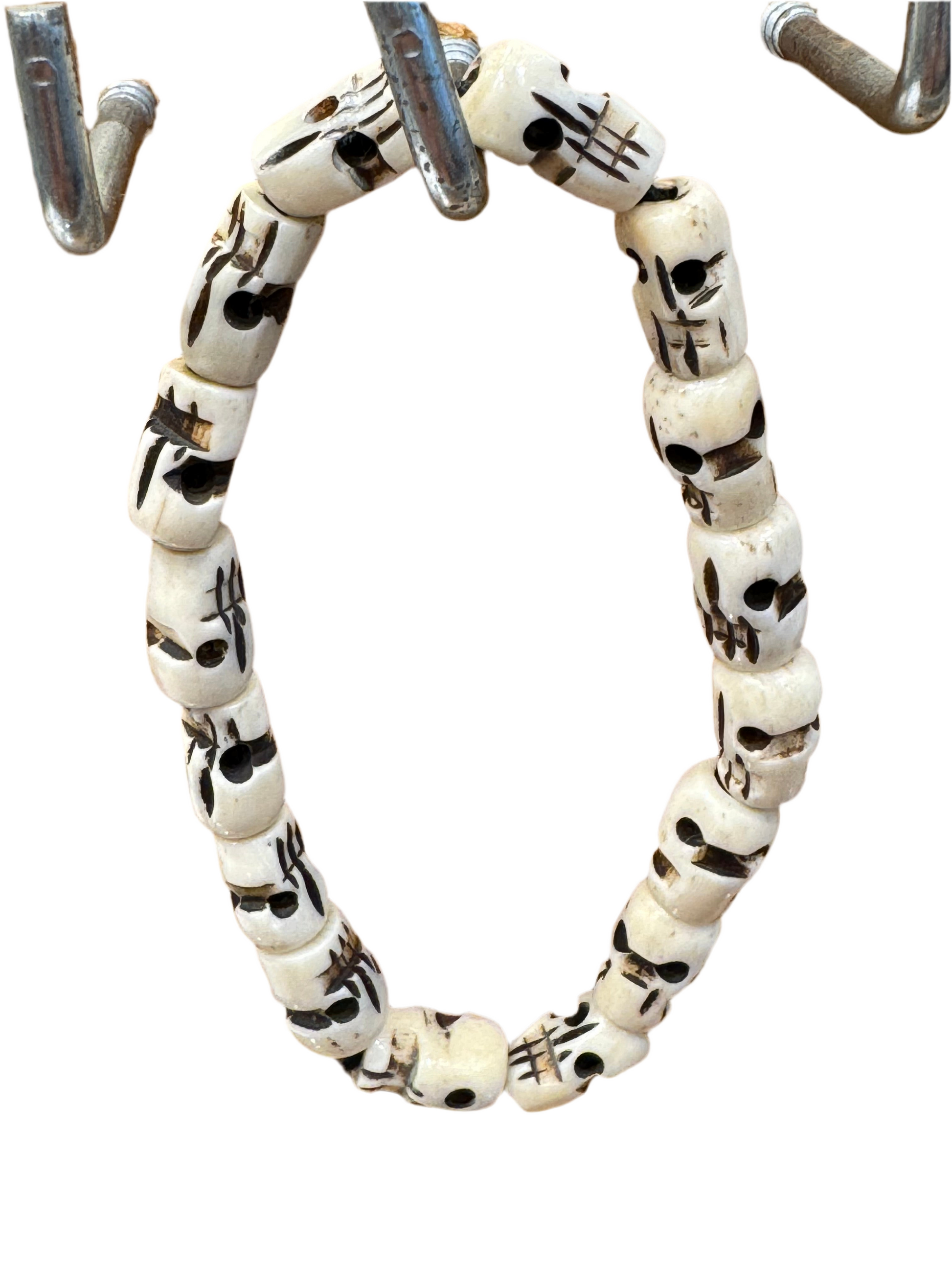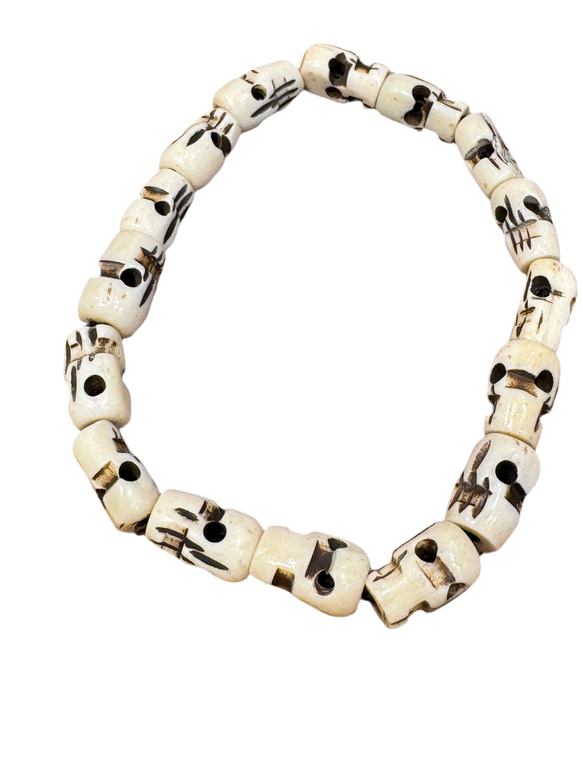 Discover the artistry of our hand-carved skull-beaded bracelets, crafted from water buffalo bone. These unique pieces symbolize strength and endurance, reflecting the resilience of life in harsh mountain environments. Skilled artisans in Nepal meticulously transform every part of the water buffalo, honoring cultural heritage while minimizing waste. This sustainable practice not only supports local craftspeople but also preserves traditional skills passed down through generations. Embrace a piece of history and wear a story of strength with our handcrafted skull bracelets!