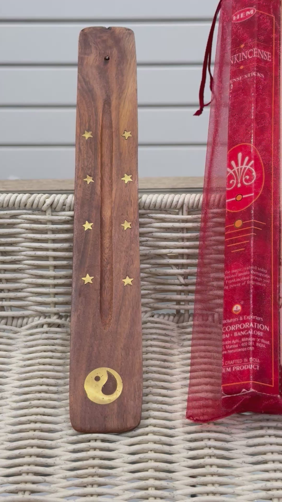 The Healing Harmony Incense Kit is perfect for self-care rituals, relaxation after a long day, or creating a peaceful atmosphere for meditation or reflection. Paired with a handmade wooden incense holder, adorned with brass golden inlay and an intricate Yin/Yang with stars design, this kit is both functional and beautiful.
