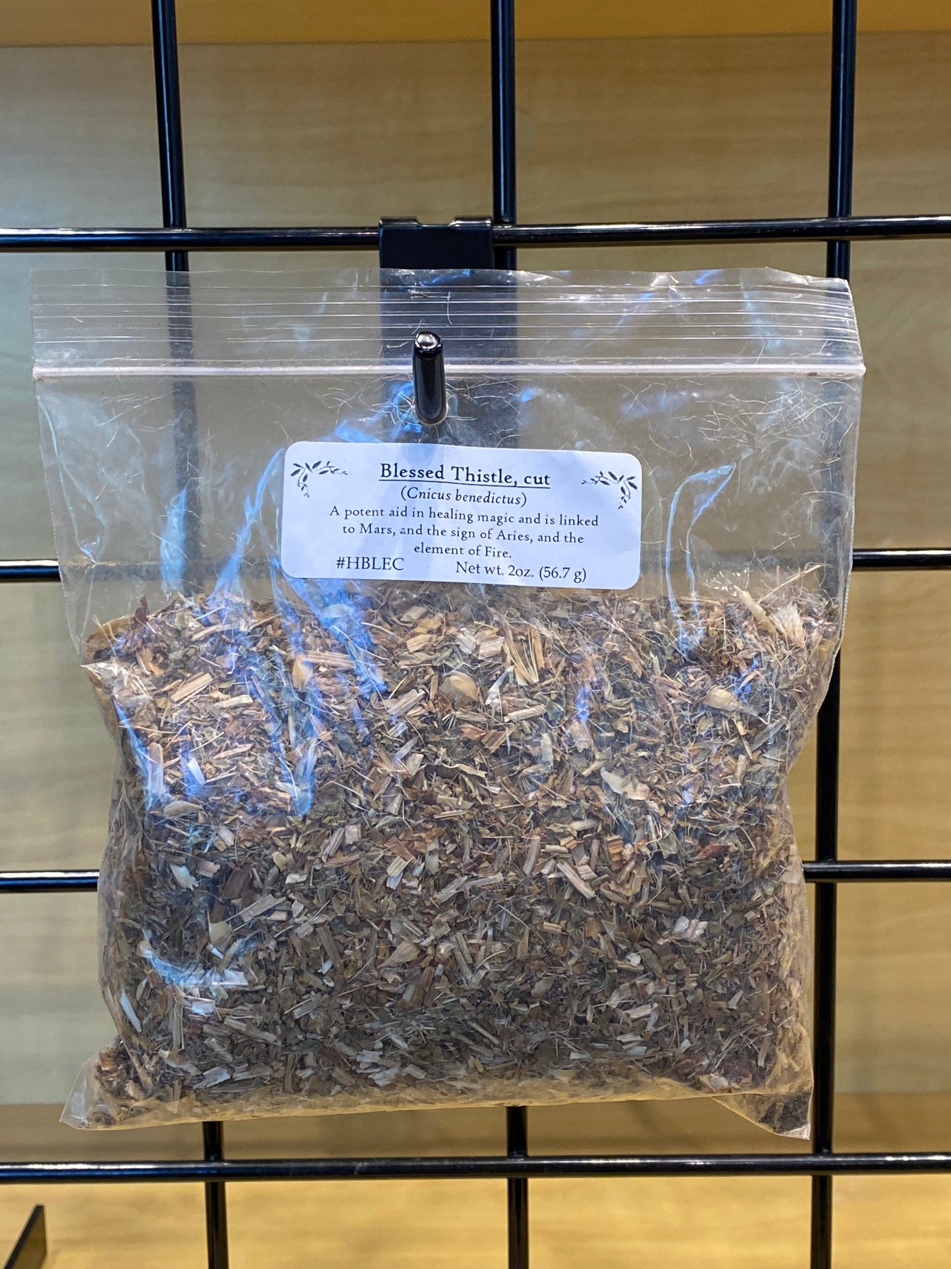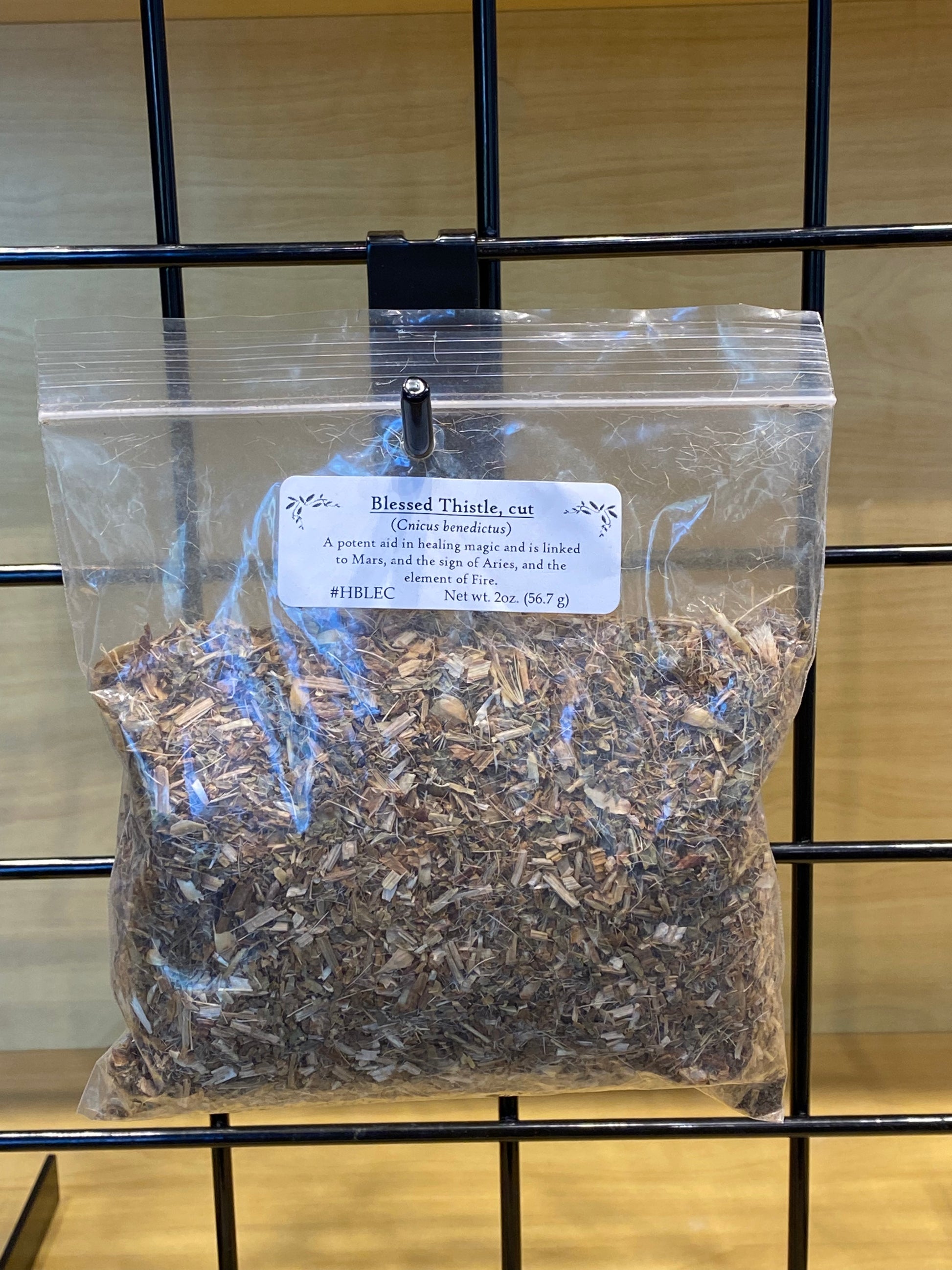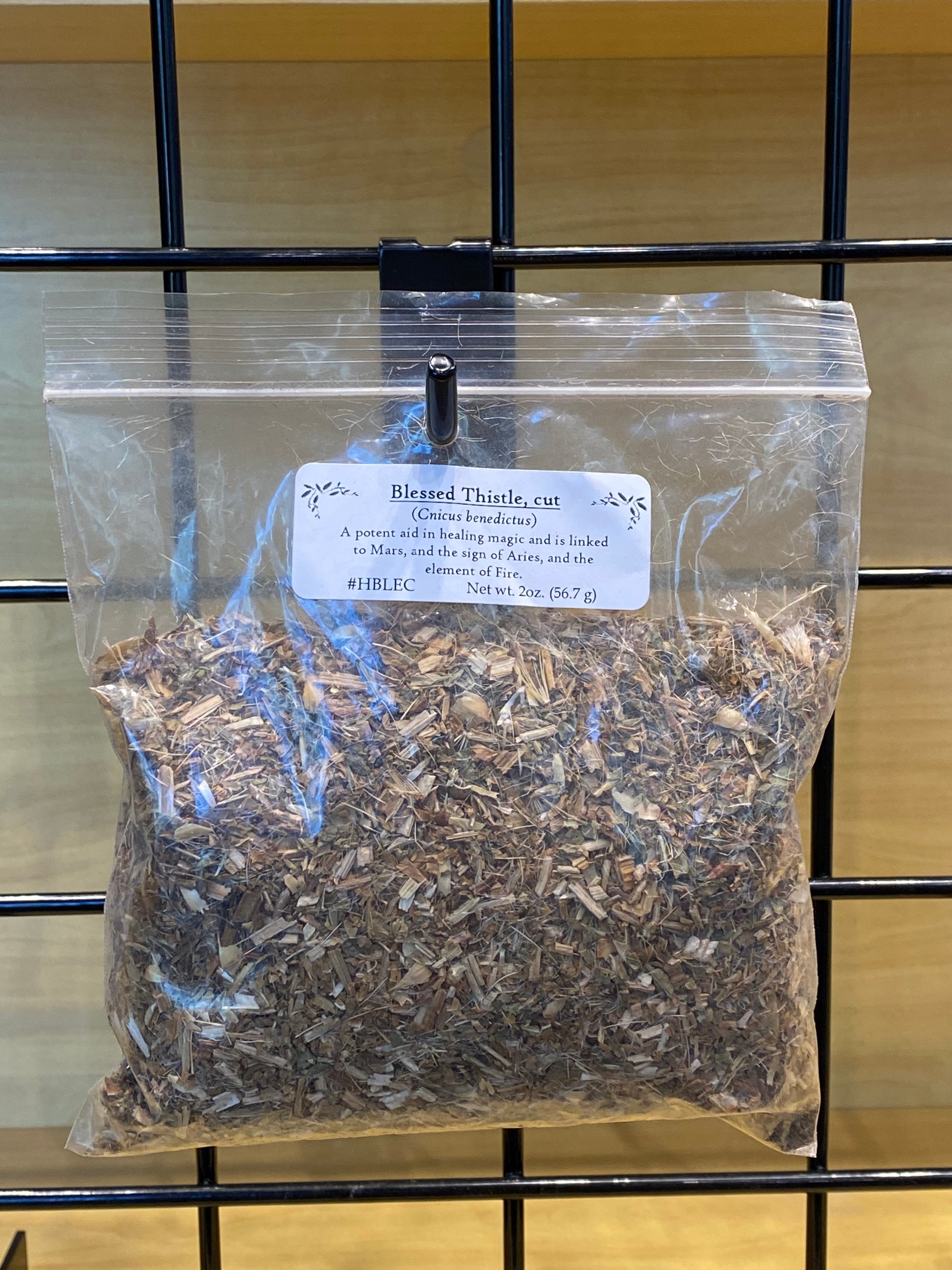 Blessed Thistle cut - A potent aid in healing magic and is linked to Mars, the sign of Aries, and the element of fire.