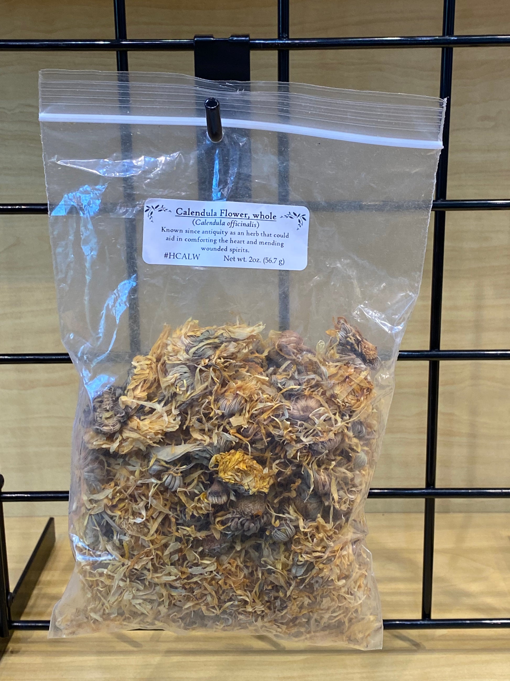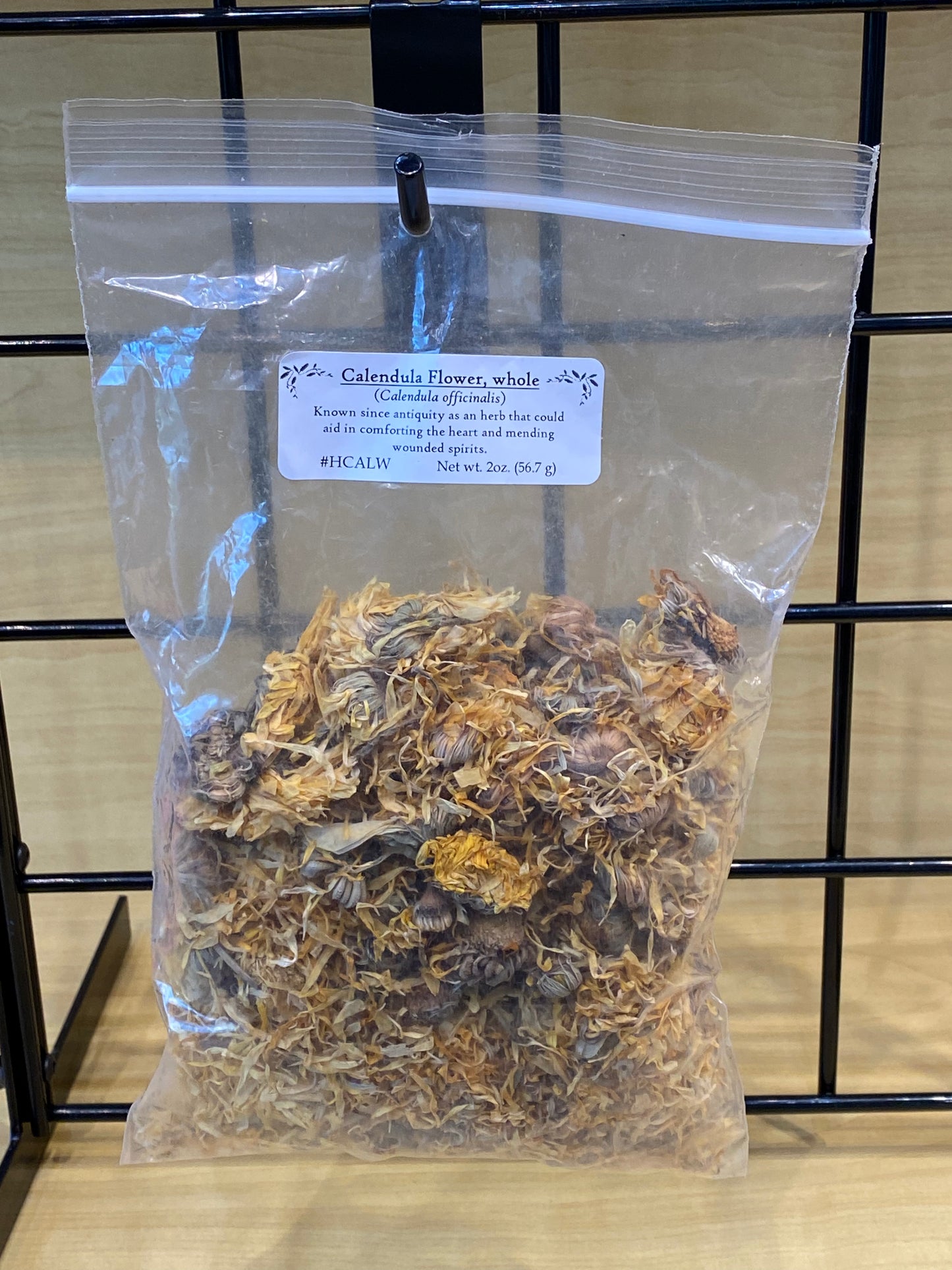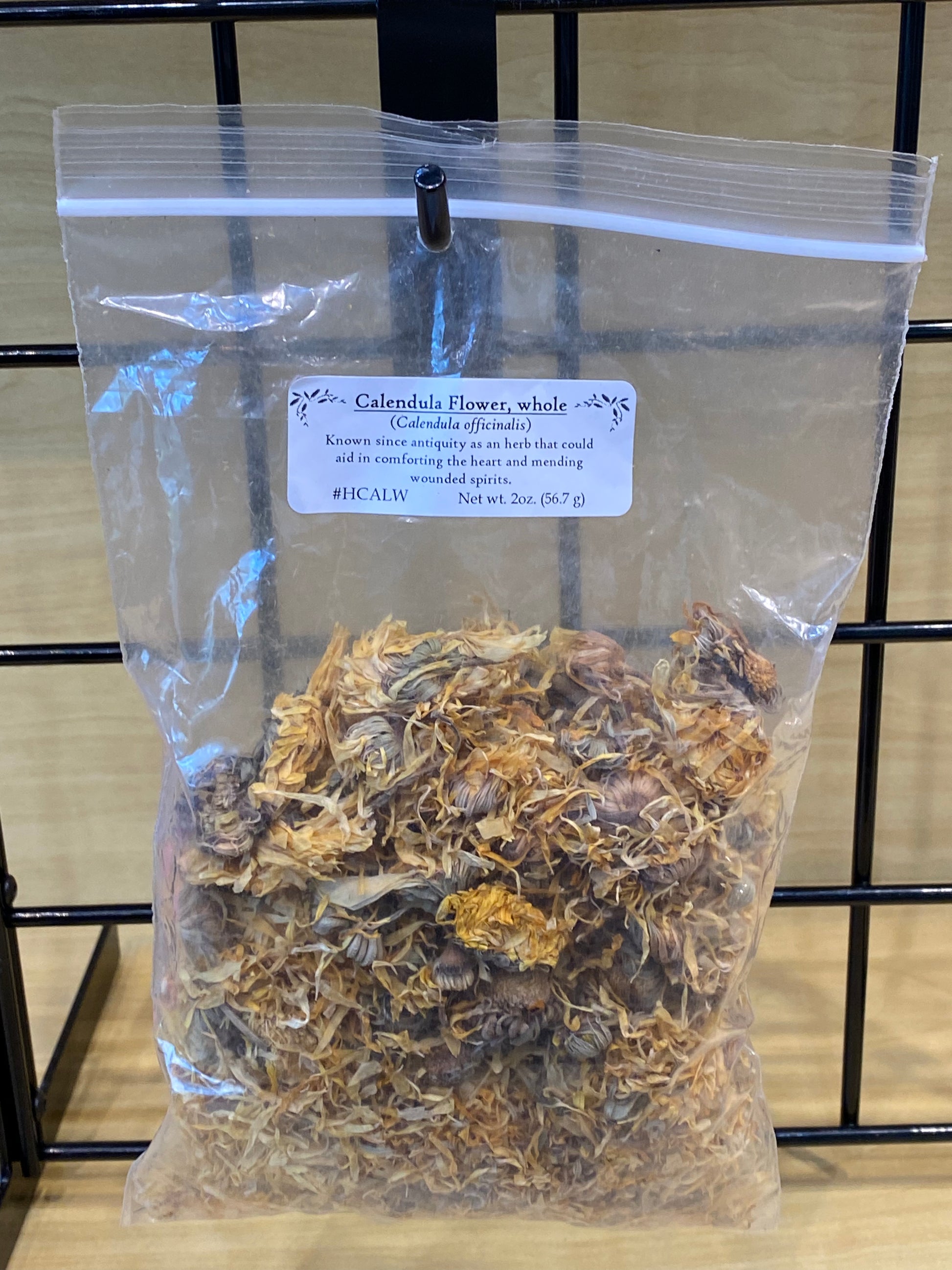 Calendula flower whole: Known since antiquity as an herb that could aid in comforting the heart and mending wounded spirits. 2oz