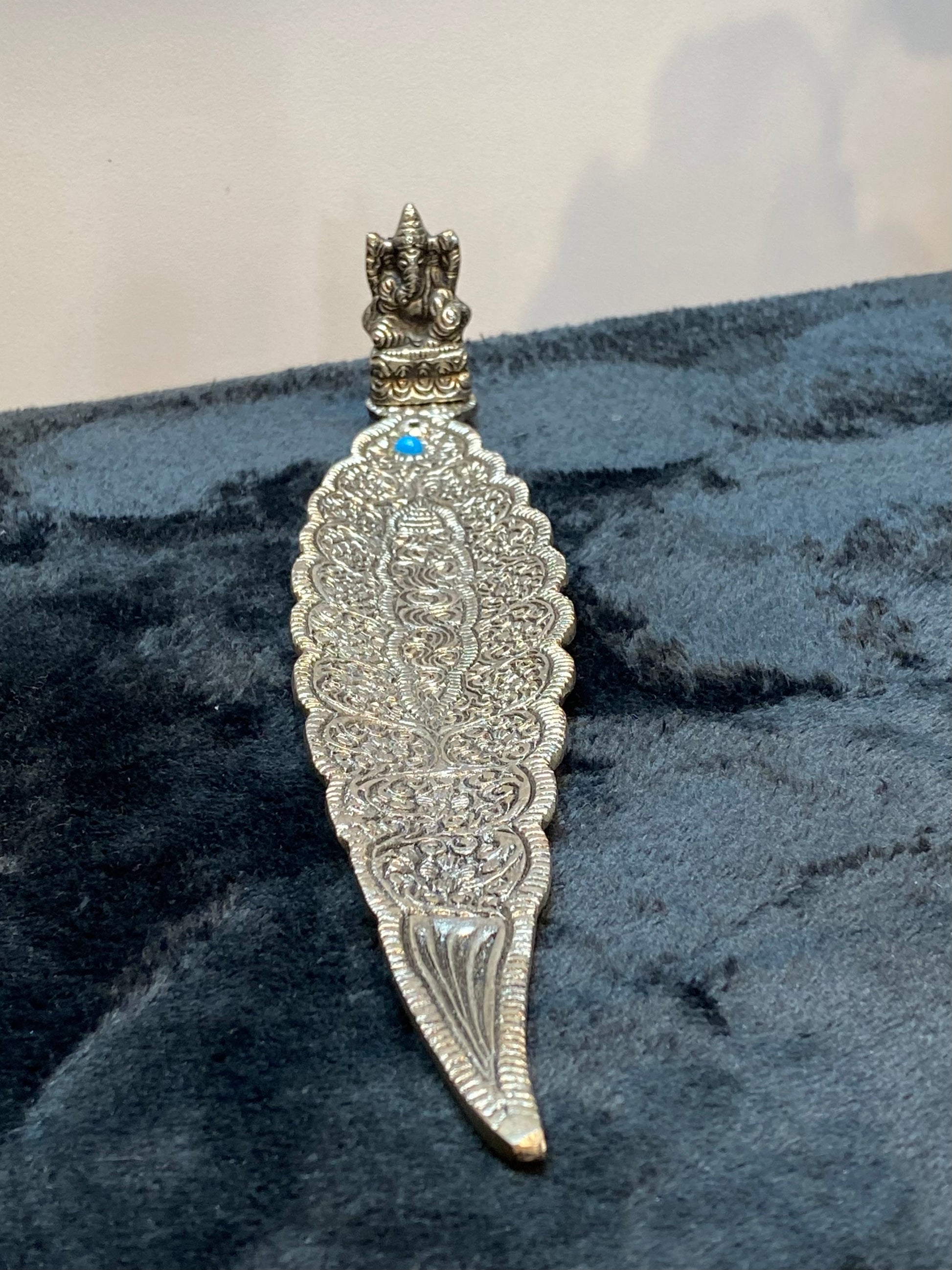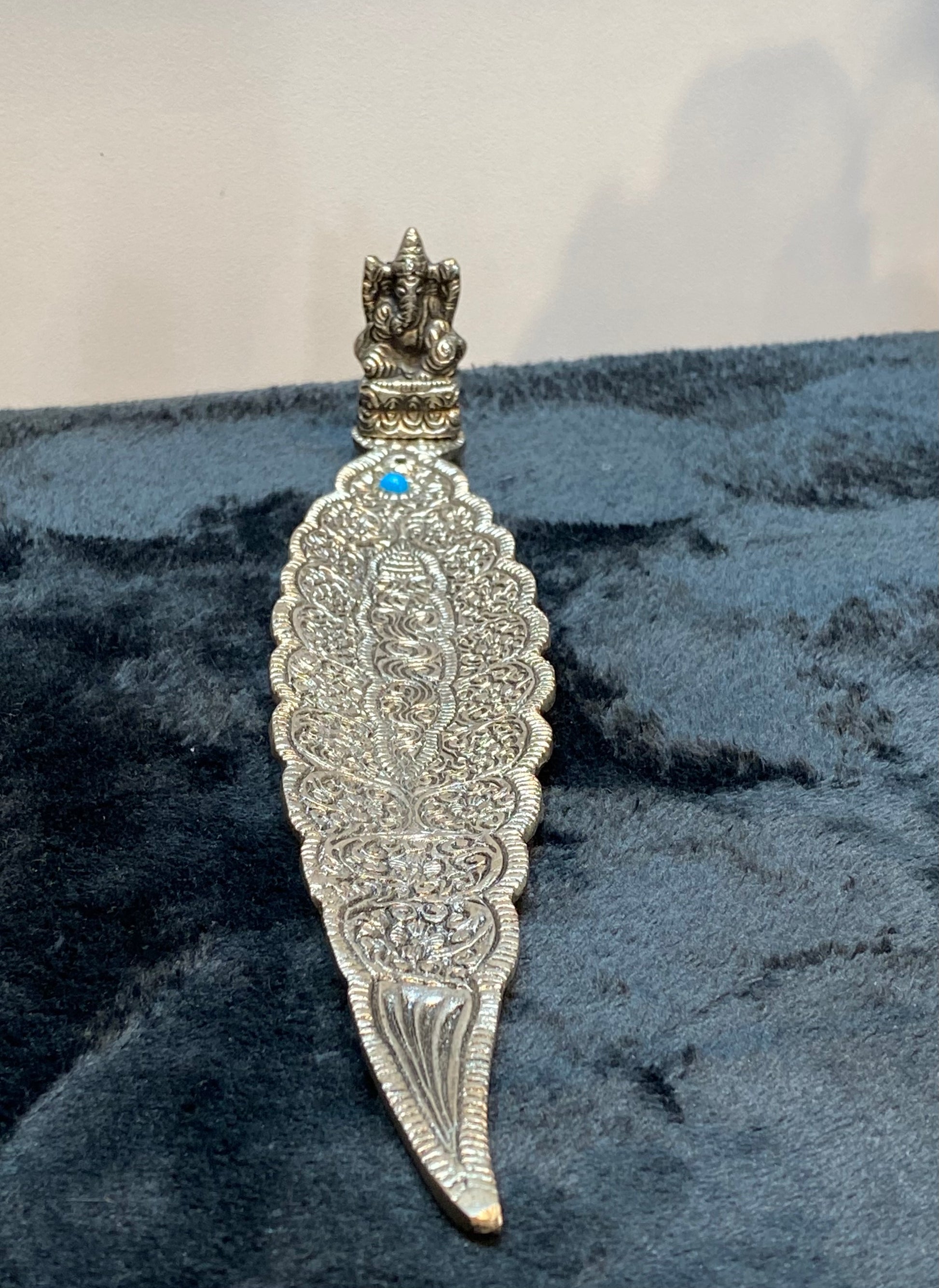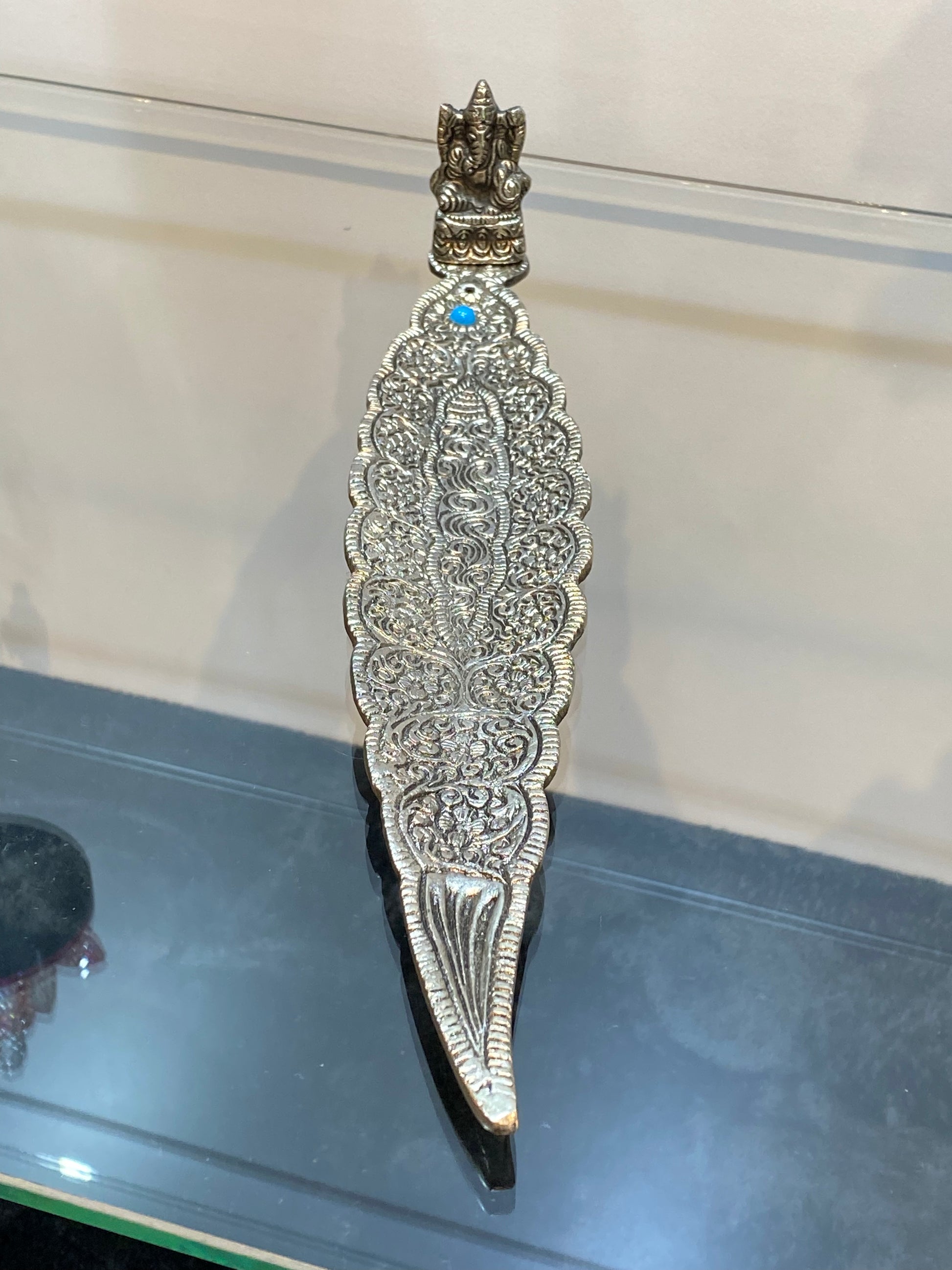 Ganesh Silver Aluminum Leaf Incense Stick Holder with Turquoise Stone