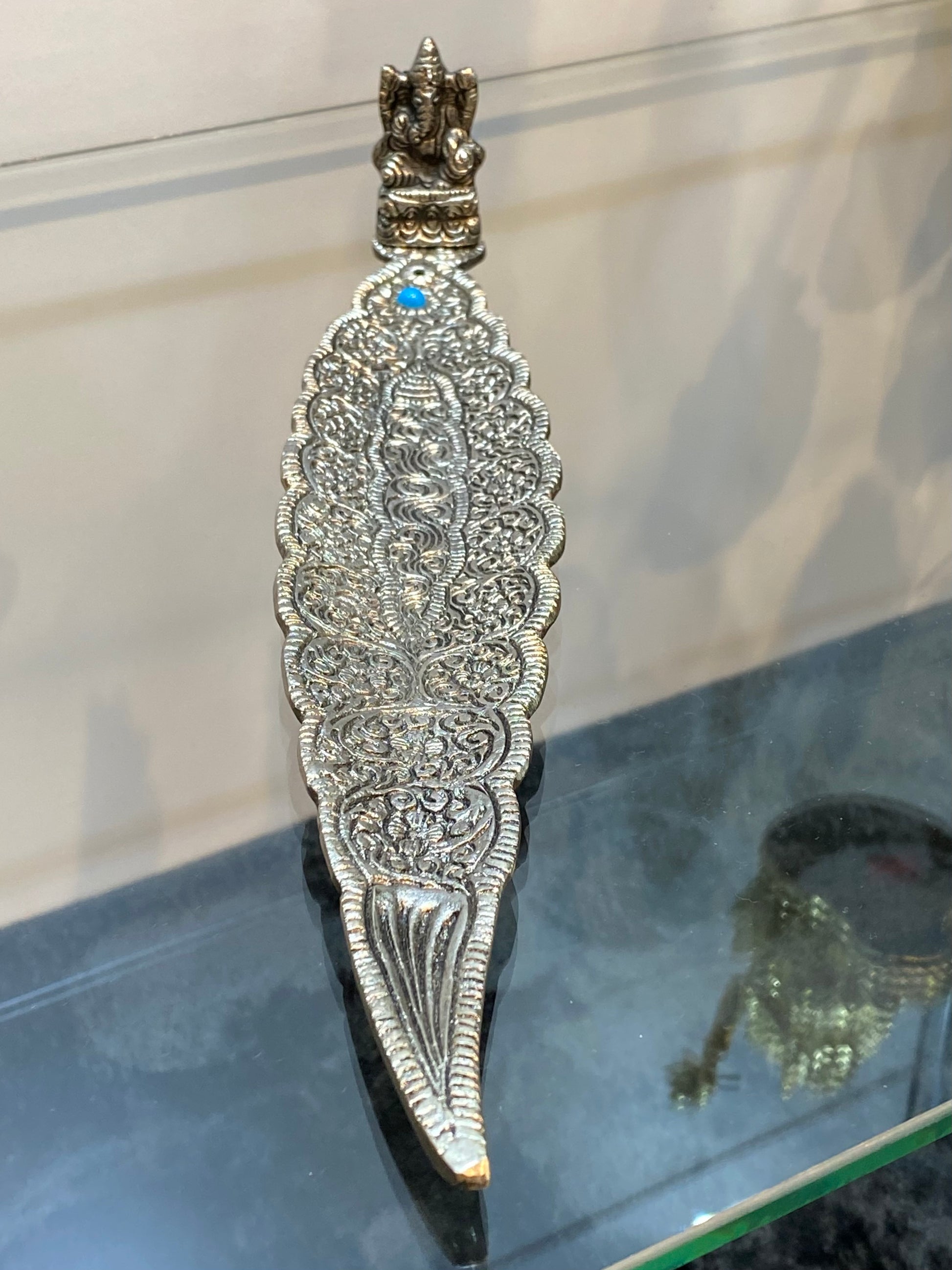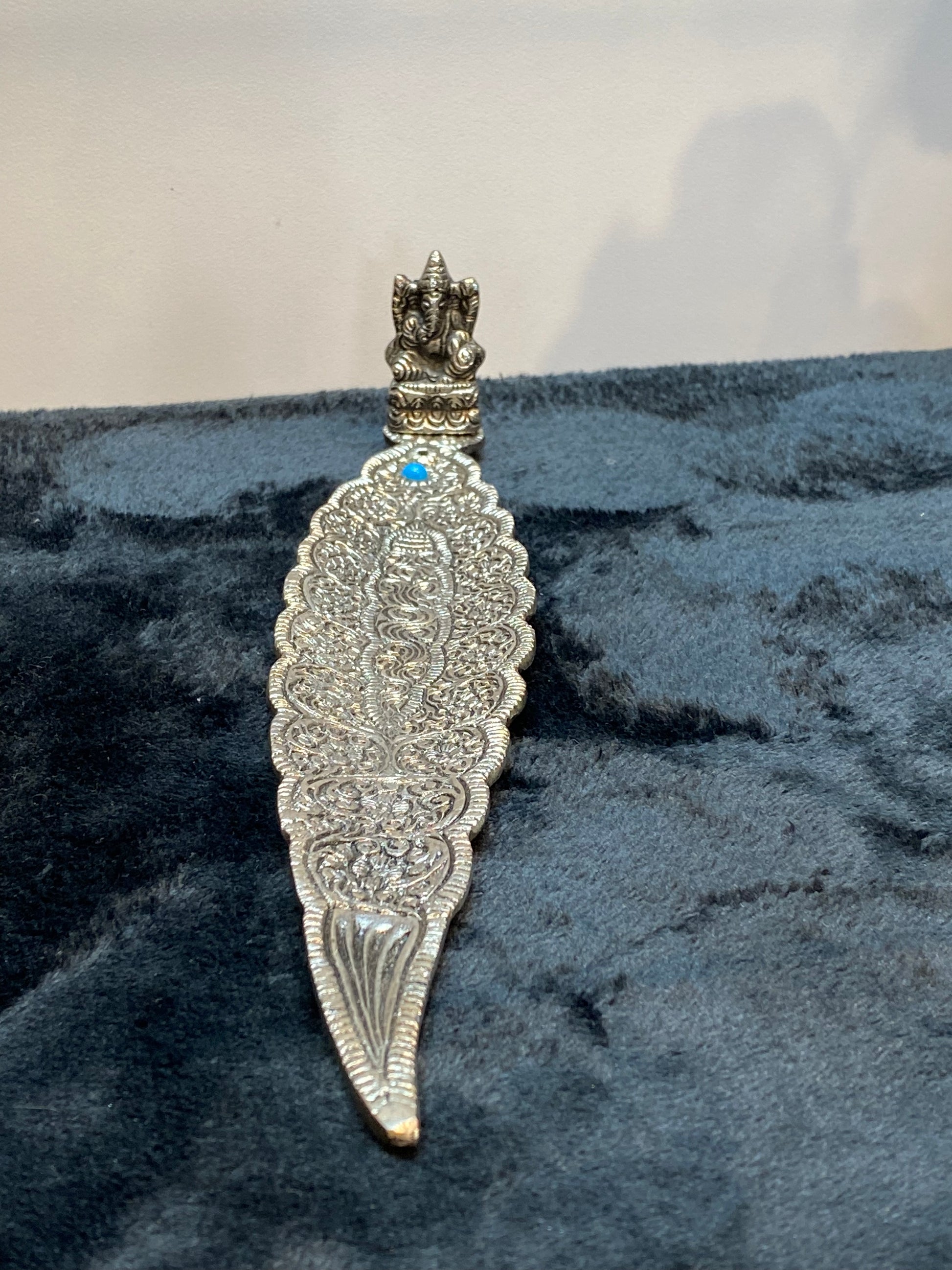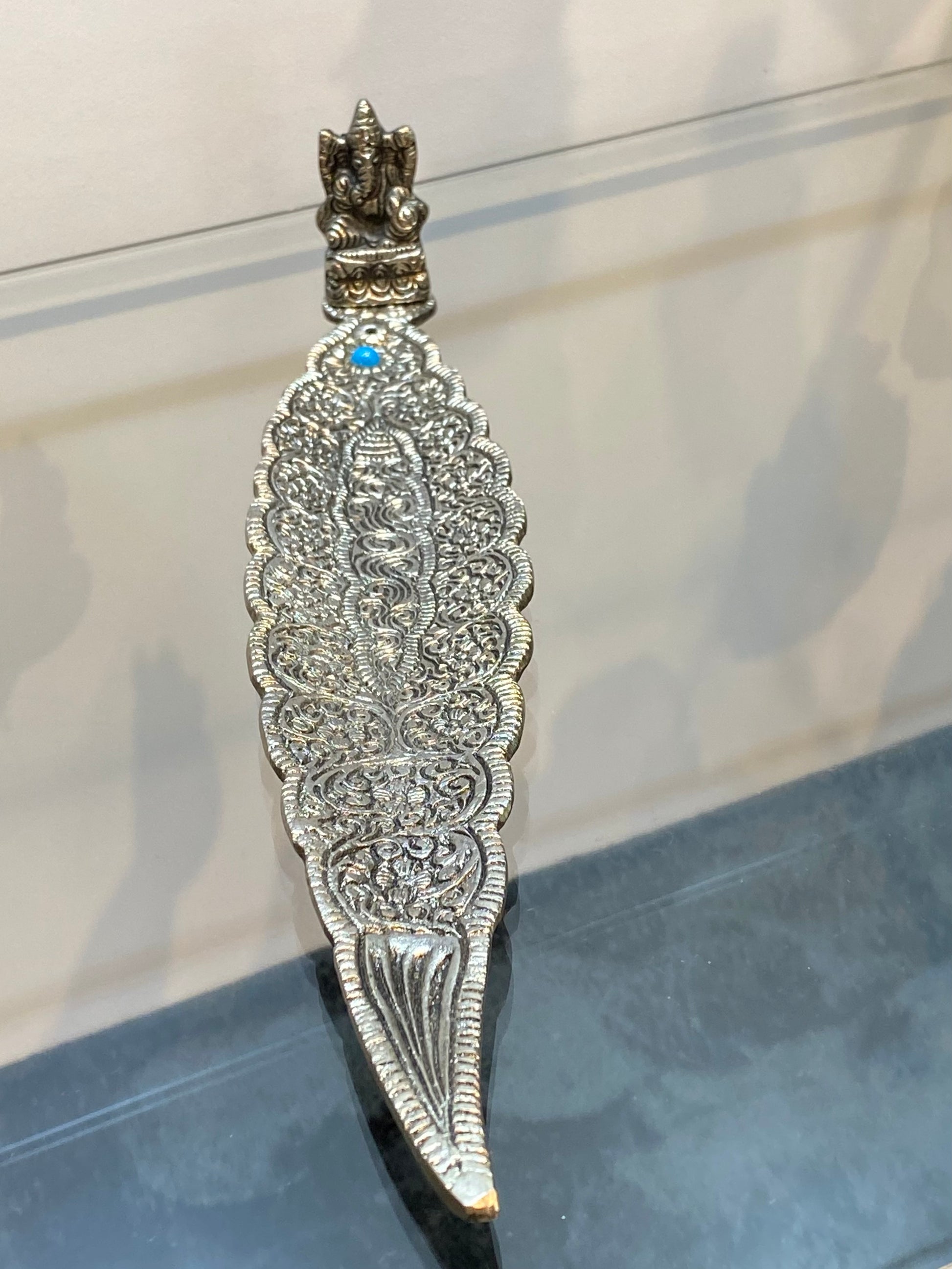 Ganesh Silver Aluminum Leaf Incense Stick Holder with Turquoise Stone