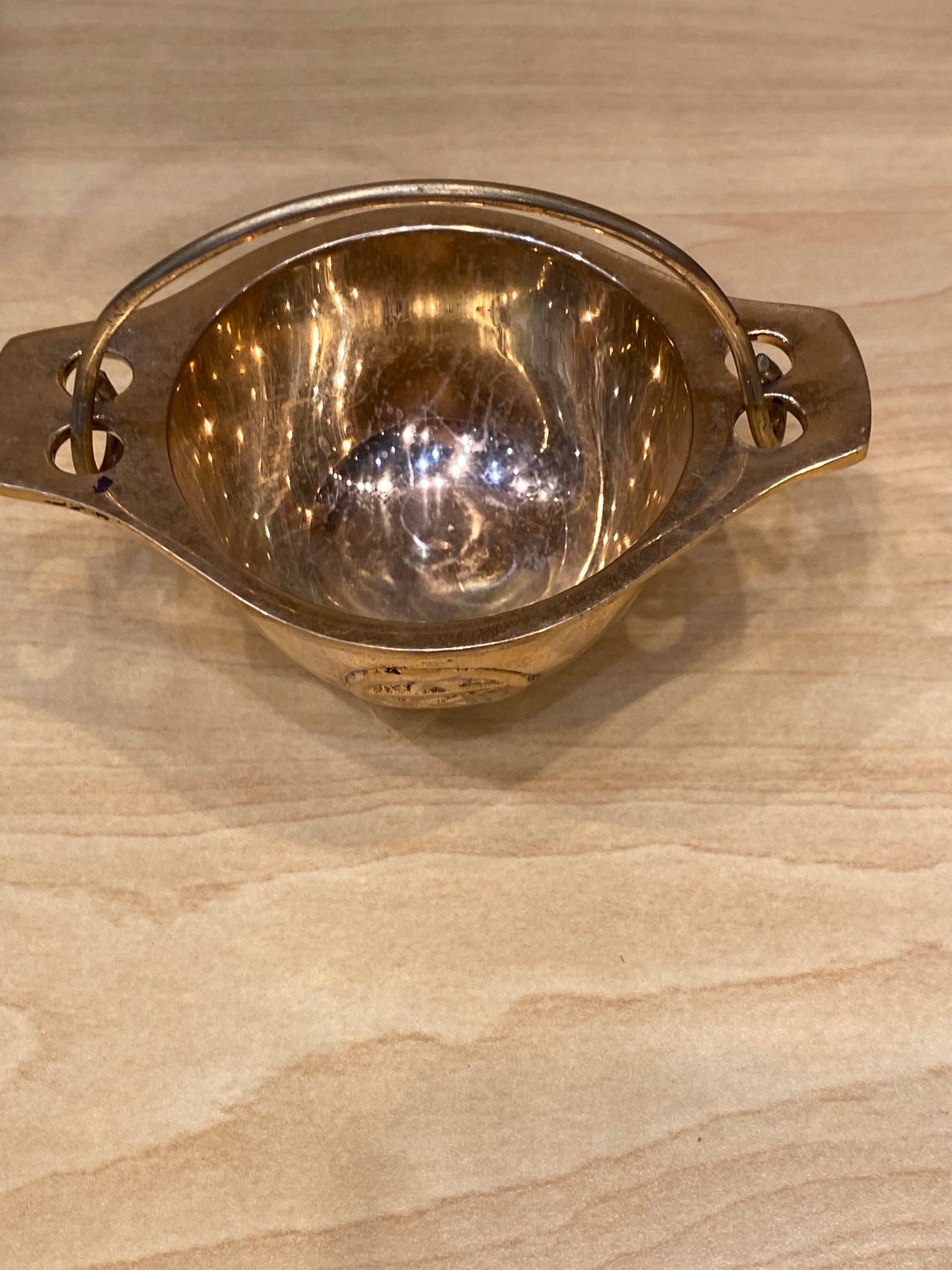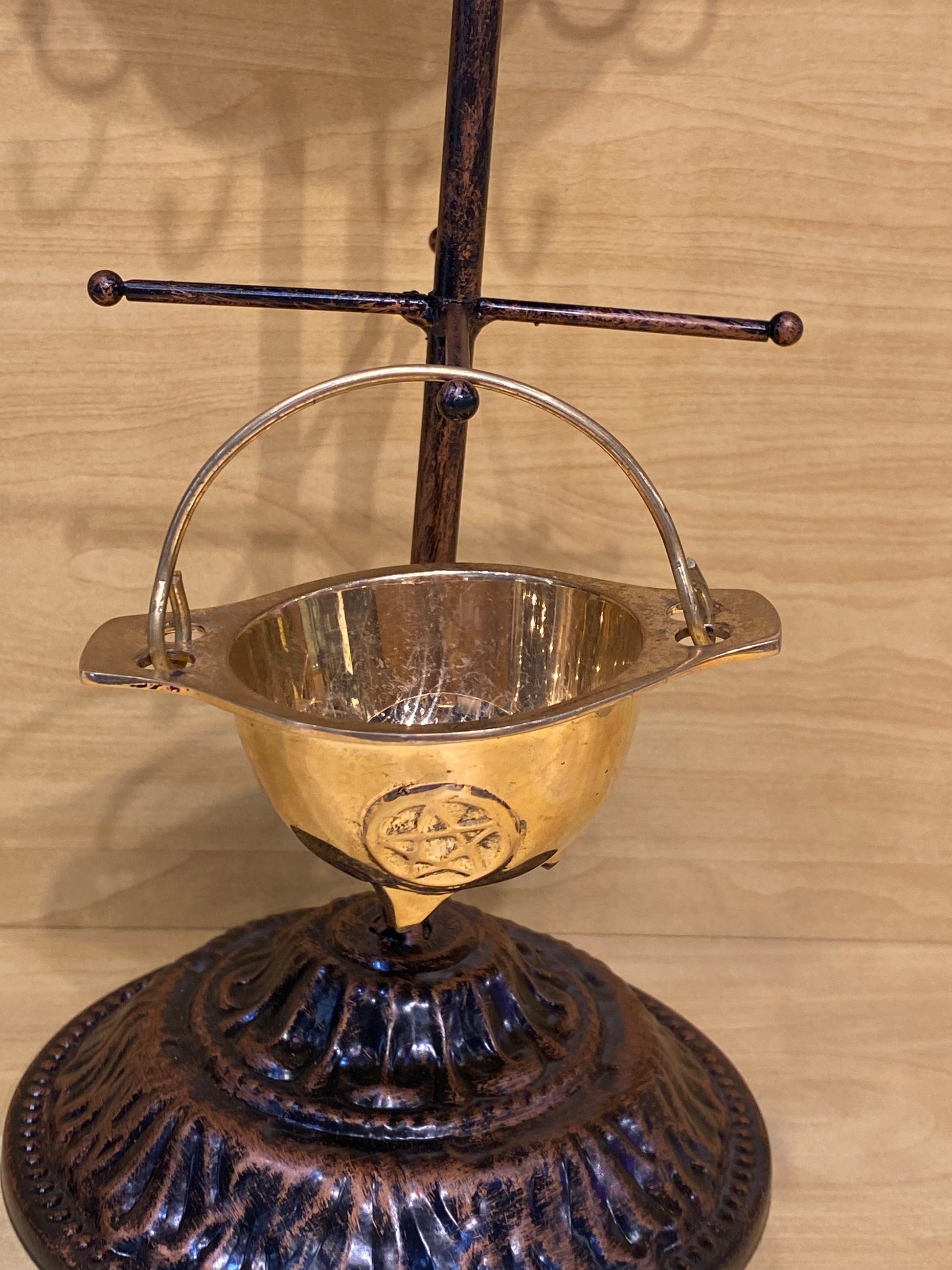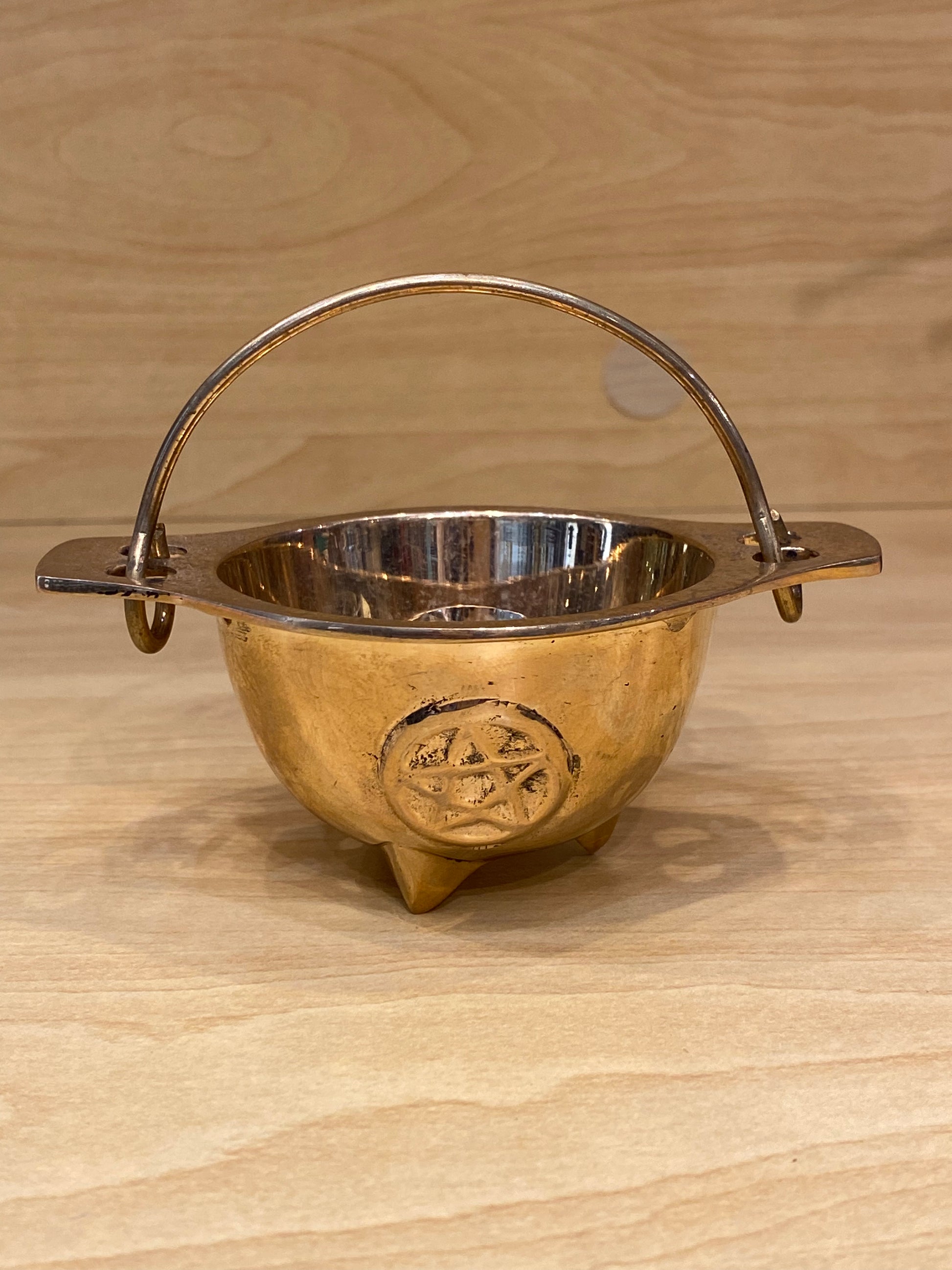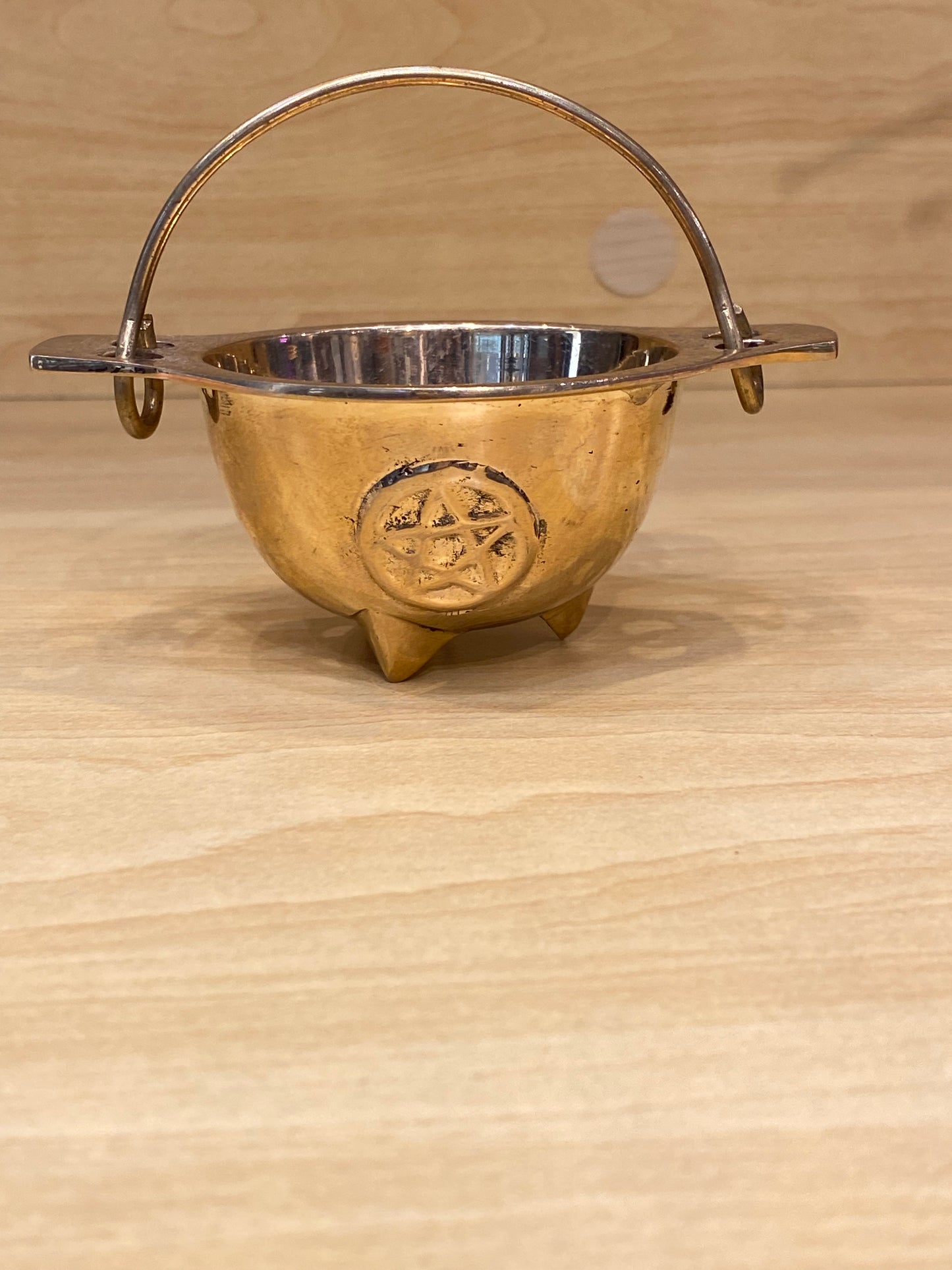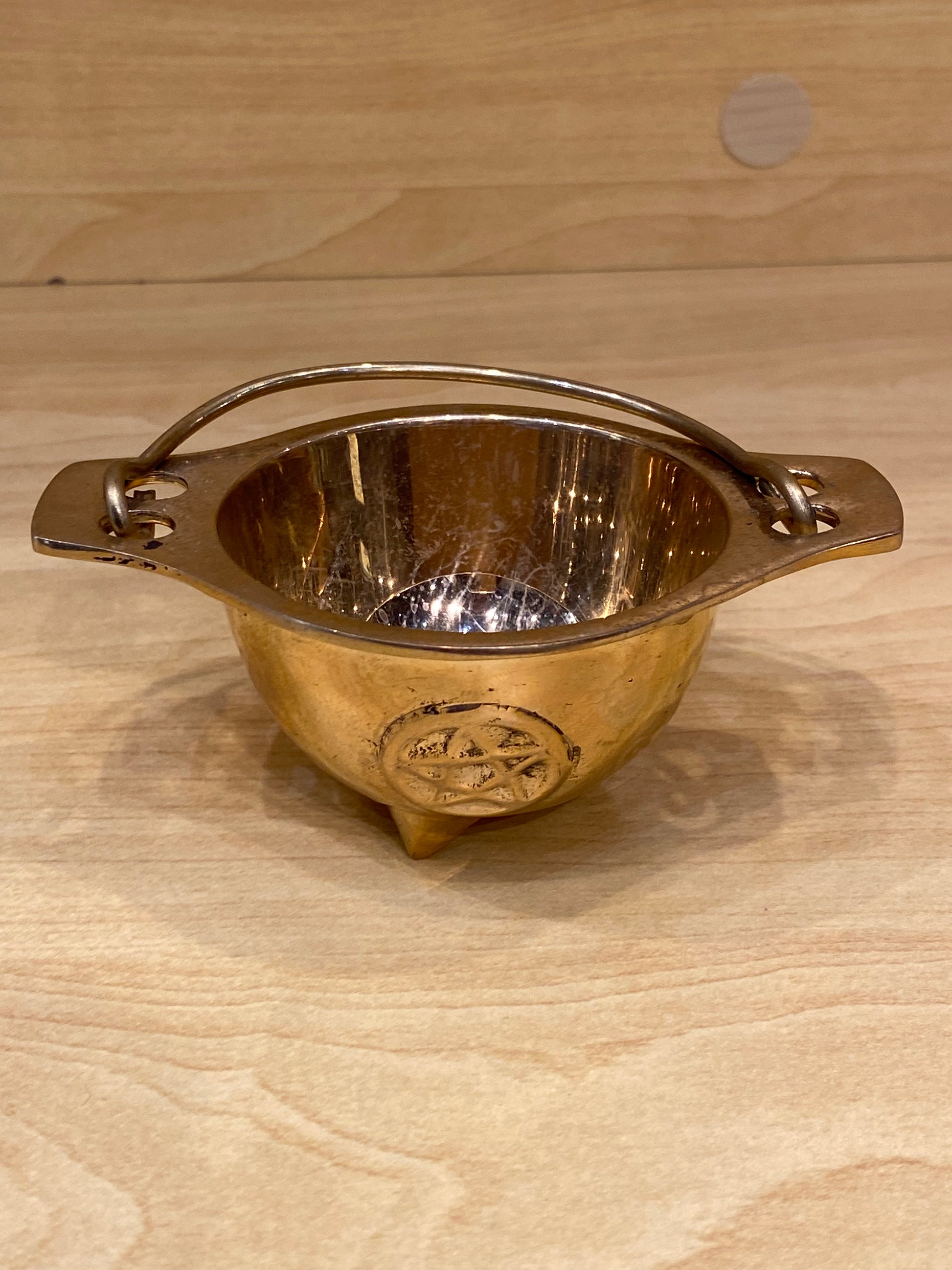 Brass Gold Cauldron With Engraved Pentacle and Handle