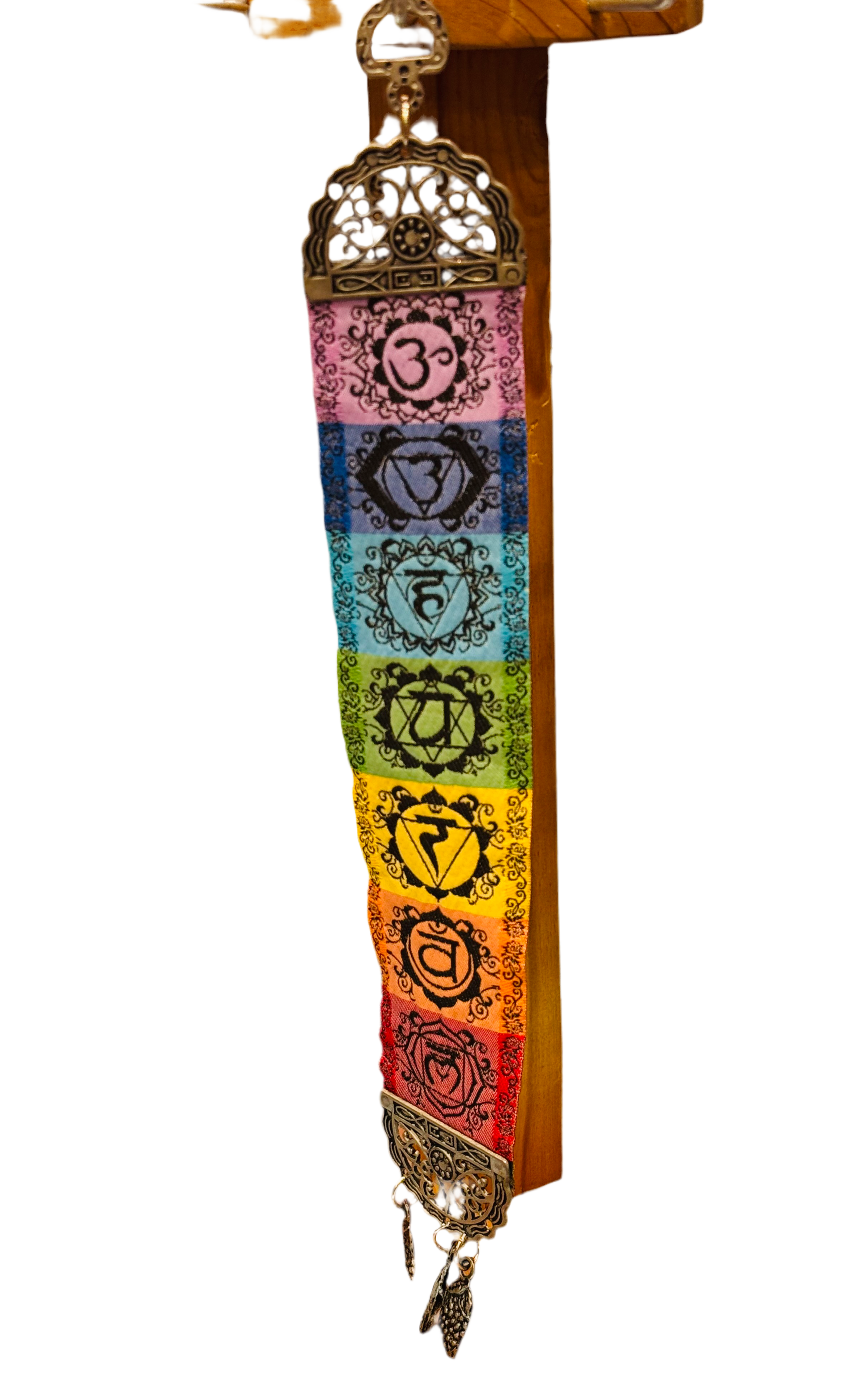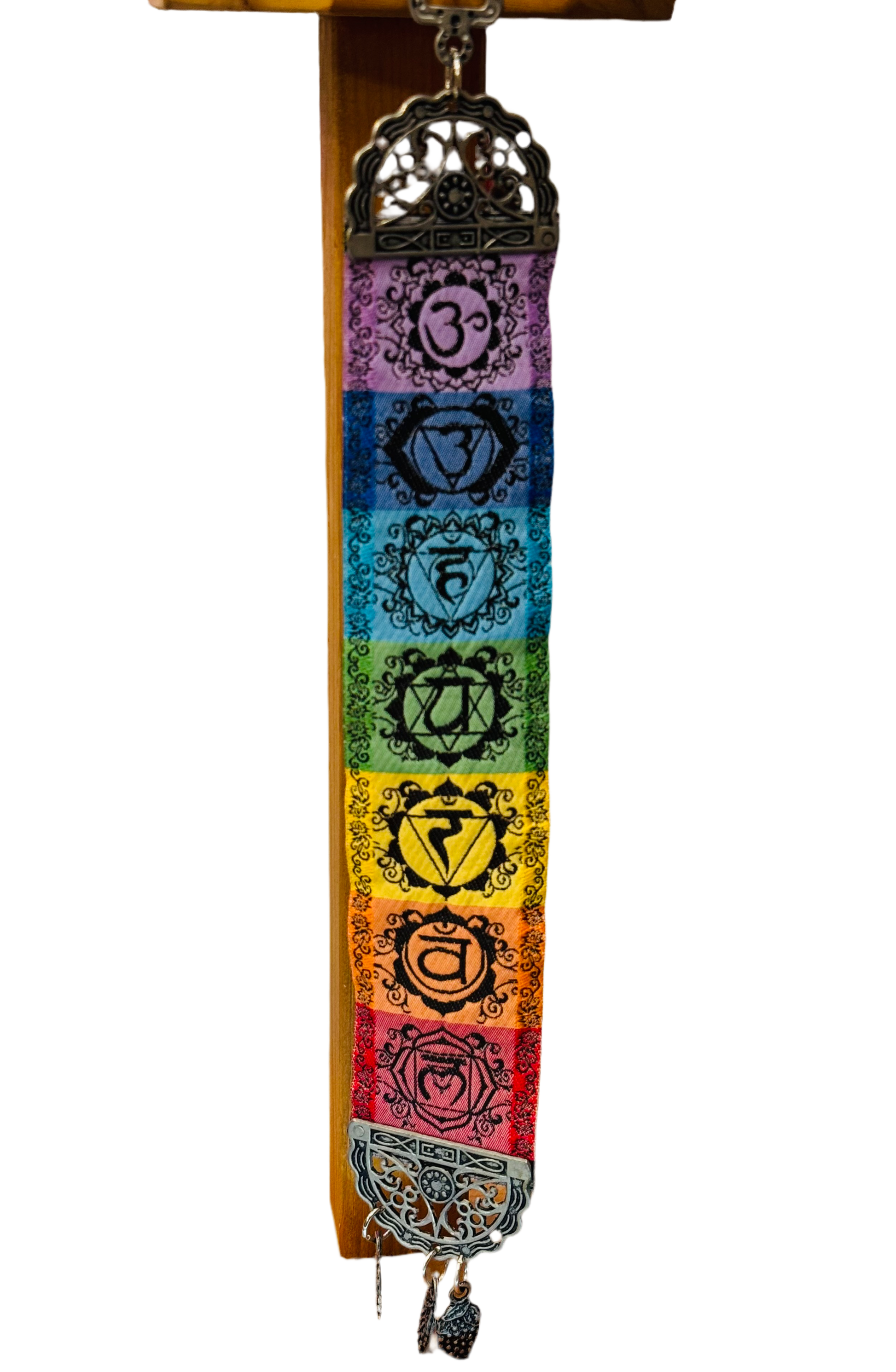 Seven Chakra hanging Wall Art with dangling antique charms