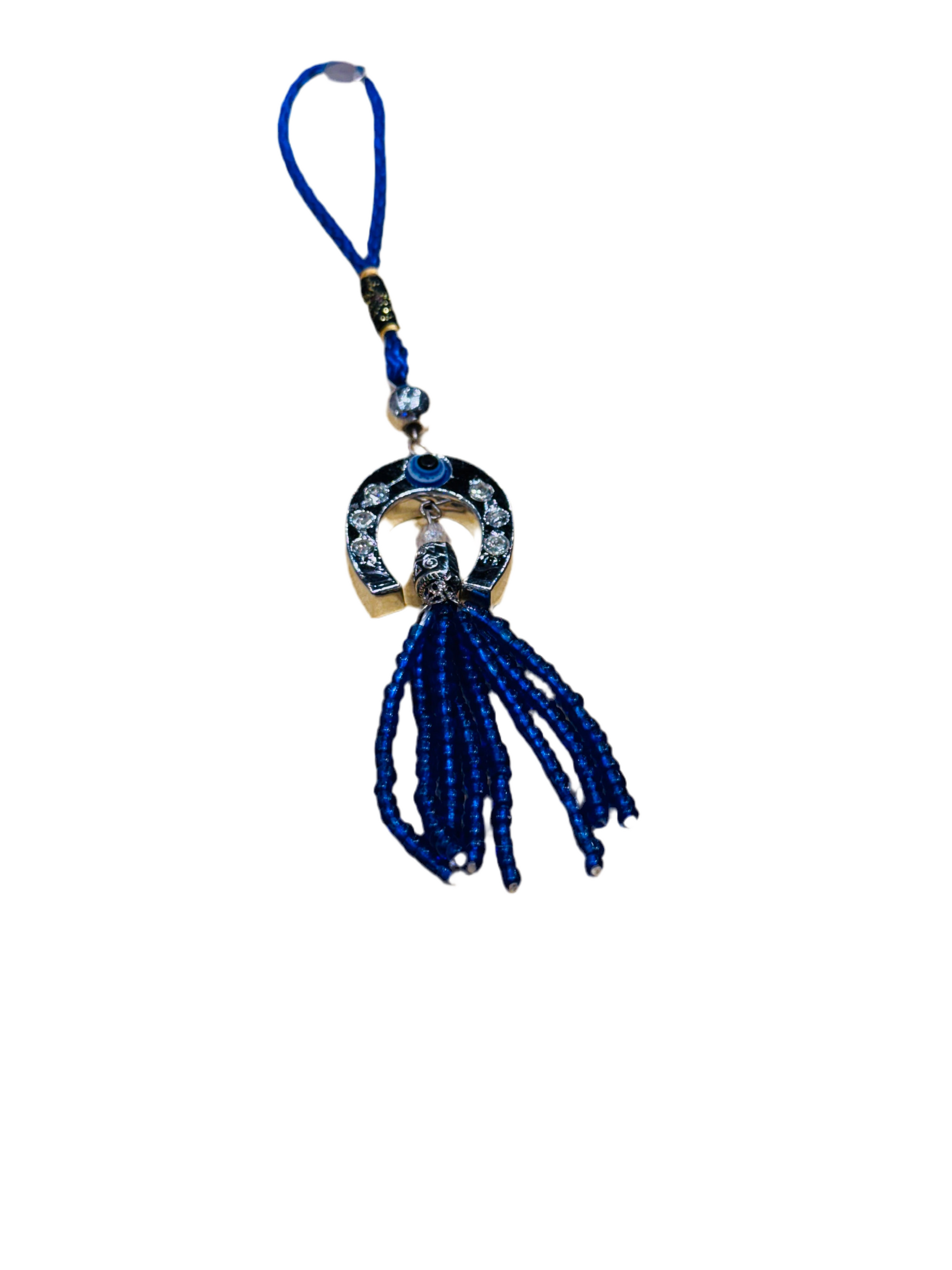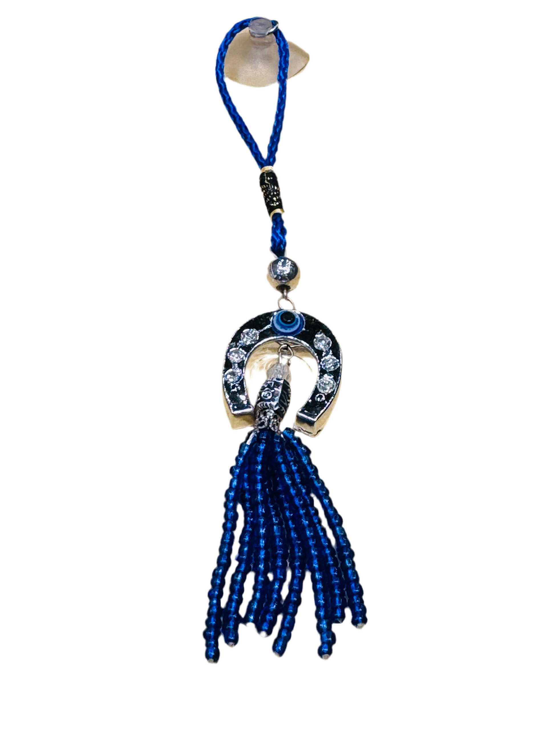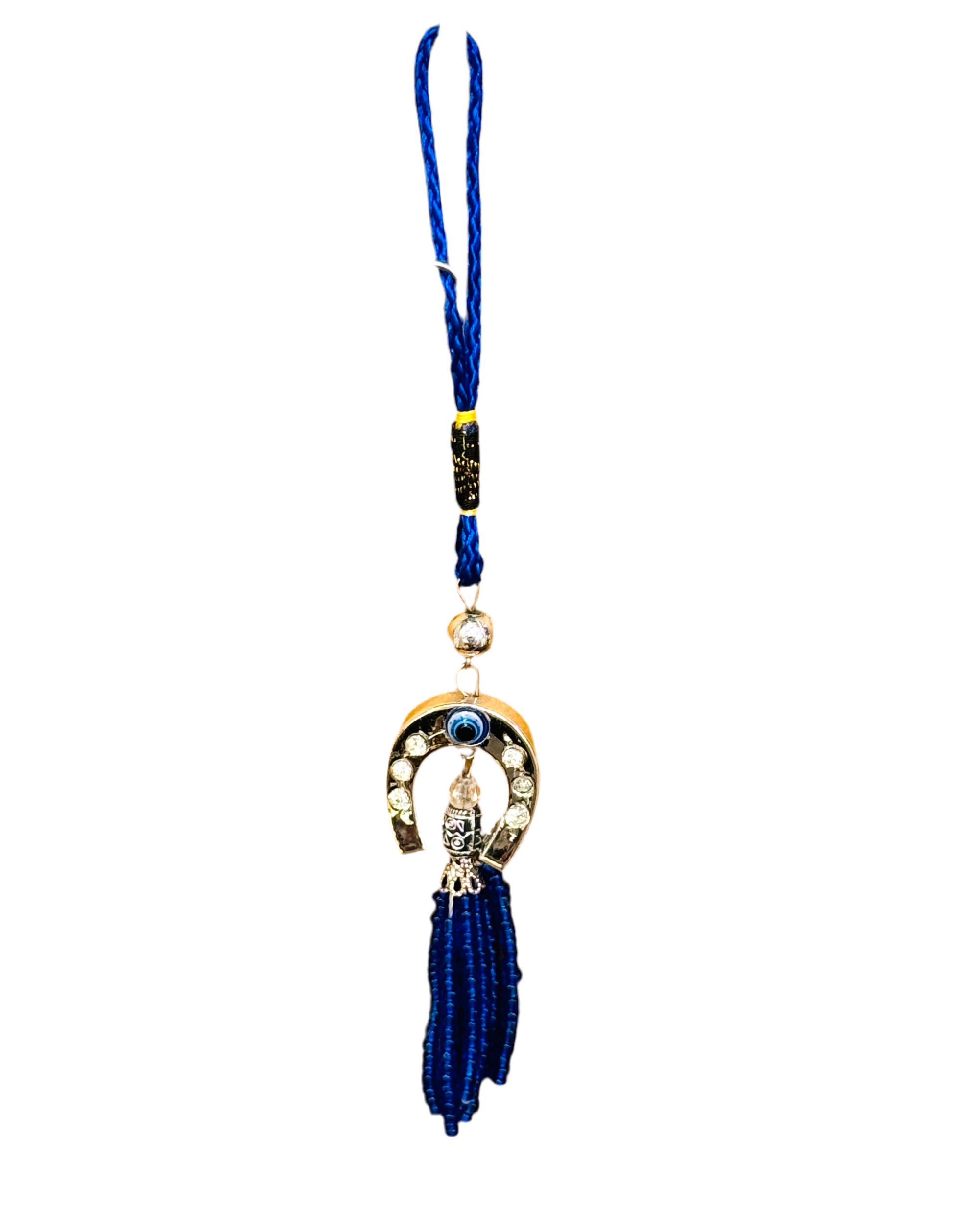 Horseshoe Evil Eye Hanging Car Decor Ornament with Beaded Tassels