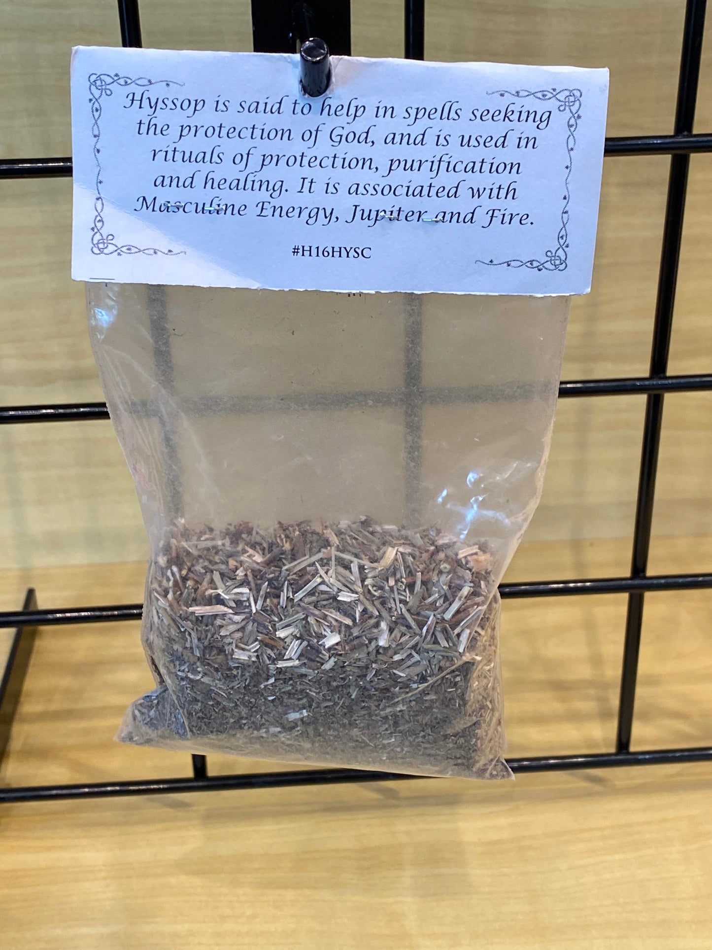 Hyssop is said to help in spells seeking the protection of God, and is used in rituals of protection, purification and healing. It is associated with Masculine Energy, Jupiter and Fire