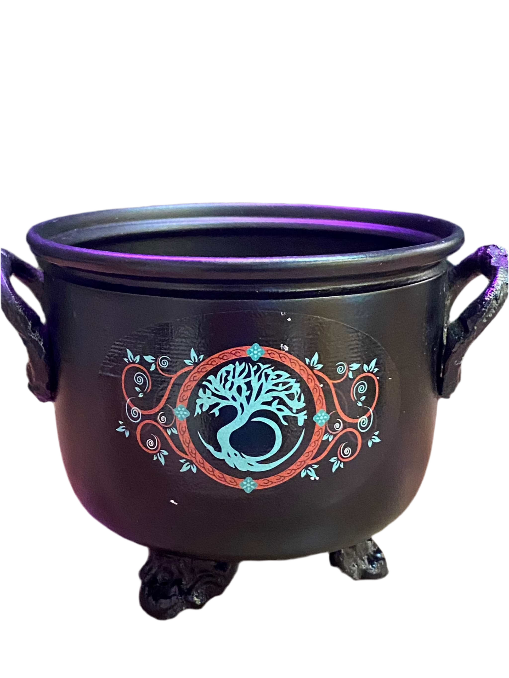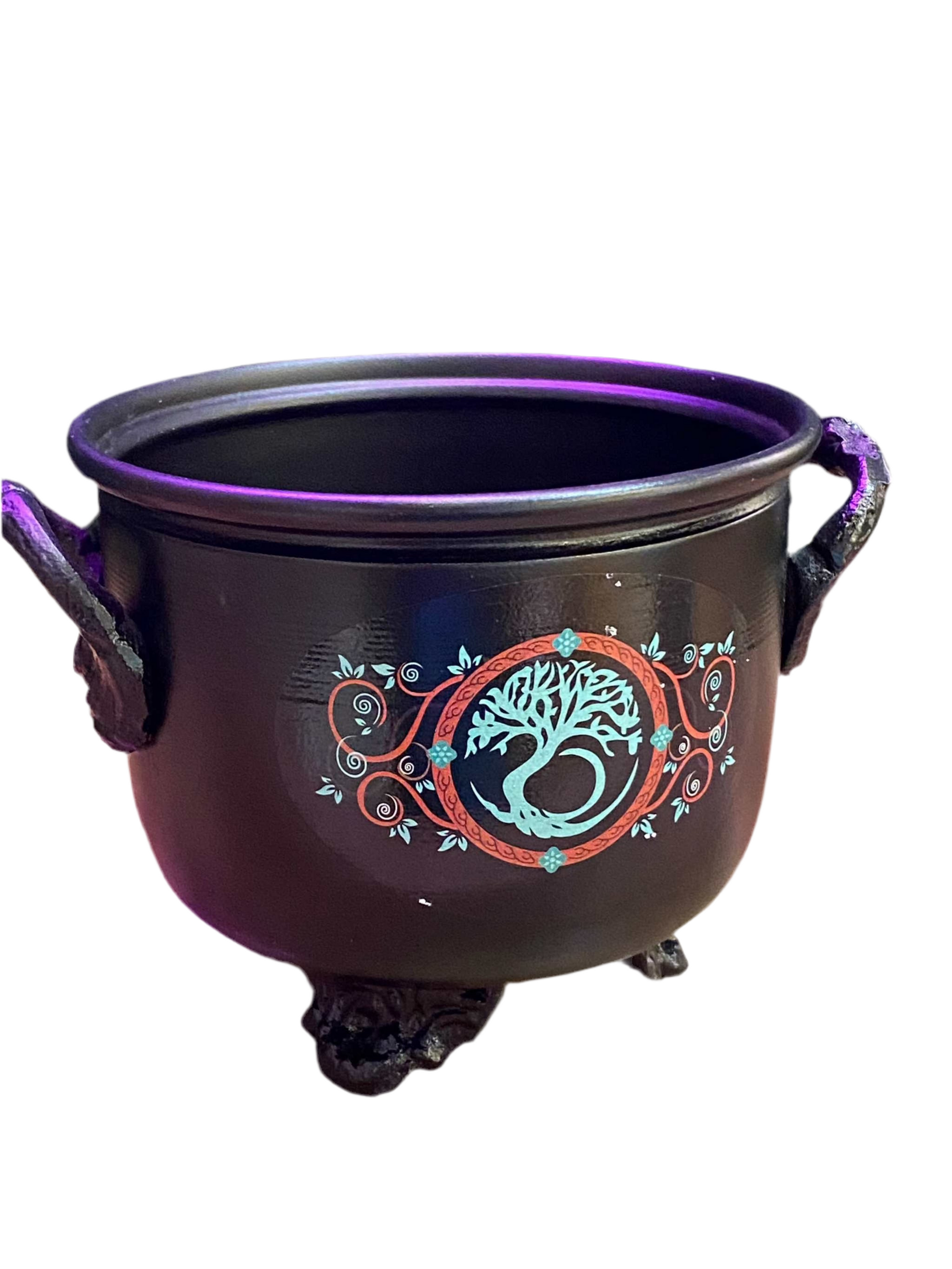 As a vessel for mixing and energizing herbs, the Iron Tree of Life Cauldron elevates your spellwork with its grounding energy. It also holds the transformative power of fire, allowing you to burn petitions and intentions, releasing them into the universe with purpose. The Iron Tree of Life Cauldron features an intricate Tree of Life design, symbolizing the interconnectedness of all life and bringing the wisdom and strength of nature into your rituals. Whether for incense, herbs, or petitions, the Iron Tree of Life Cauldron is an indispensable tool for any practitioner, enhancing the depth and intention of your magical work.