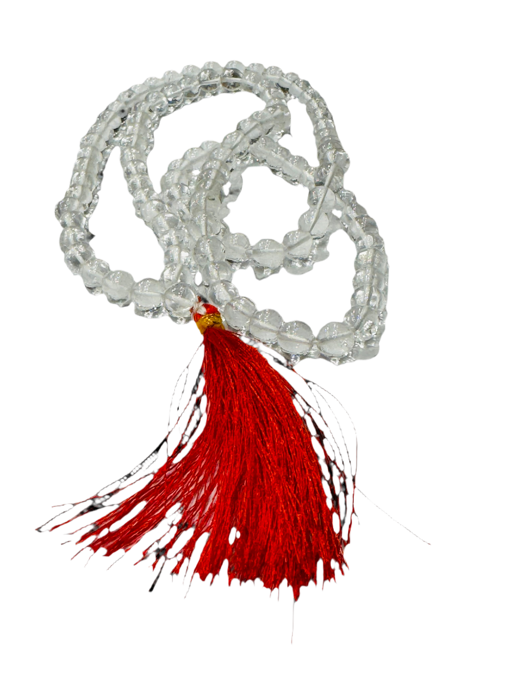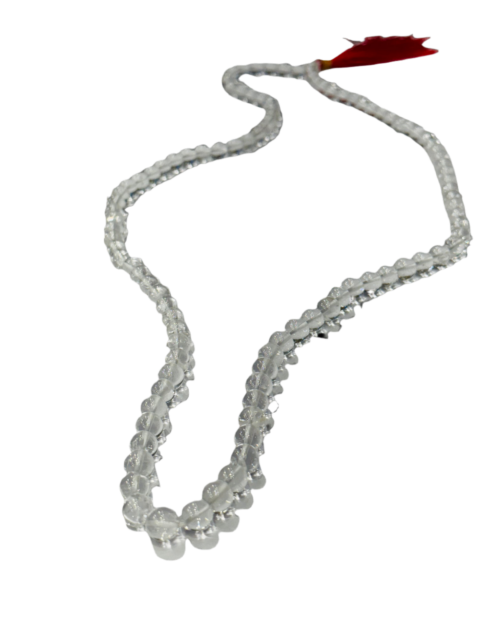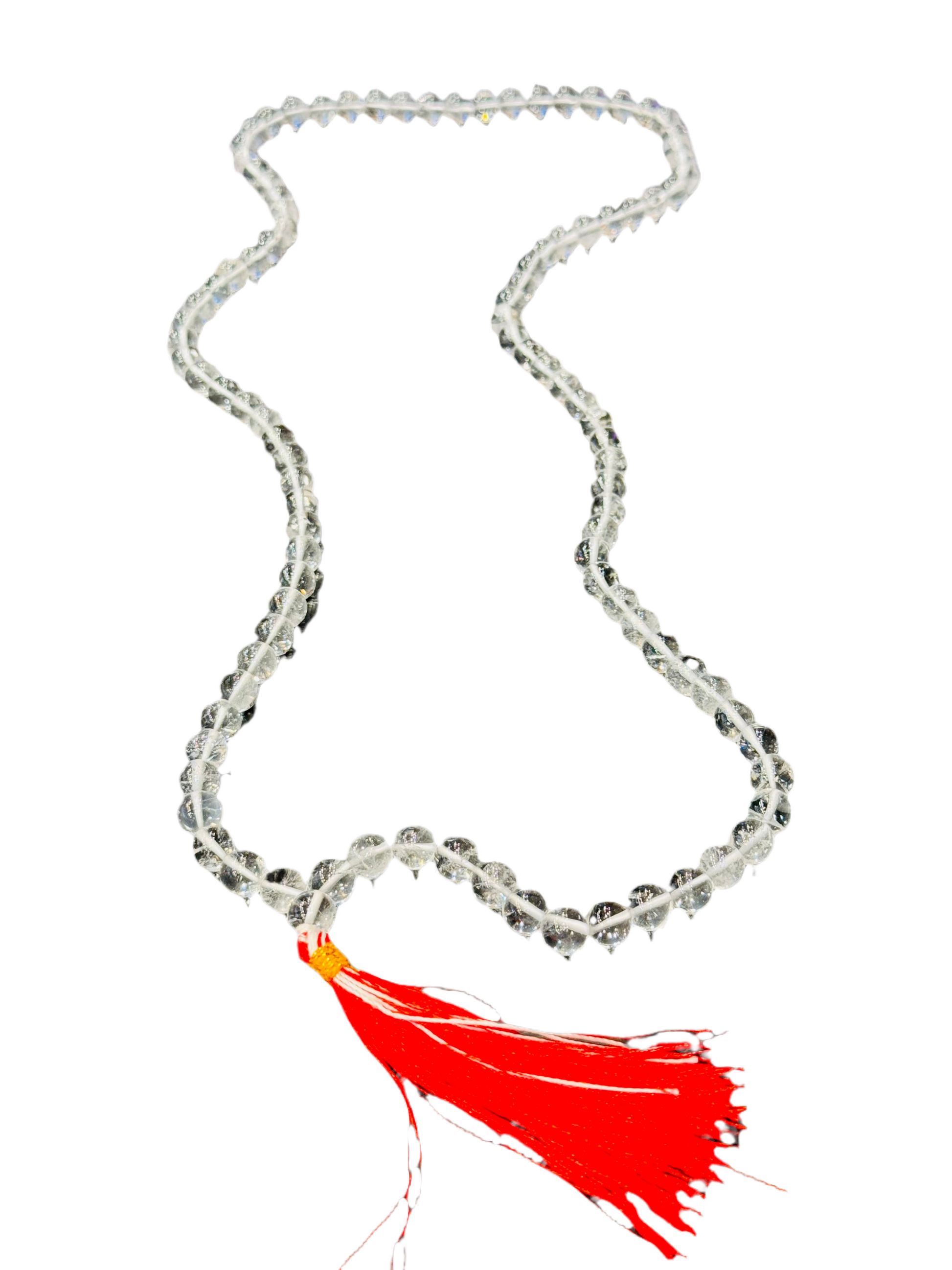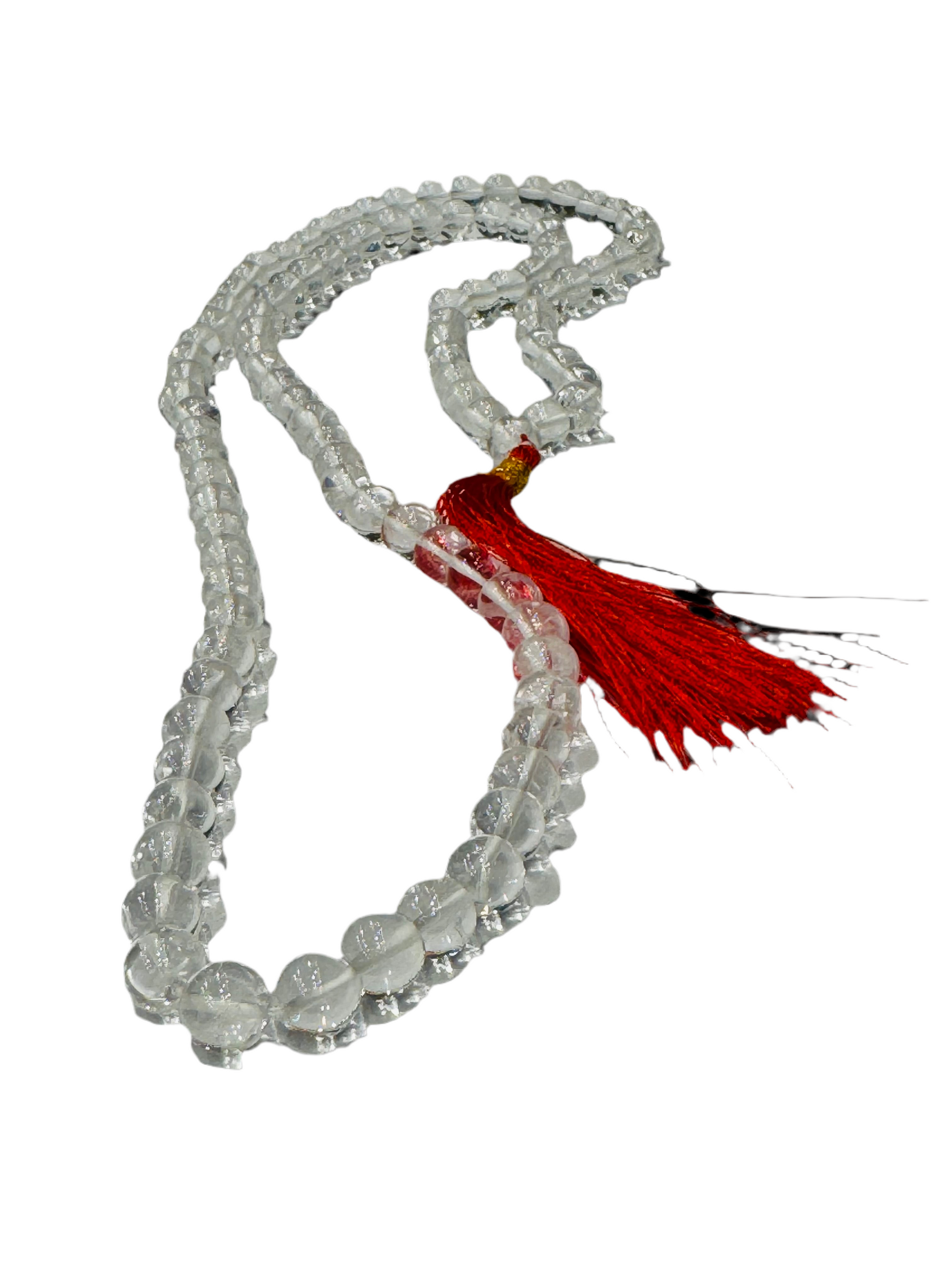 Japamala Genuine Prayer Mala Beads Clear Quartz with Red Tassel